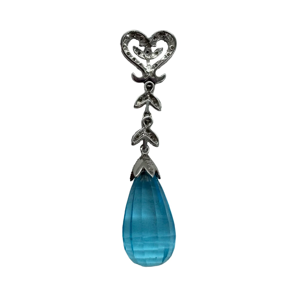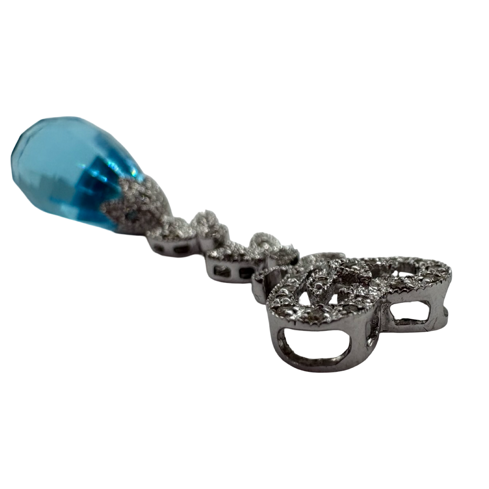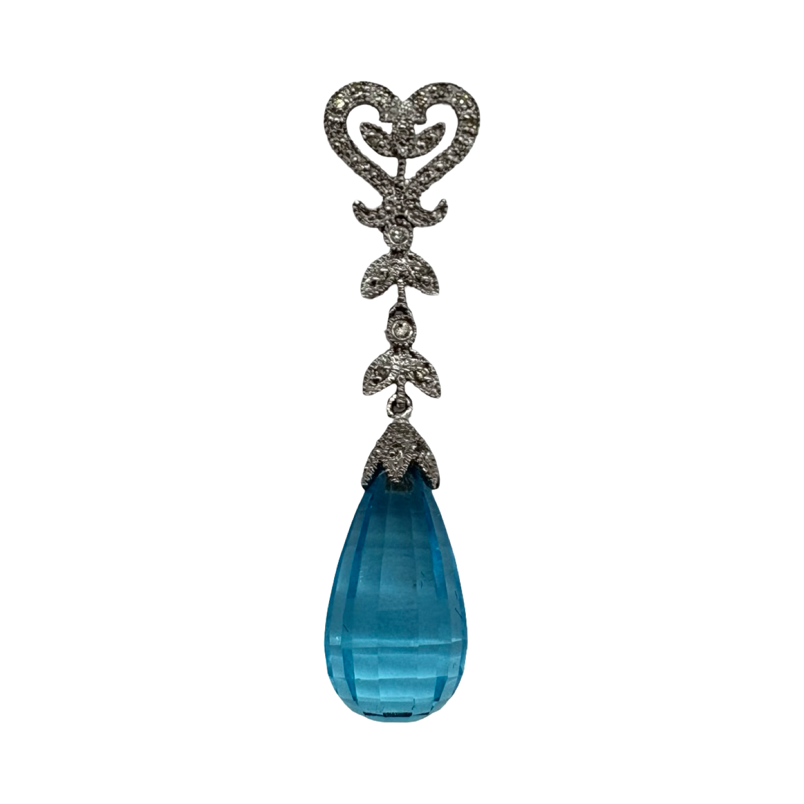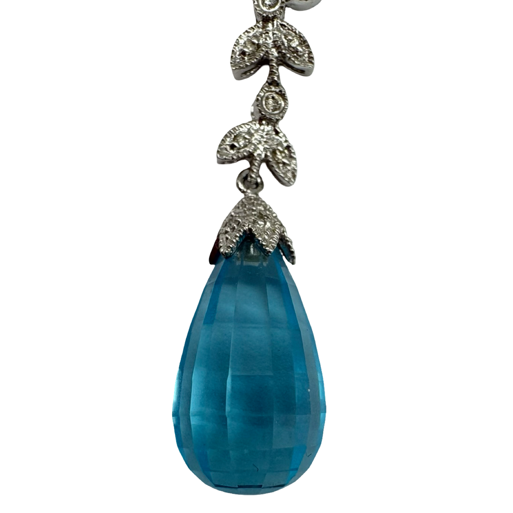 14K White Gold 15PTW Diamond and Blue Topaz Briollete Pendant