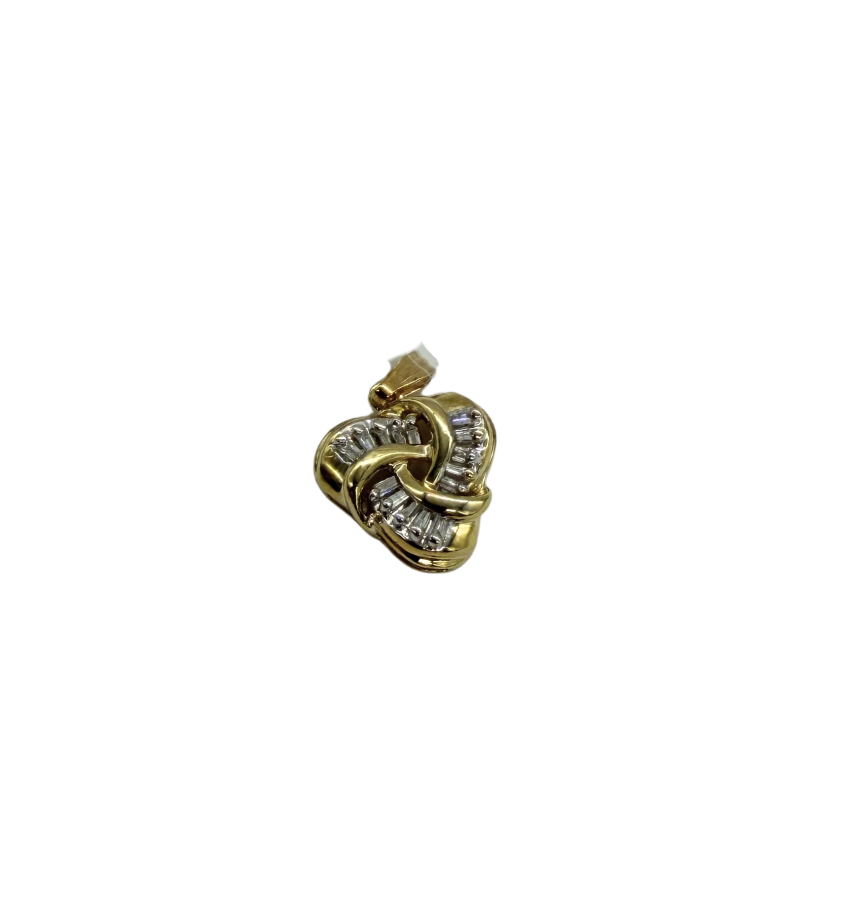 14k Yellow and White Gold 1/4 ctw Baguette Diamond Twisted Heart Pendant