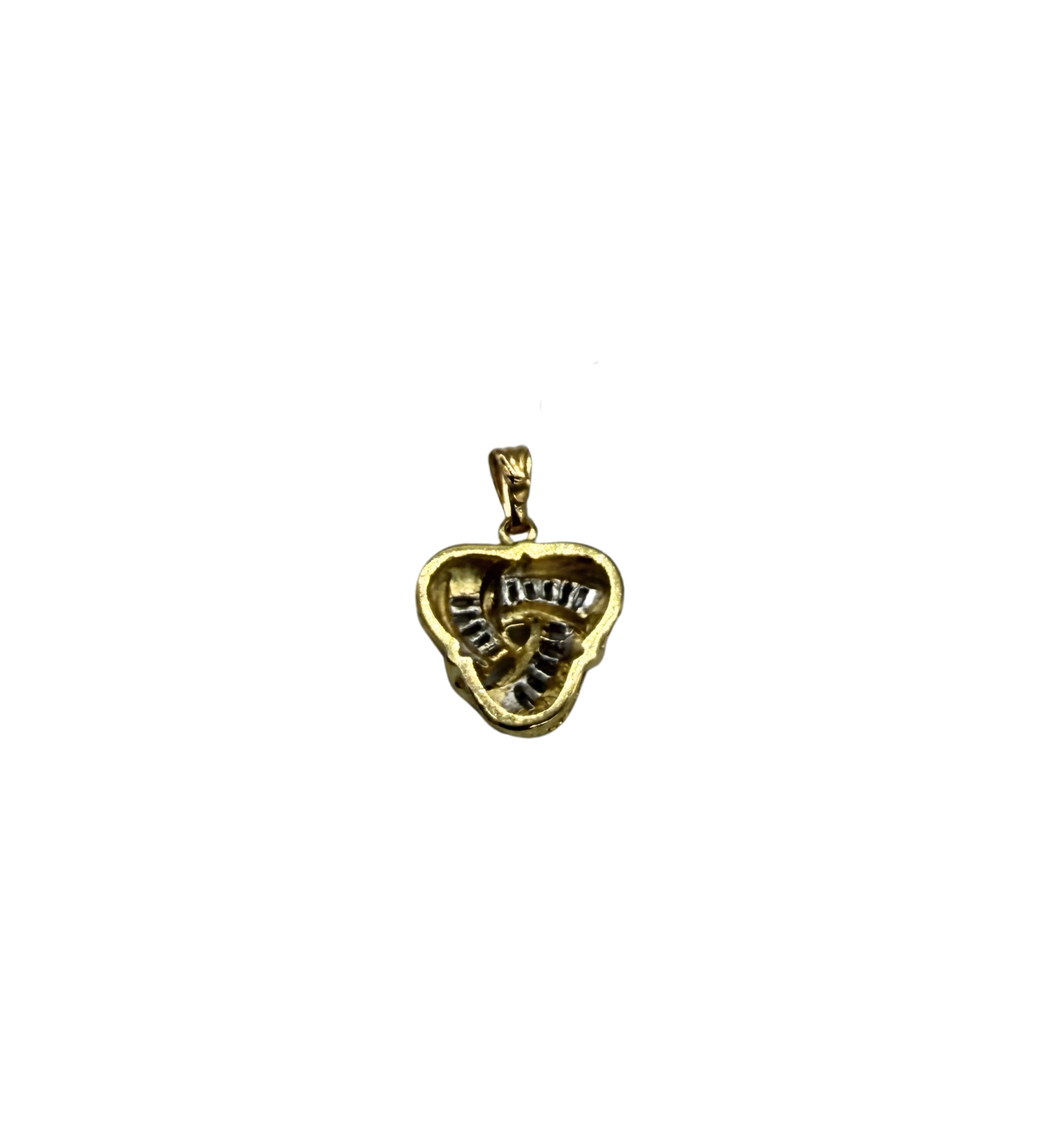 Delicate yet eye-catching, this pendant weighs approximately 1.5 grams and offers a refined look that works effortlessly for everyday wear or as a meaningful gift. The combination of yellow and white gold adds versatility, making it easy to pair with a variety of chains and jewelry styles.