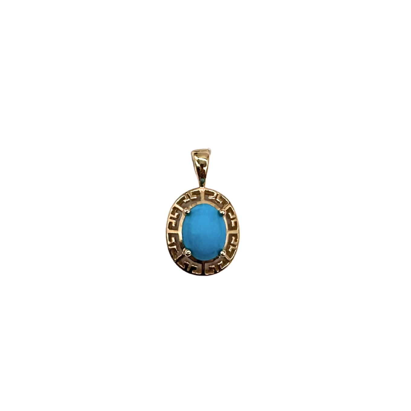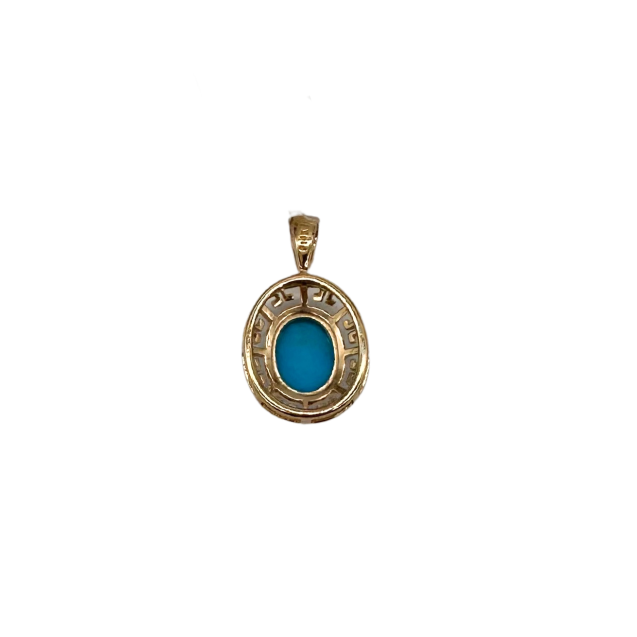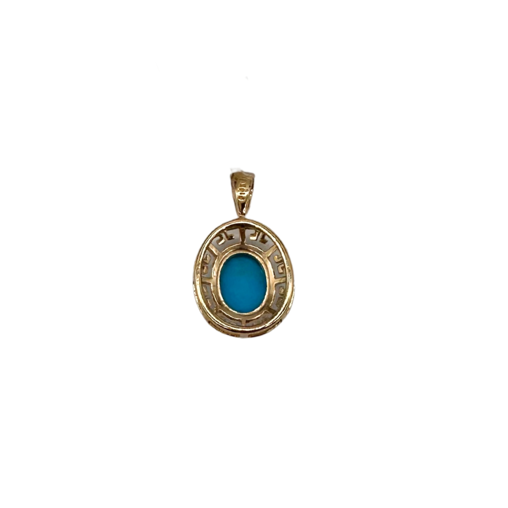 14K Yellow Gold Greek Key Turquoise Pendant