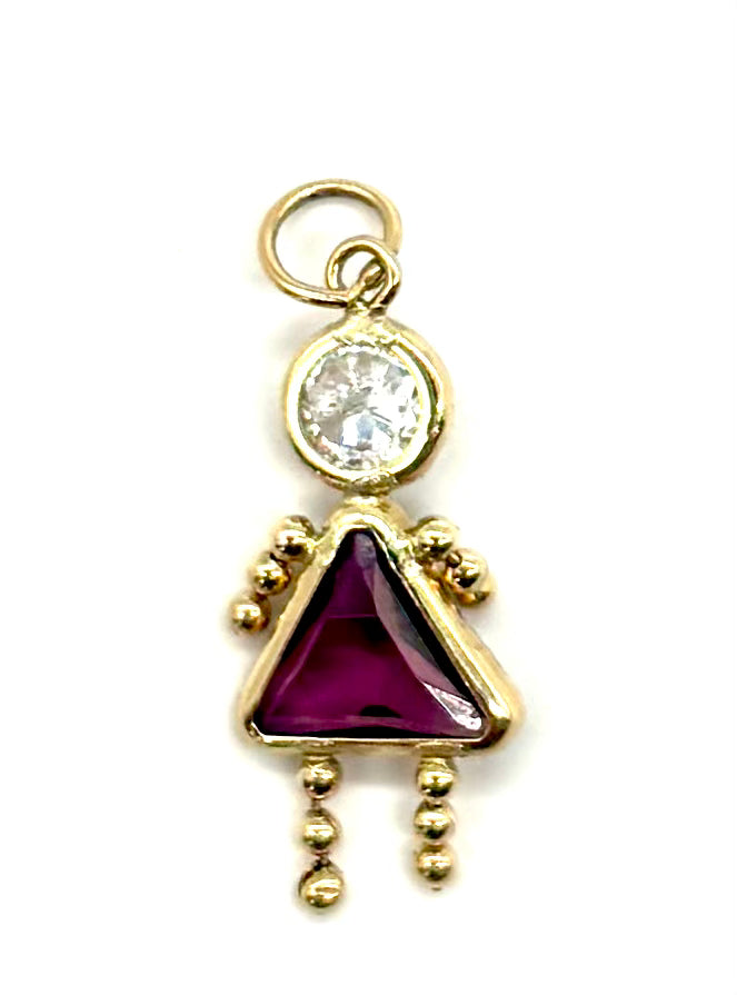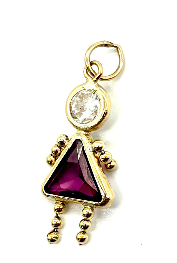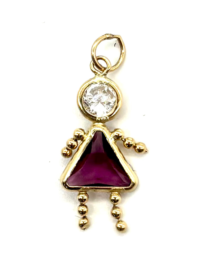 14K Yellow Gold Little Girl Charm – February Birthstone