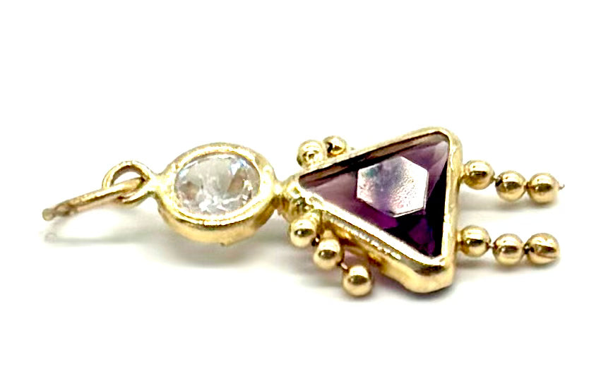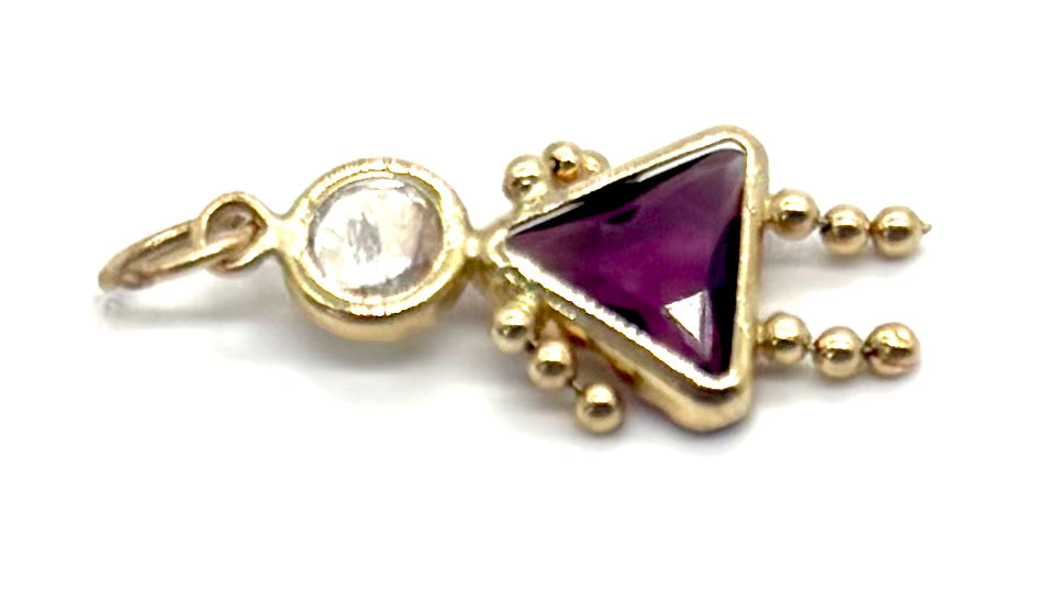 Celebrate love, family, or a meaningful February birthday with this sweet little girl charm. Crafted in 14k yellow gold, this delicate piece features sparkling cubic zirconia and a charming purple stone. Perfect for adding a personal touch to a charm bracelet or necklace.