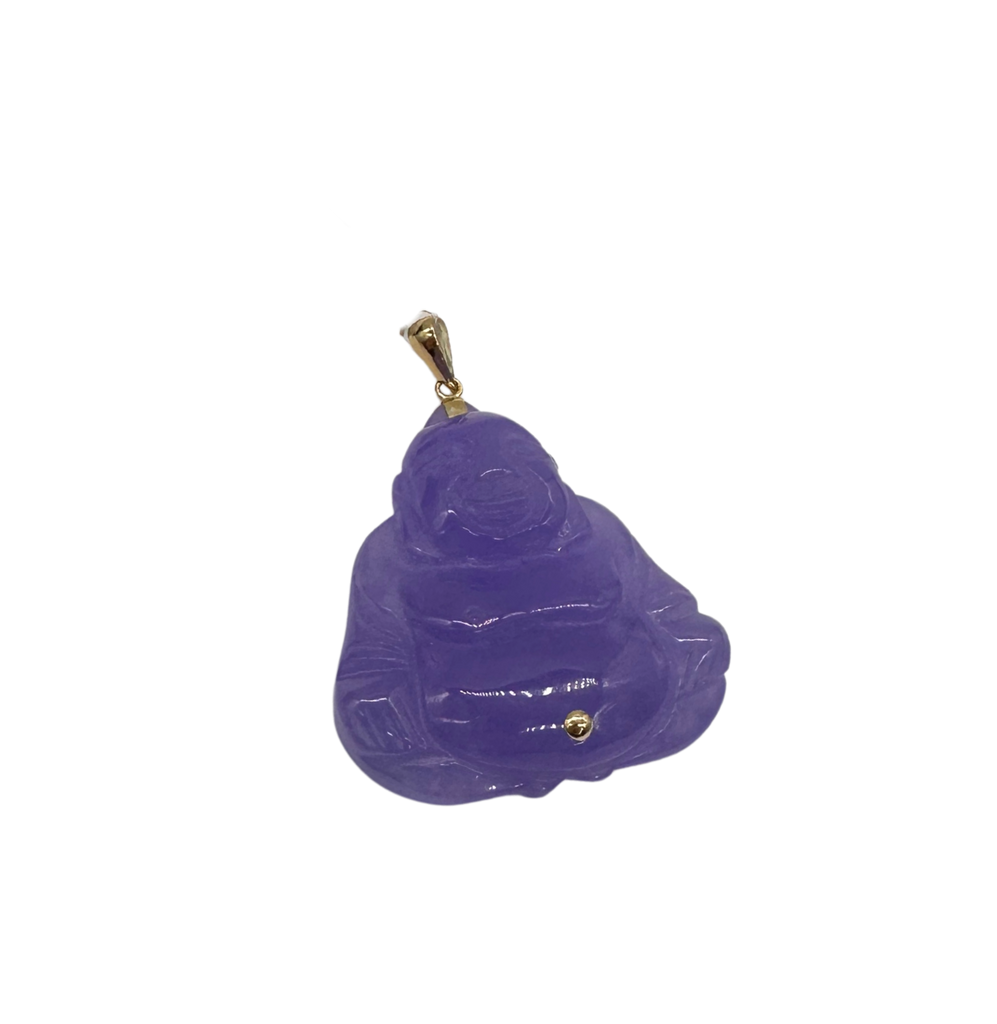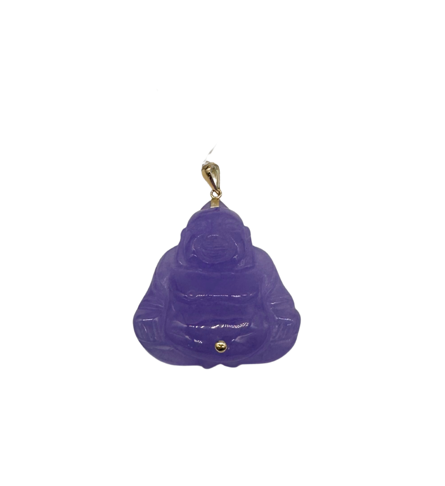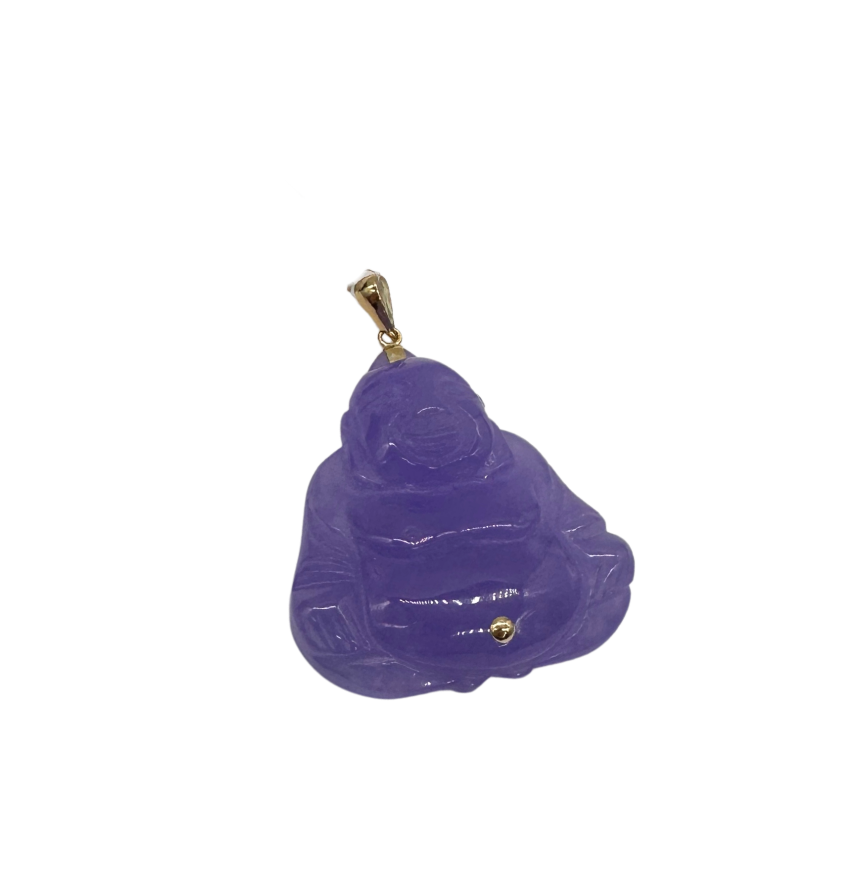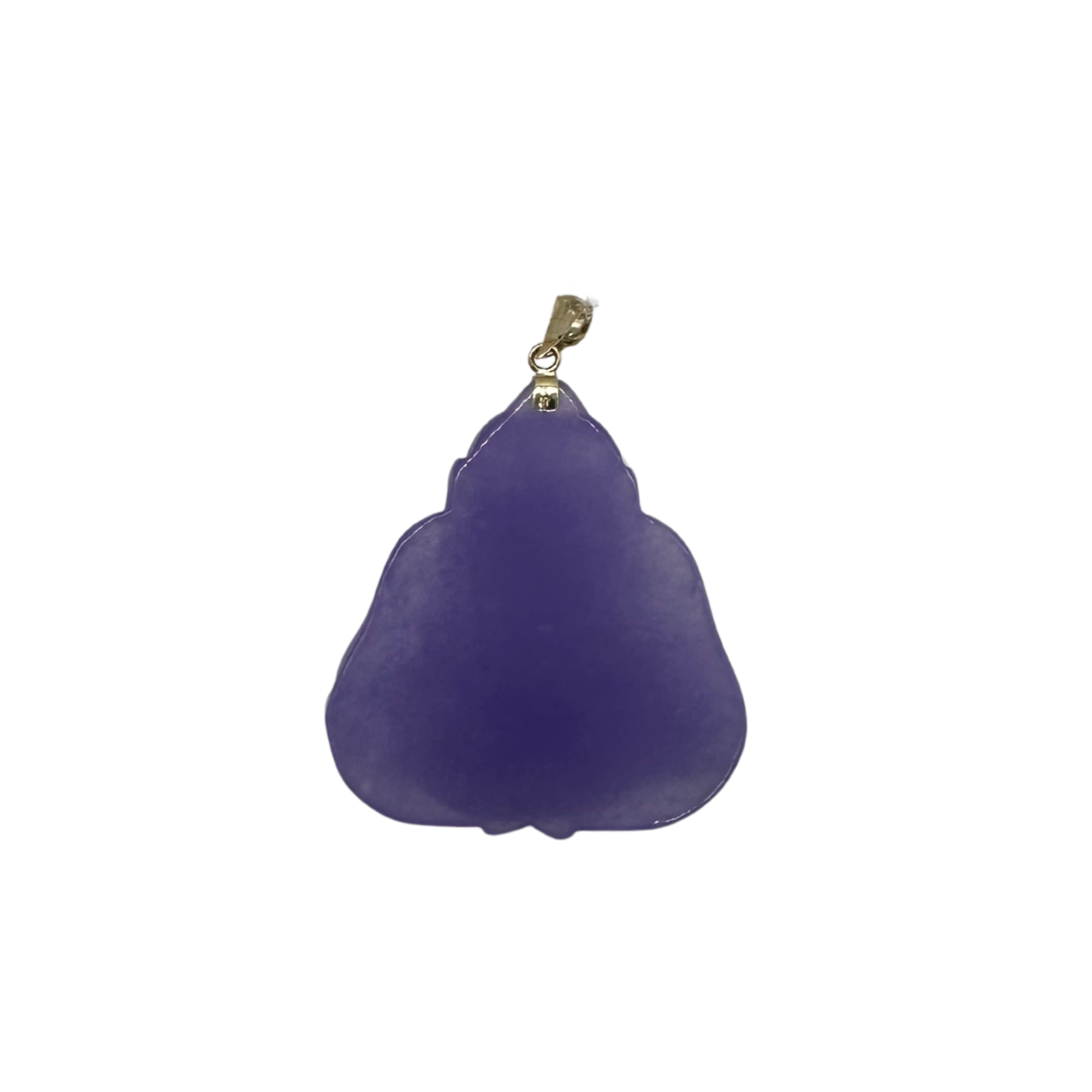 Radiating peaceful energy and exquisite craftsmanship, this bold pendant features a beautifully carved purple jade Buddha set in rich 14K yellow gold. The gold frame highlights the unique color and serene expression of the jade, creating a perfect balance of luxury and spirituality. A substantial 15.8 grams in weight, this piece offers a striking presence and timeless symbolism.