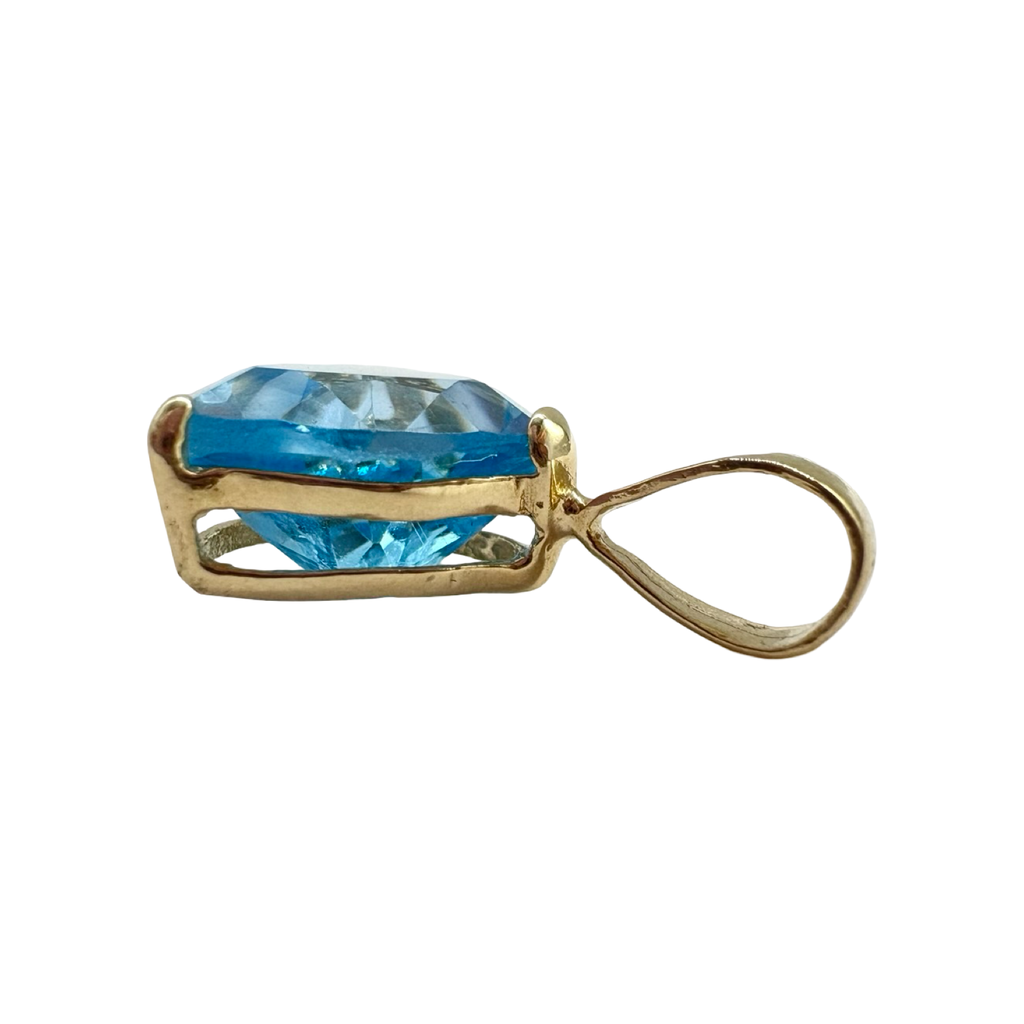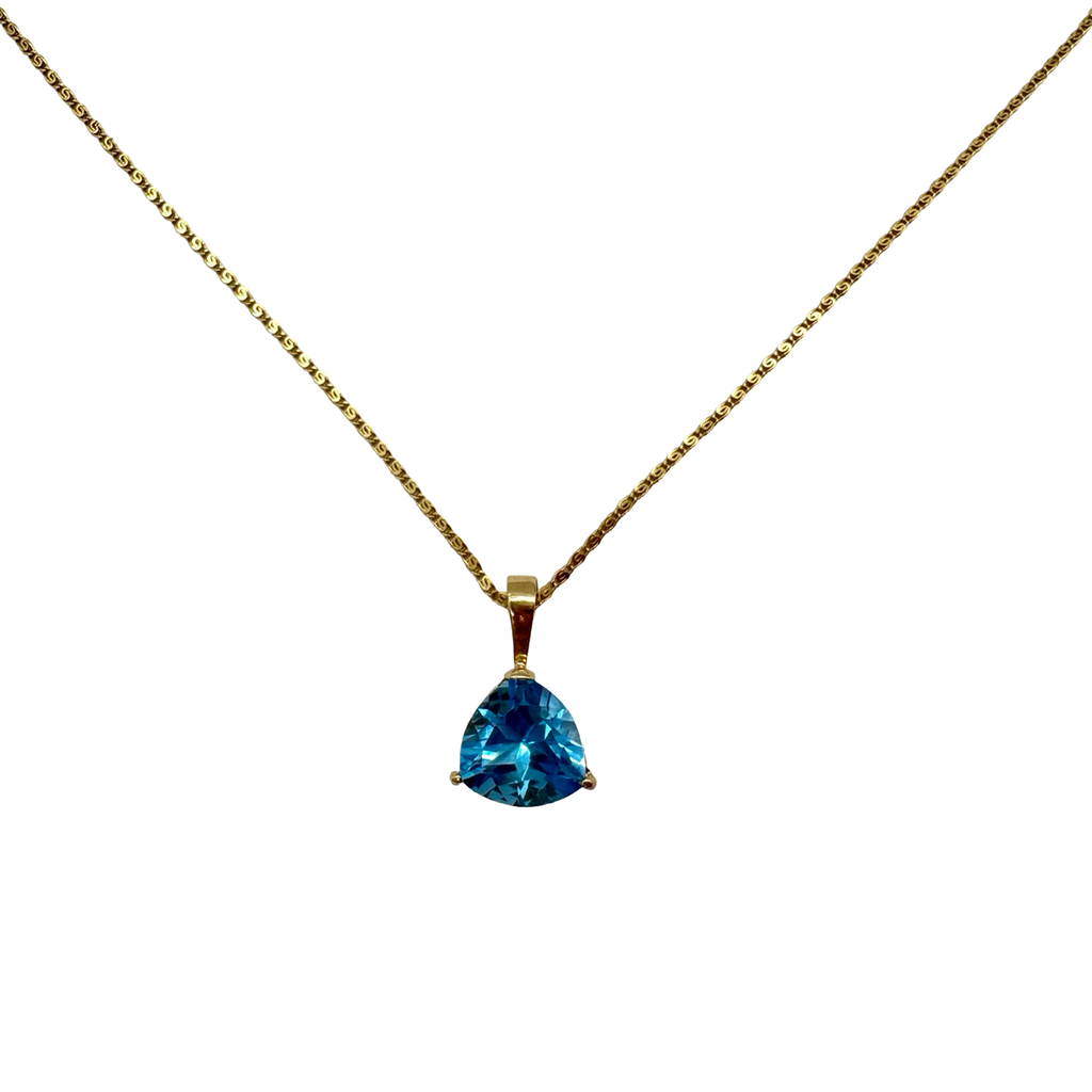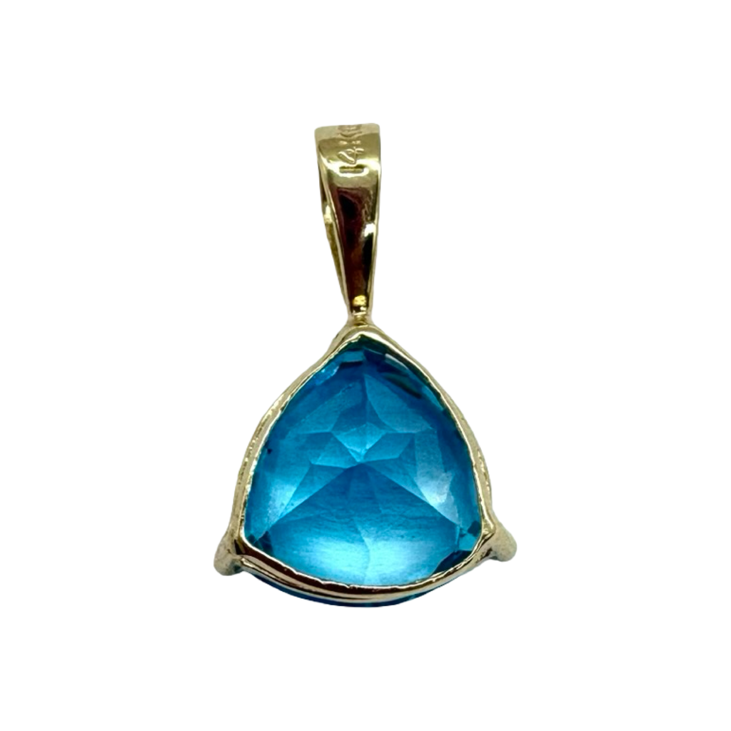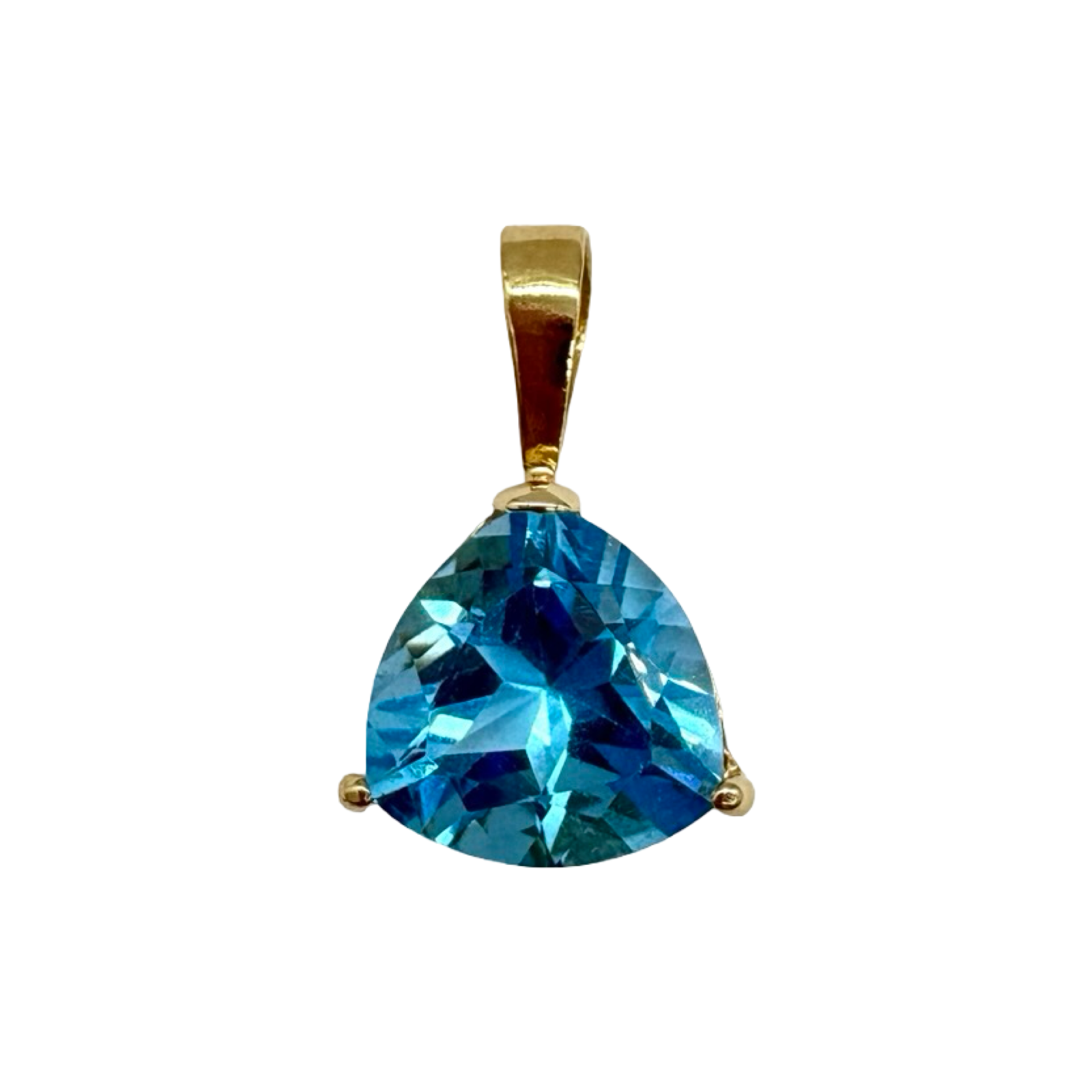 14K Yellow Gold Trillion Blue Topaz 3-Prong Basket Pendant