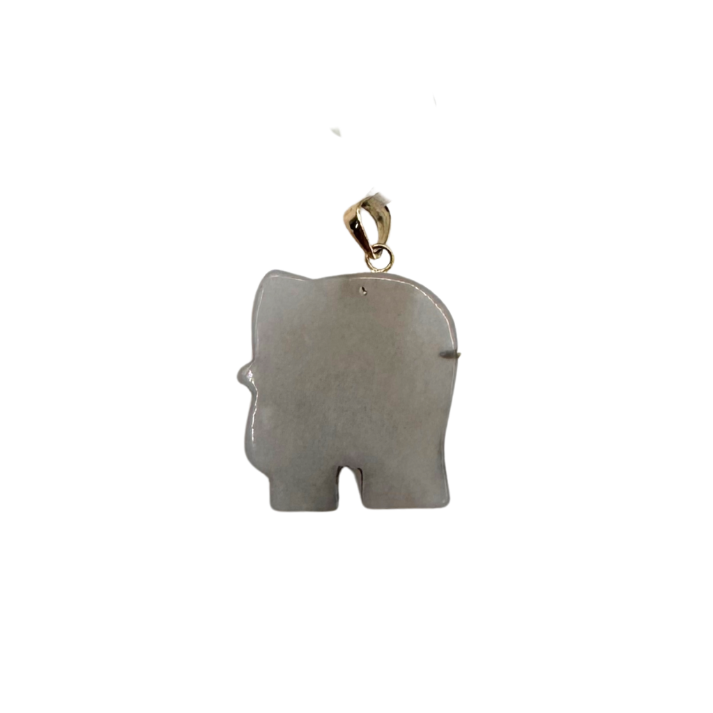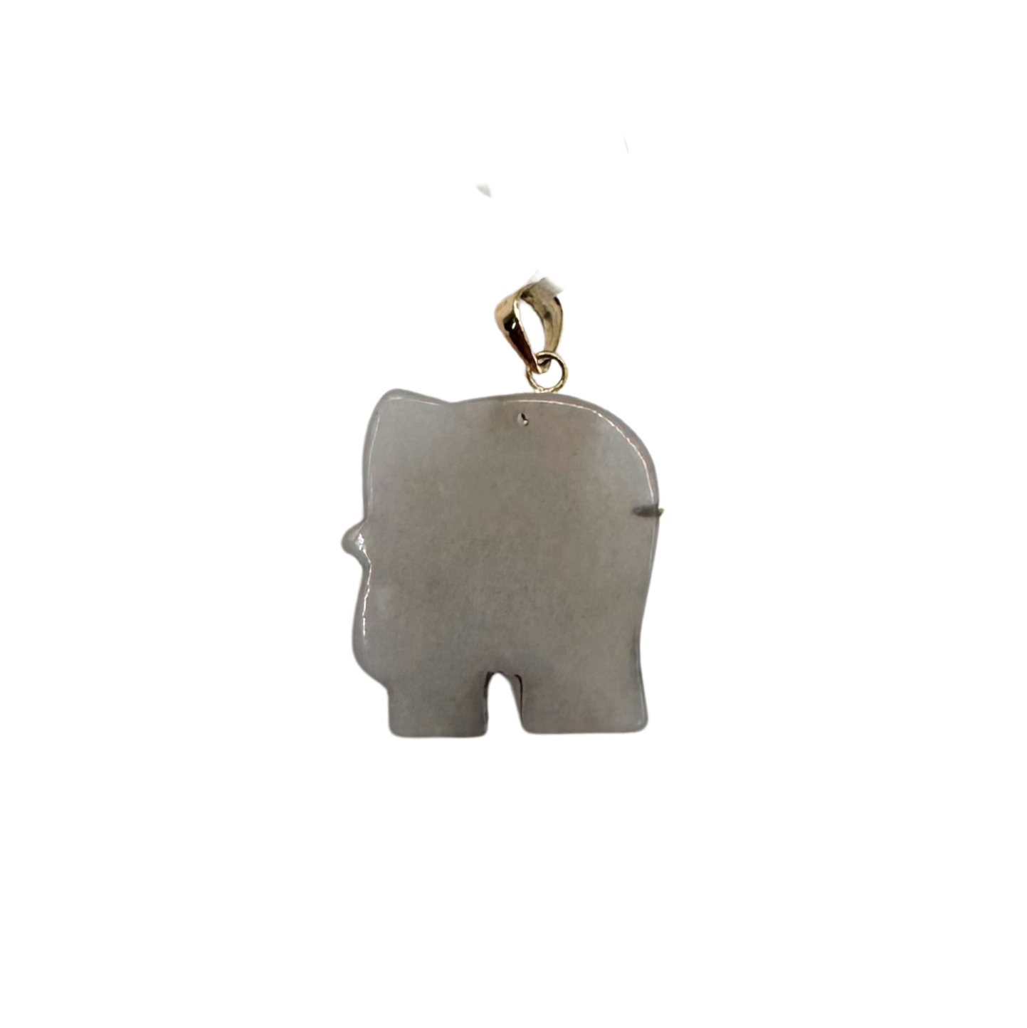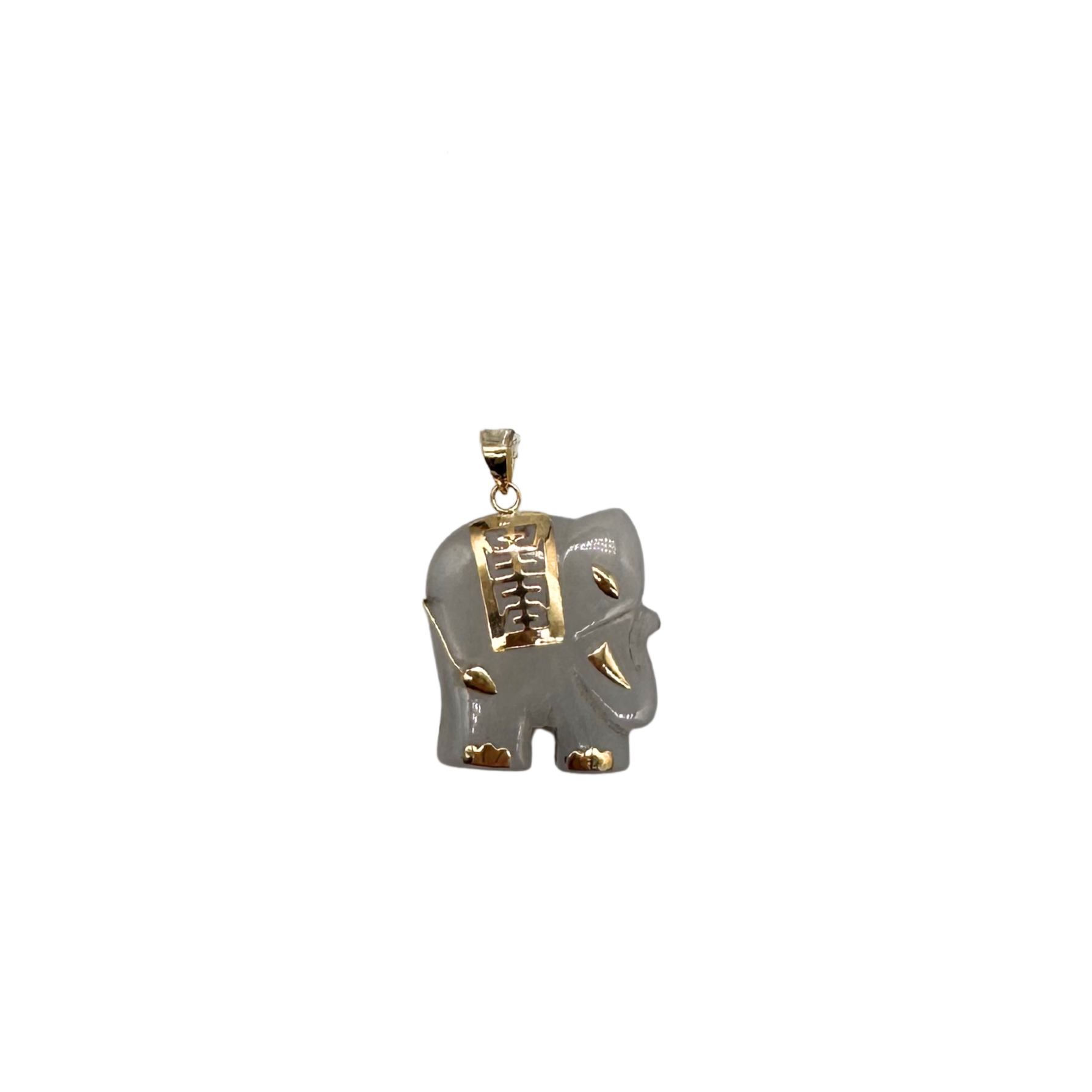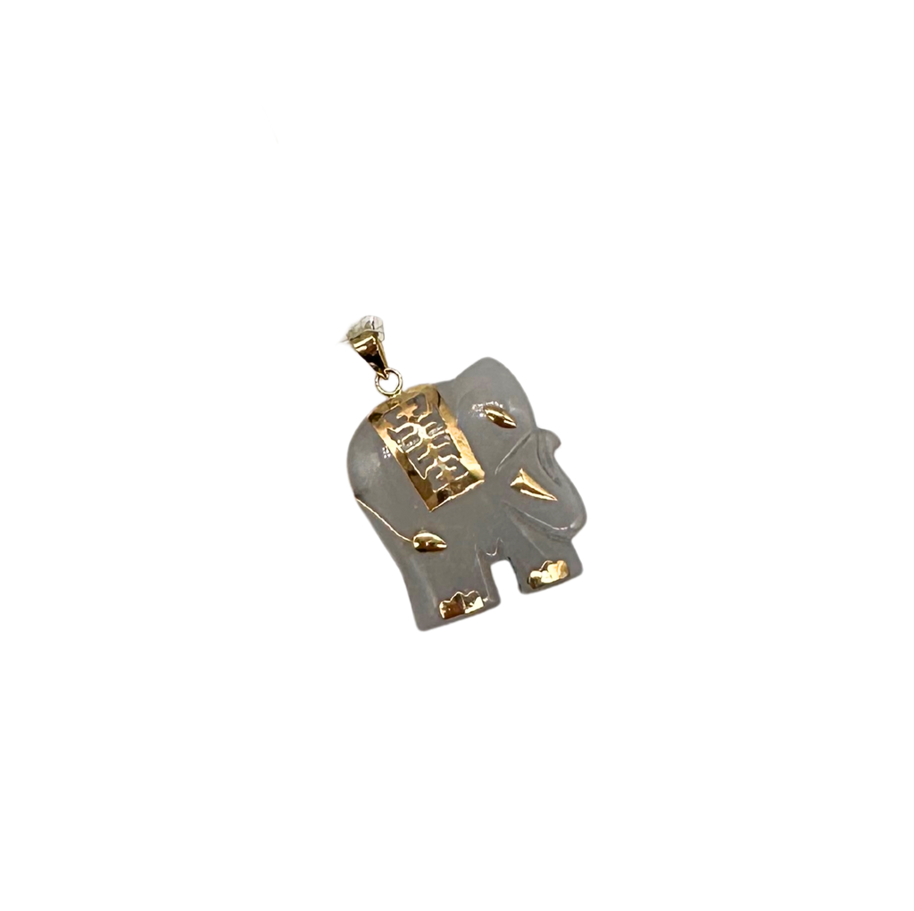 This stunning pendant features a beautifully carved white jade elephant accented with polished 14K yellow gold details. The gold overlays highlight the elephant’s features and add a luxurious contrast to the smooth jade surface. Representing wisdom, protection, and good fortune, this pendant carries both elegance and symbolic meaning, making it a thoughtful gift or a cherished addition to any jewelry collection.