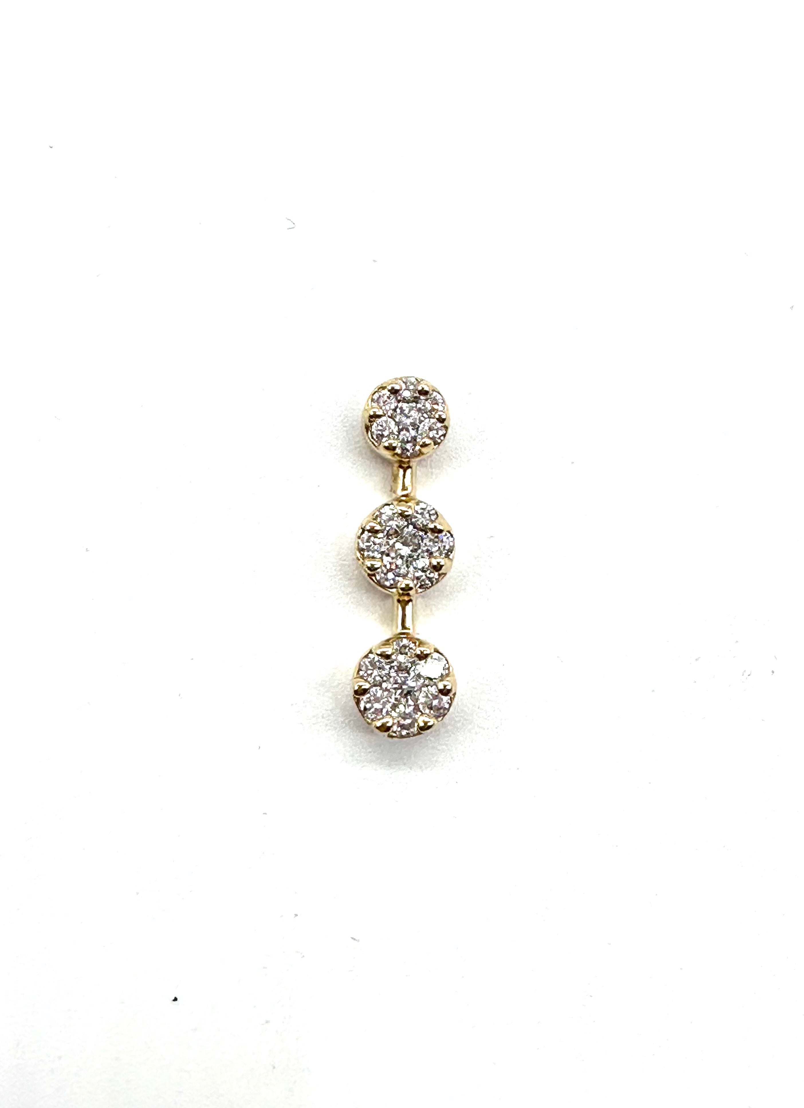 This beautiful Diamond cluster three round tier journey pendant is set with a total of half carat of diamonds in 14 karat yellow gold.