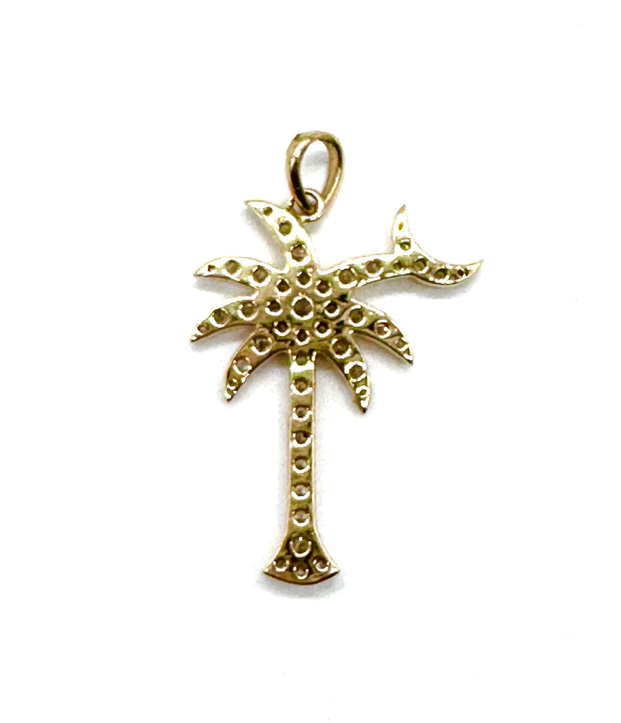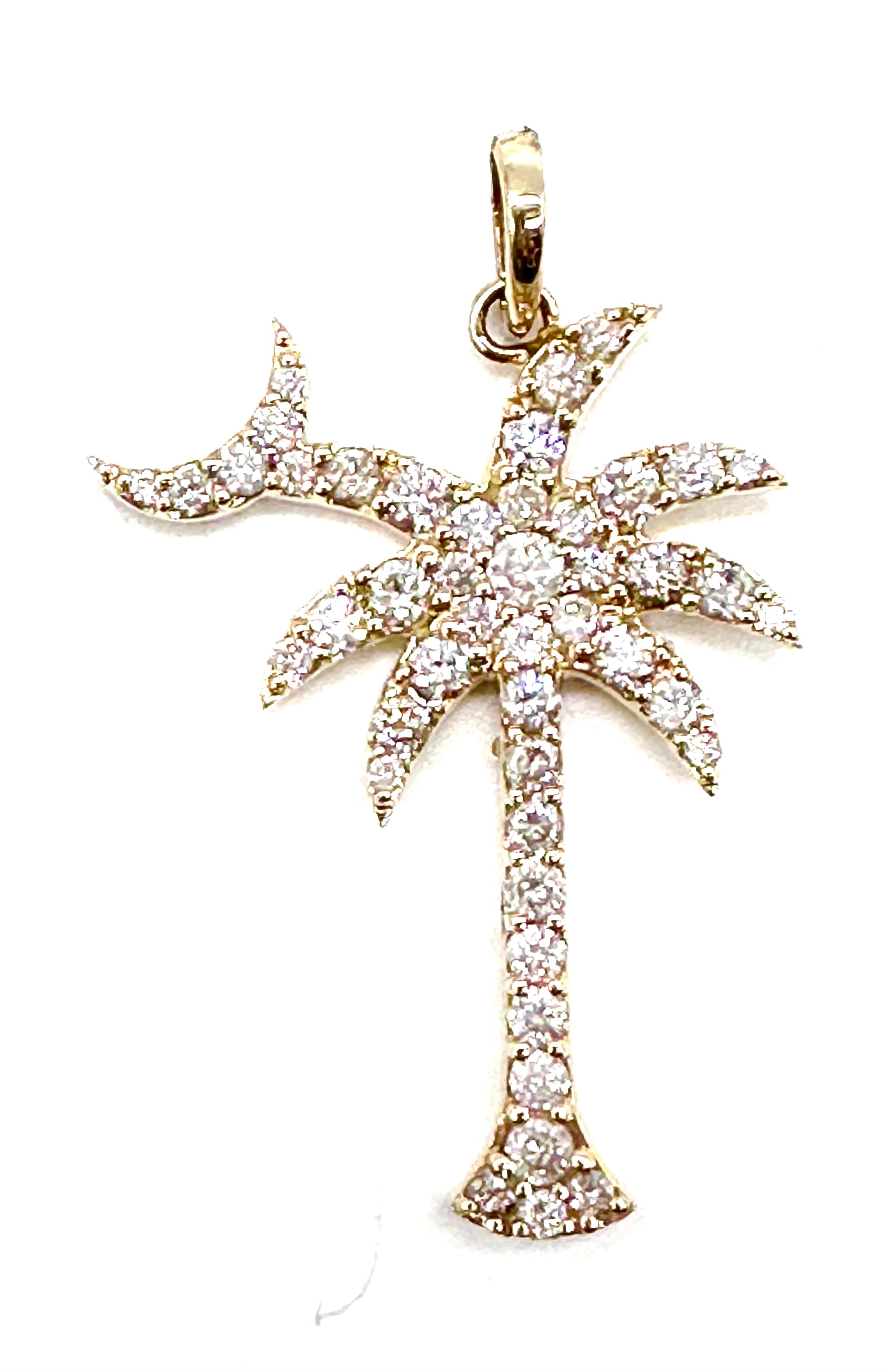 This Spectacular diamond palm tree with moon pendant is set in 14 karat yellow gold with one carat total diamond weight.