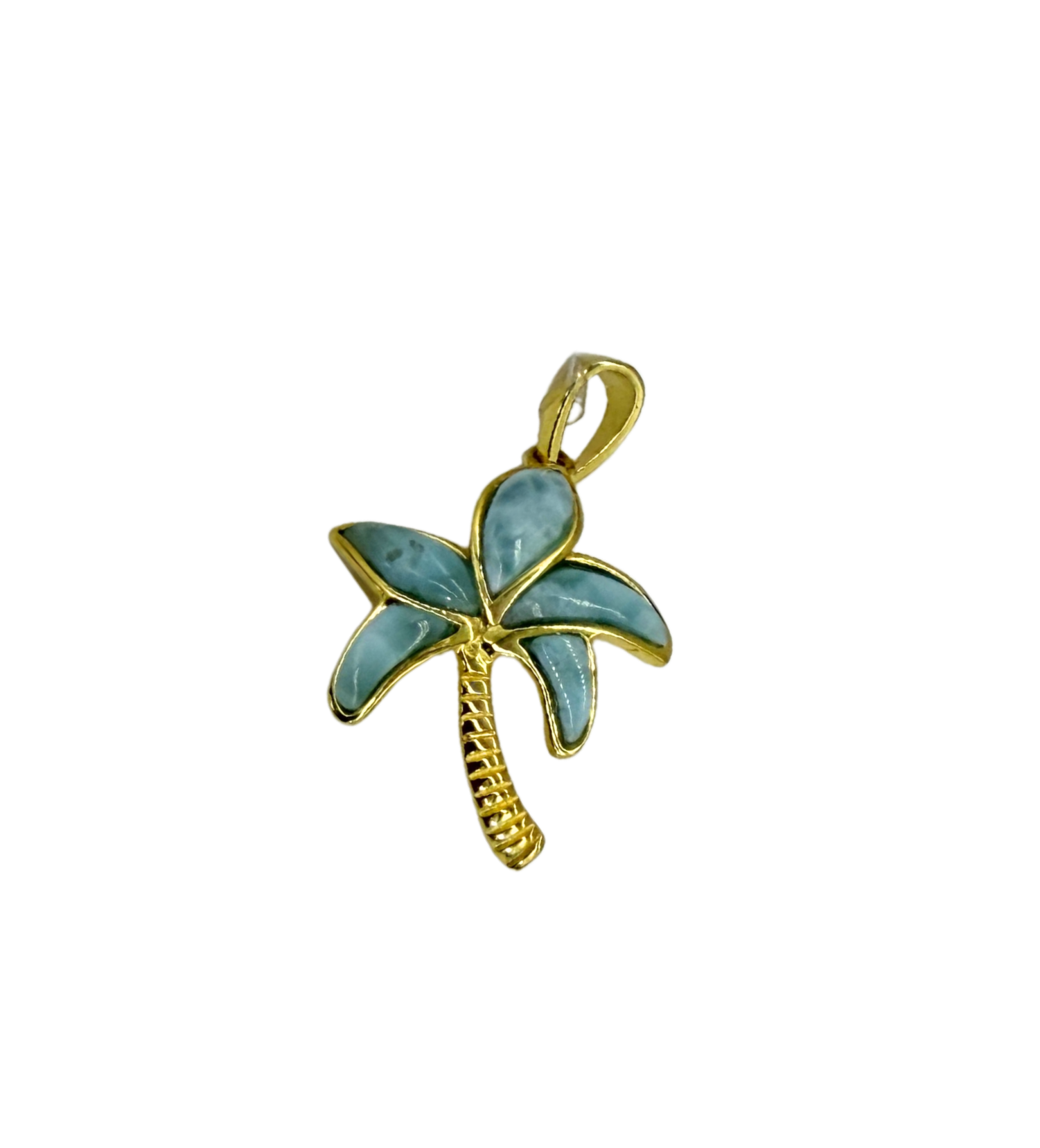 Gold Plated .925 Sterling Silver Larimar Palm Tree Pendant