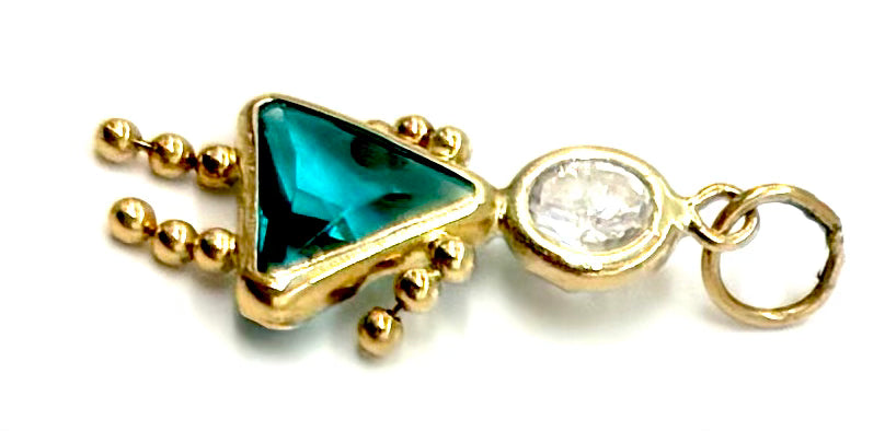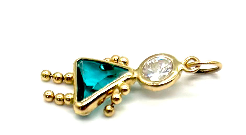 Celebrate a special little one or meaningful milestone with this sweet girl charm, crafted in 14K yellow gold. The charm features a sparkling May birthstone-inspired green stone paired with a round cubic zirconia accent, adding just the right touch of color and shine. Perfect for bracelets, necklaces, or charm collections with sentimental value.