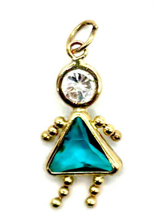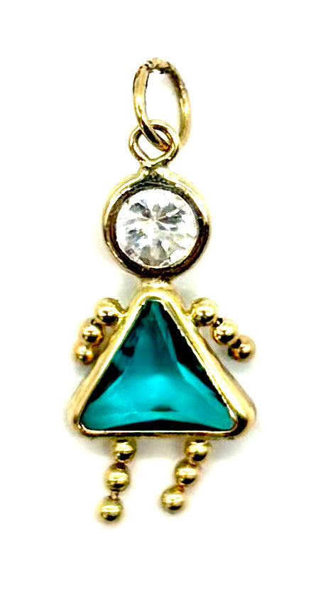 14K Yellow Gold Girl Charm with May Birthstone & Cubic Zirconia