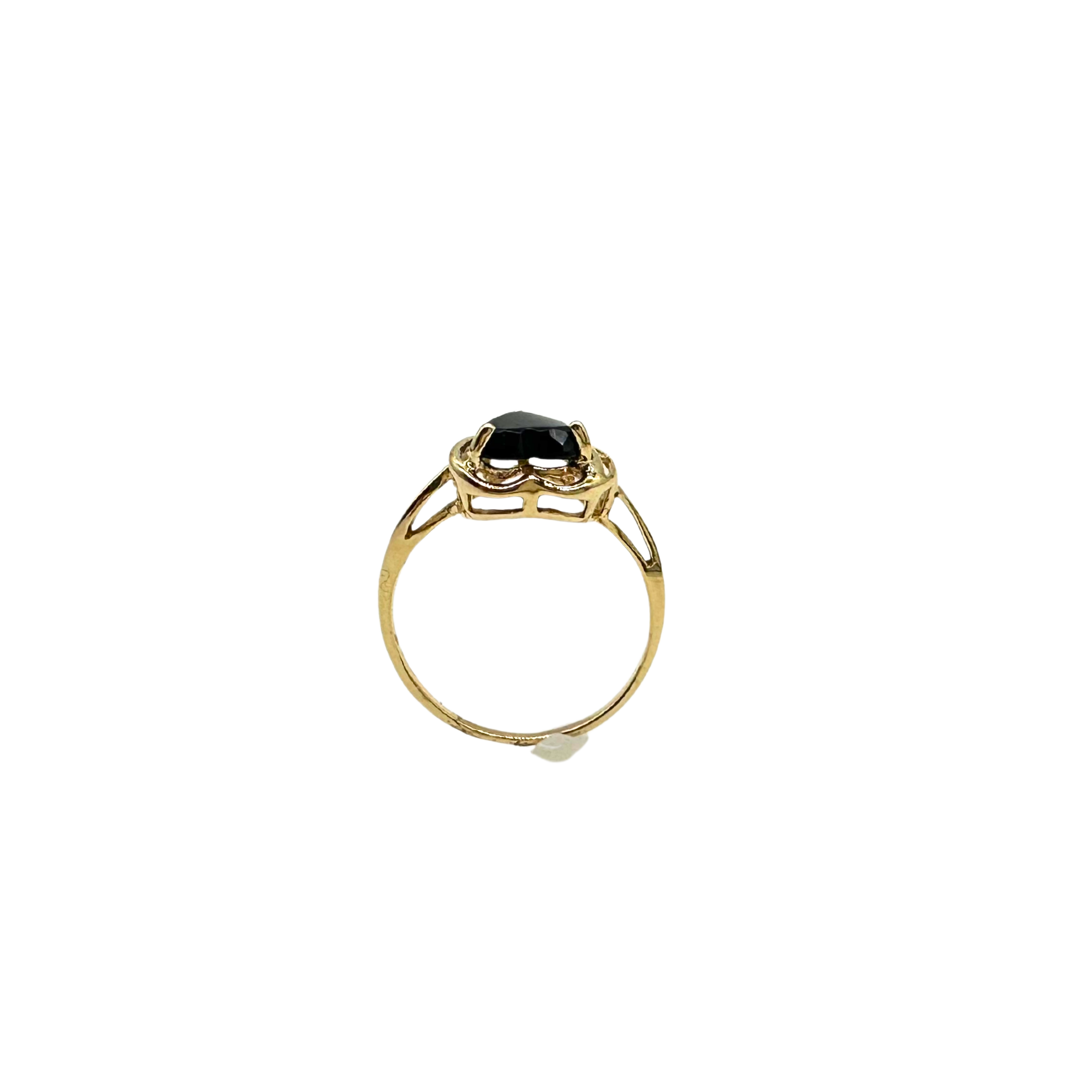 10k Yellow Gold Heart Black Onyx and Diamond Ring