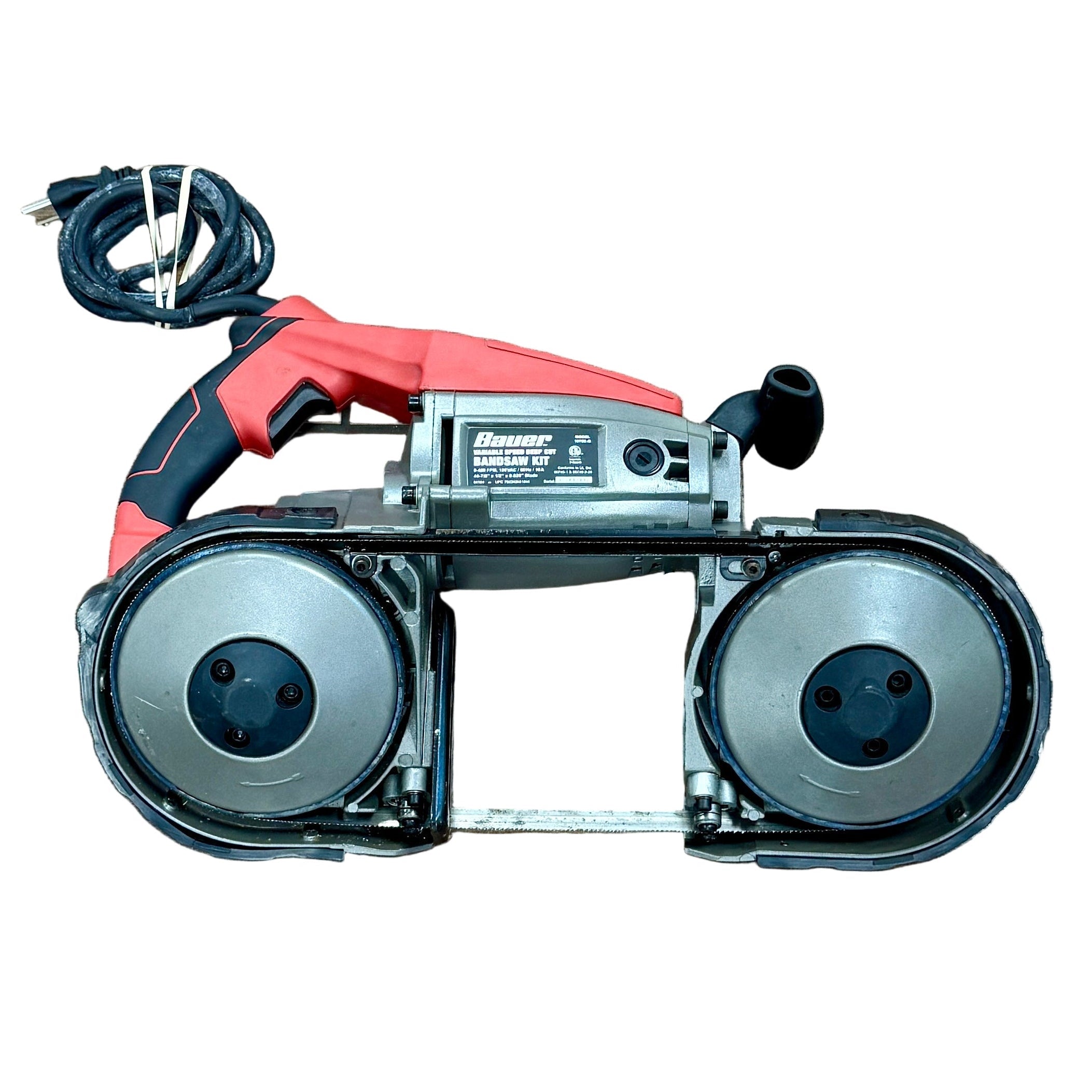 The BAUER 10-Amp Corded Deep Cut Variable Speed Band Saw (1678E-B) delivers strong cutting performance and dependable control for metalworking, construction, and workshop applications. With its deep cut capacity, variable speed functionality, and durable build, it’s designed for both precision and power. This model includes a hard case for safe storage and transport.