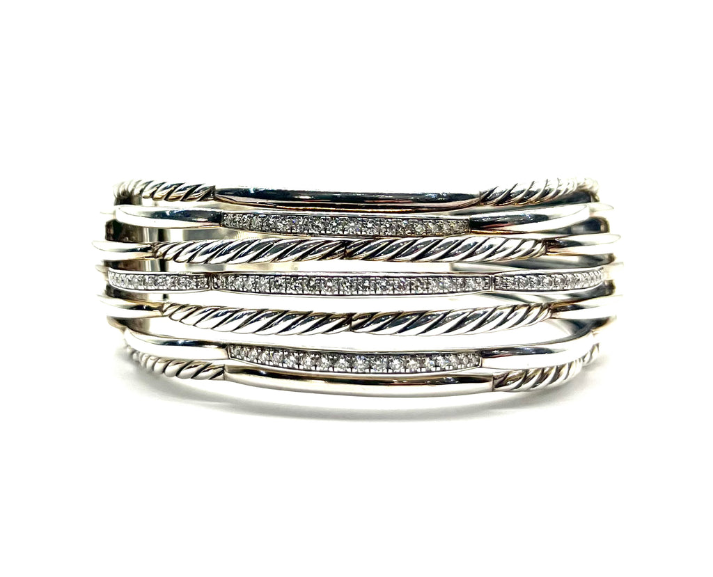 David Yurman Sterling Silver MultiRow Diamond Bangle Bracelet