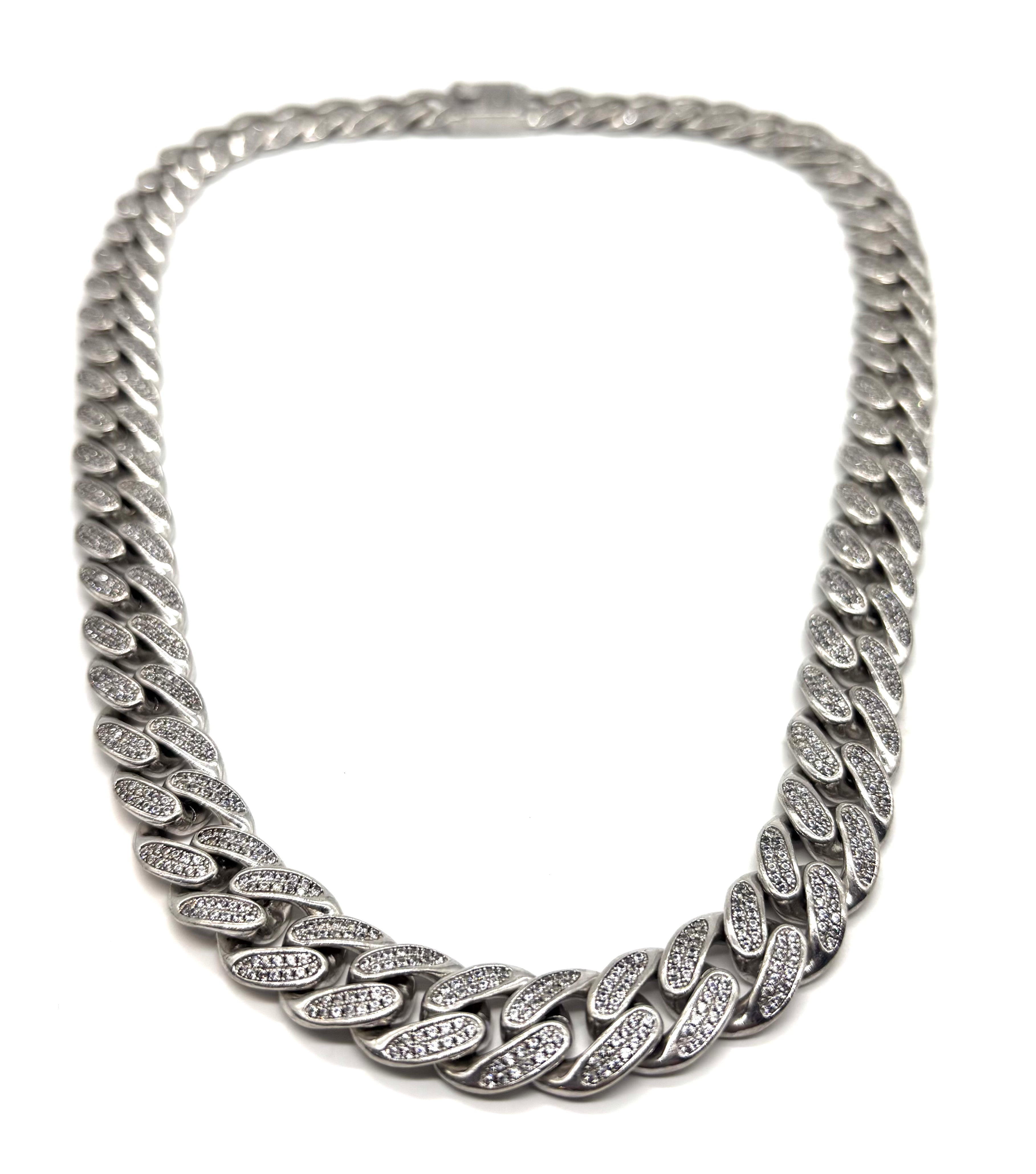 A striking, heavyweight necklace that blends classic Cuban styling with modern sparkle—perfect worn solo or layered for extra impact.
