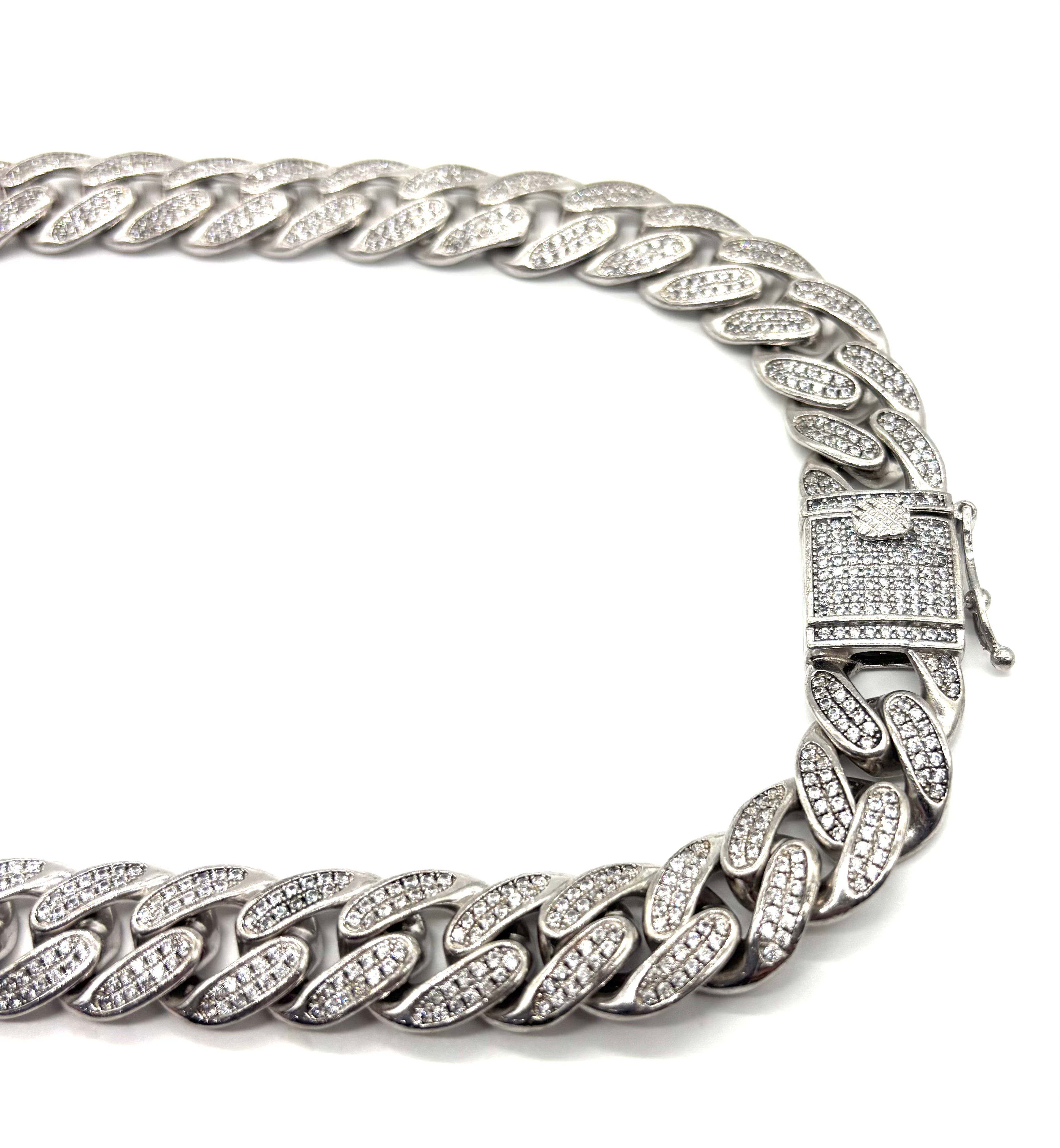 Sterling Silver| 13MM Cuban Necklace With Cubic Zirconia