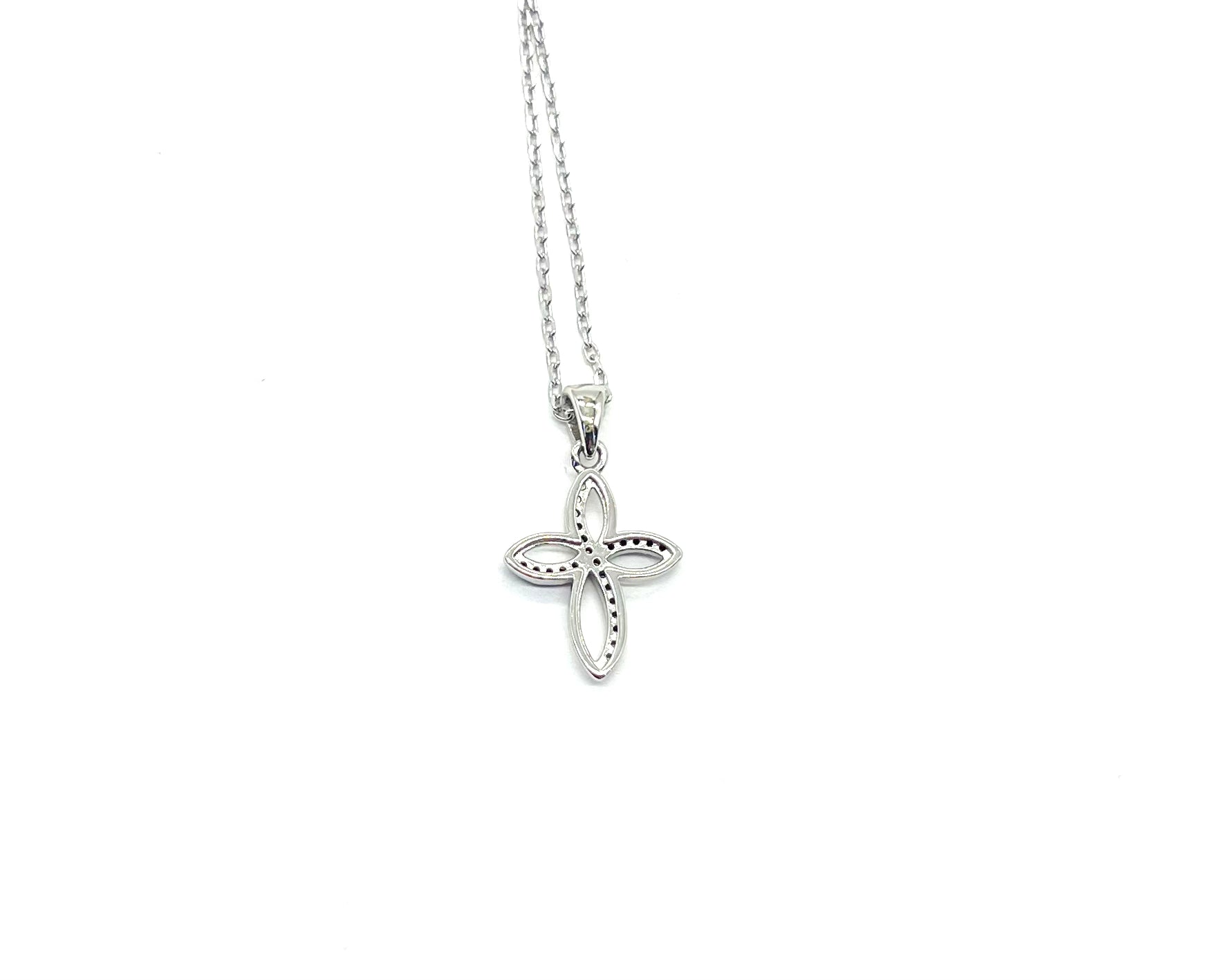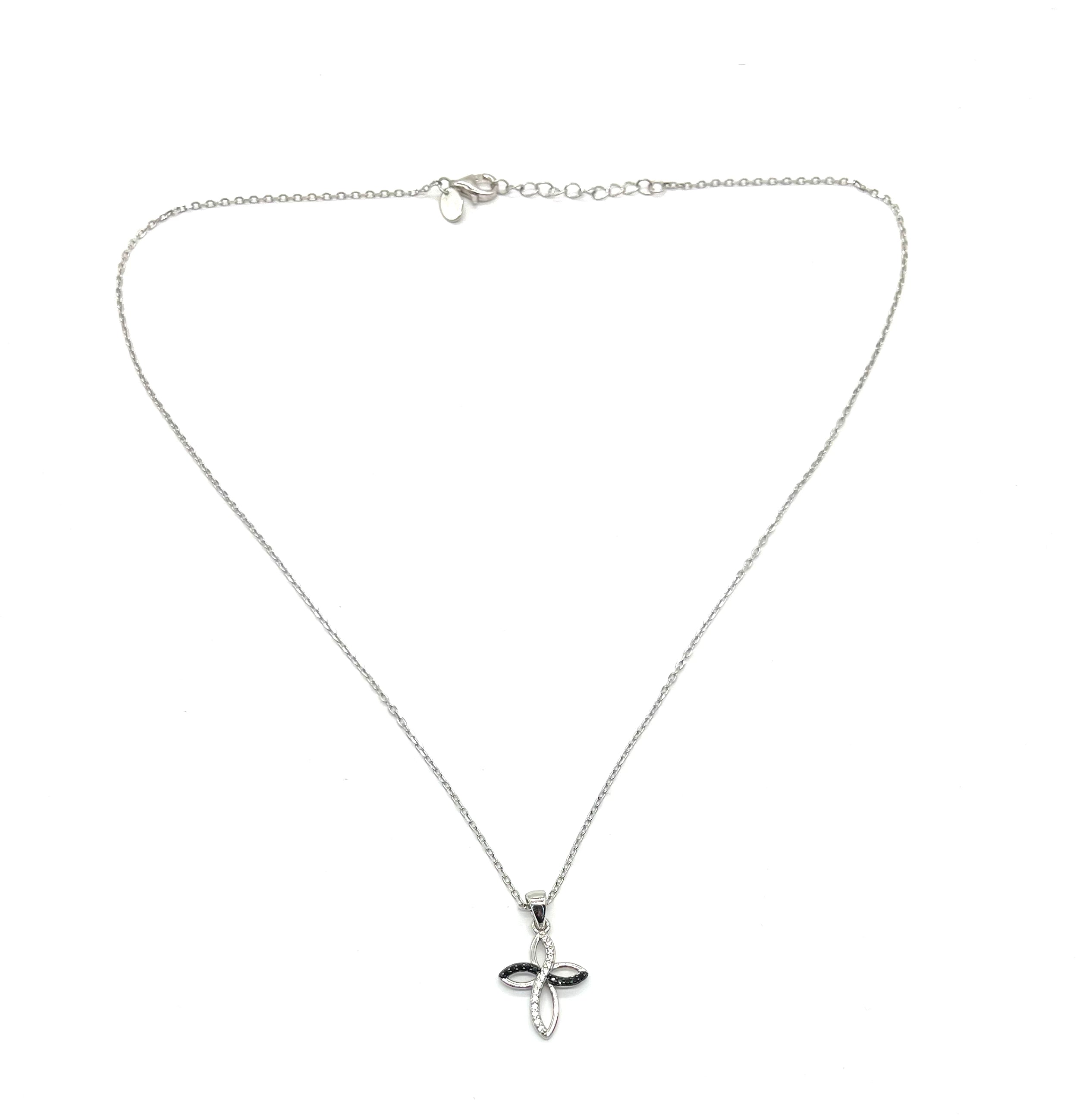 .925 Sterling Silver Black and White CZ Eternity Cross Pendant Necklace