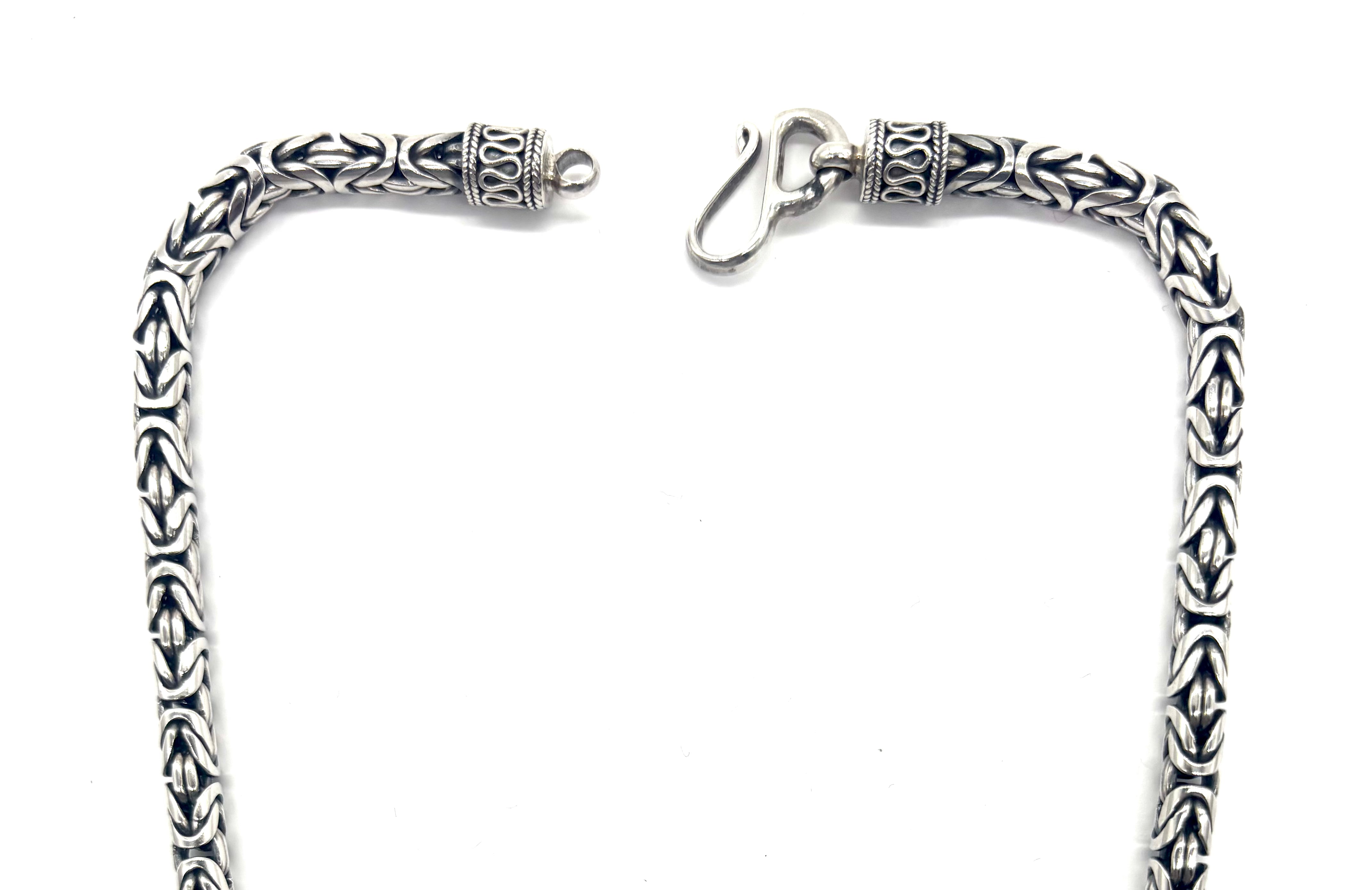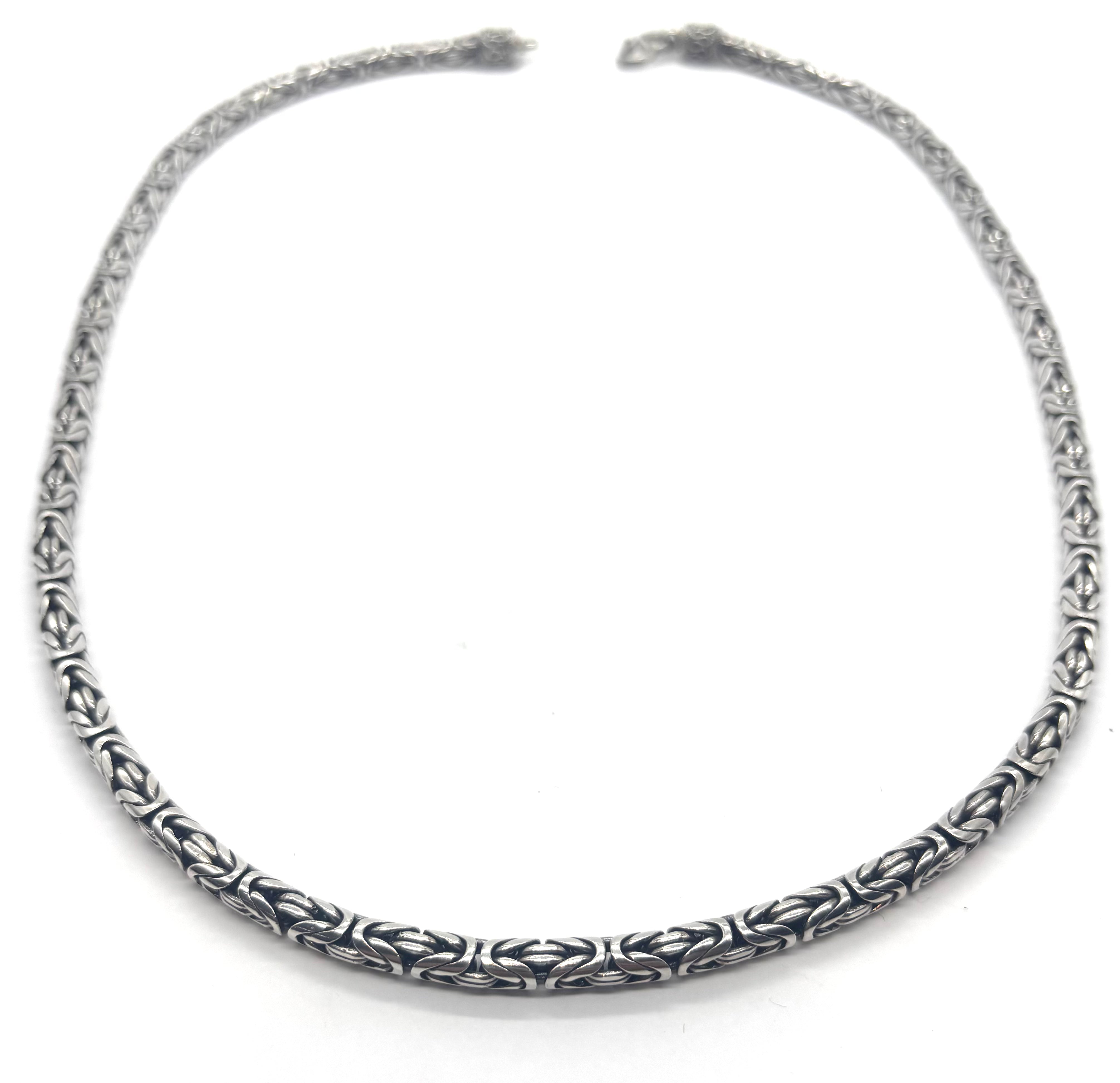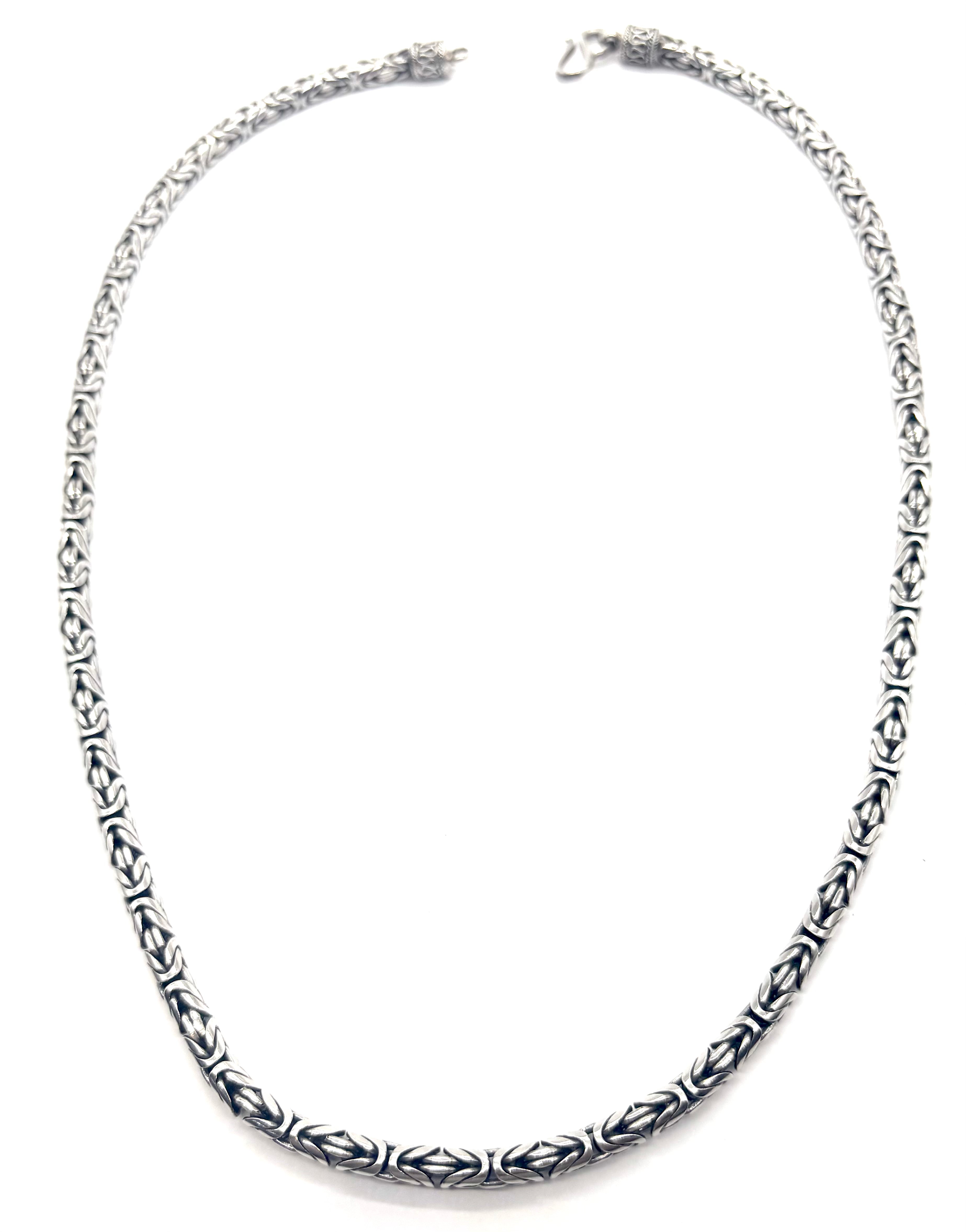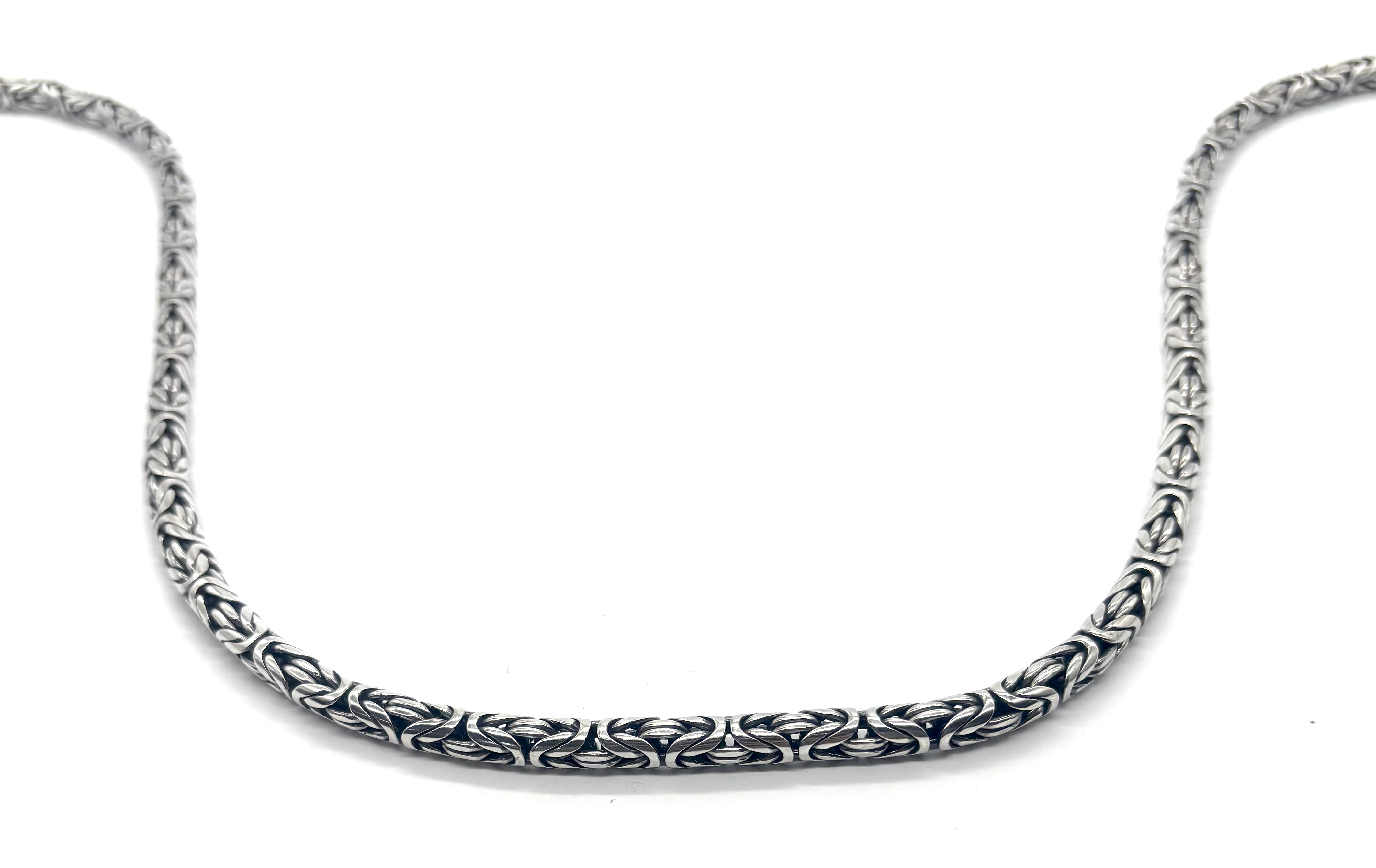 Make a bold statement with this stunning 5mm Byzantine necklace, crafted in solid 925 sterling silver. Known for its intricate, woven design, the Byzantine pattern offers timeless sophistication with a substantial feel.