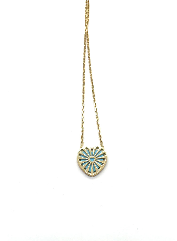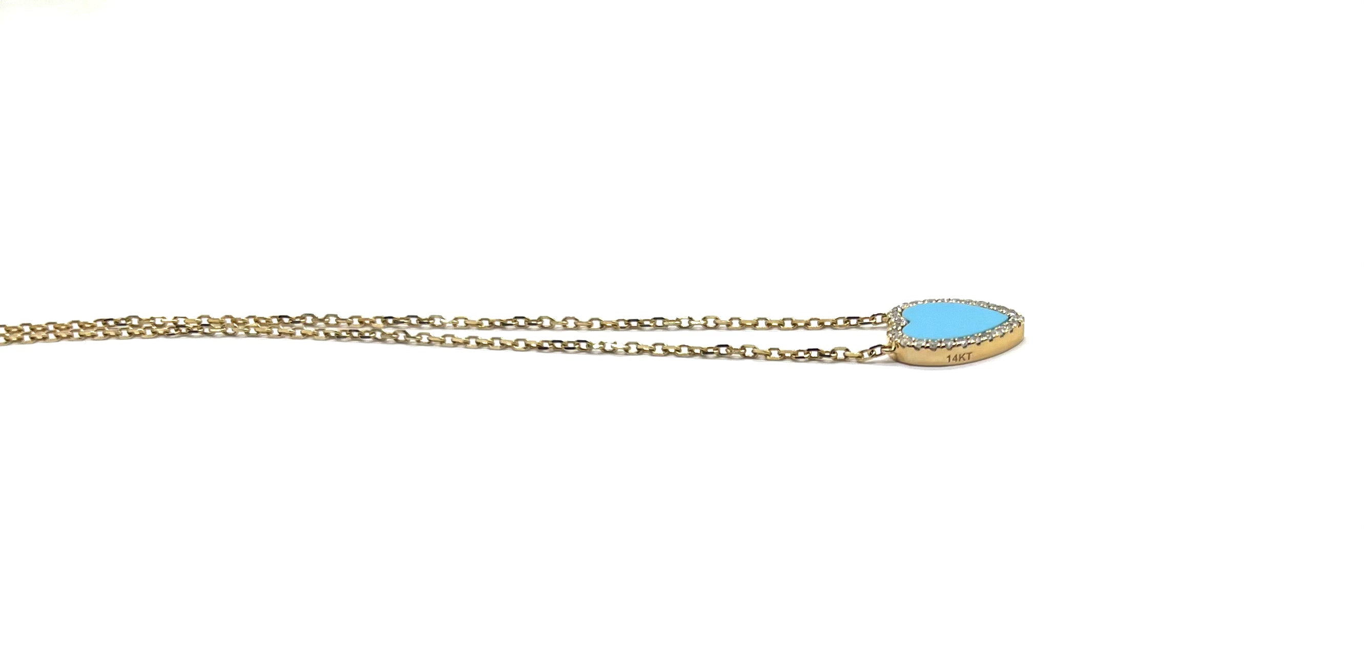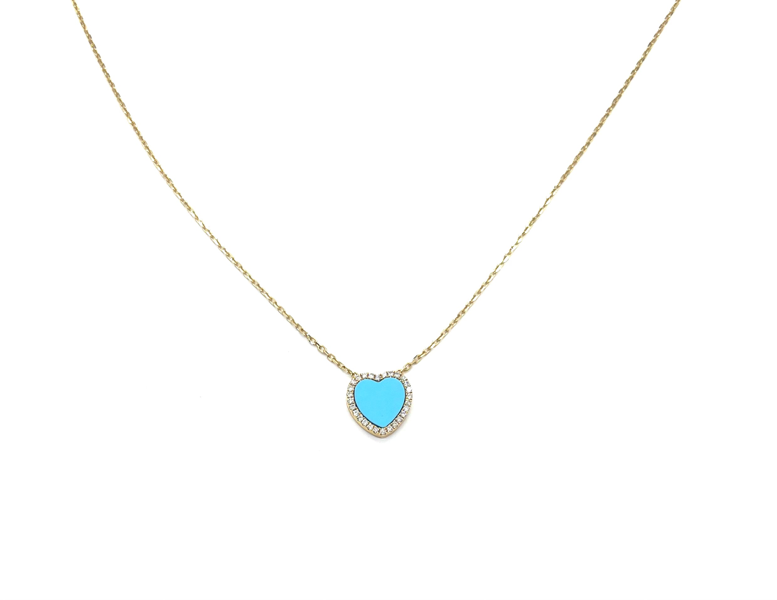 14k Turquoise Heart Diamond Halo Station Necklace