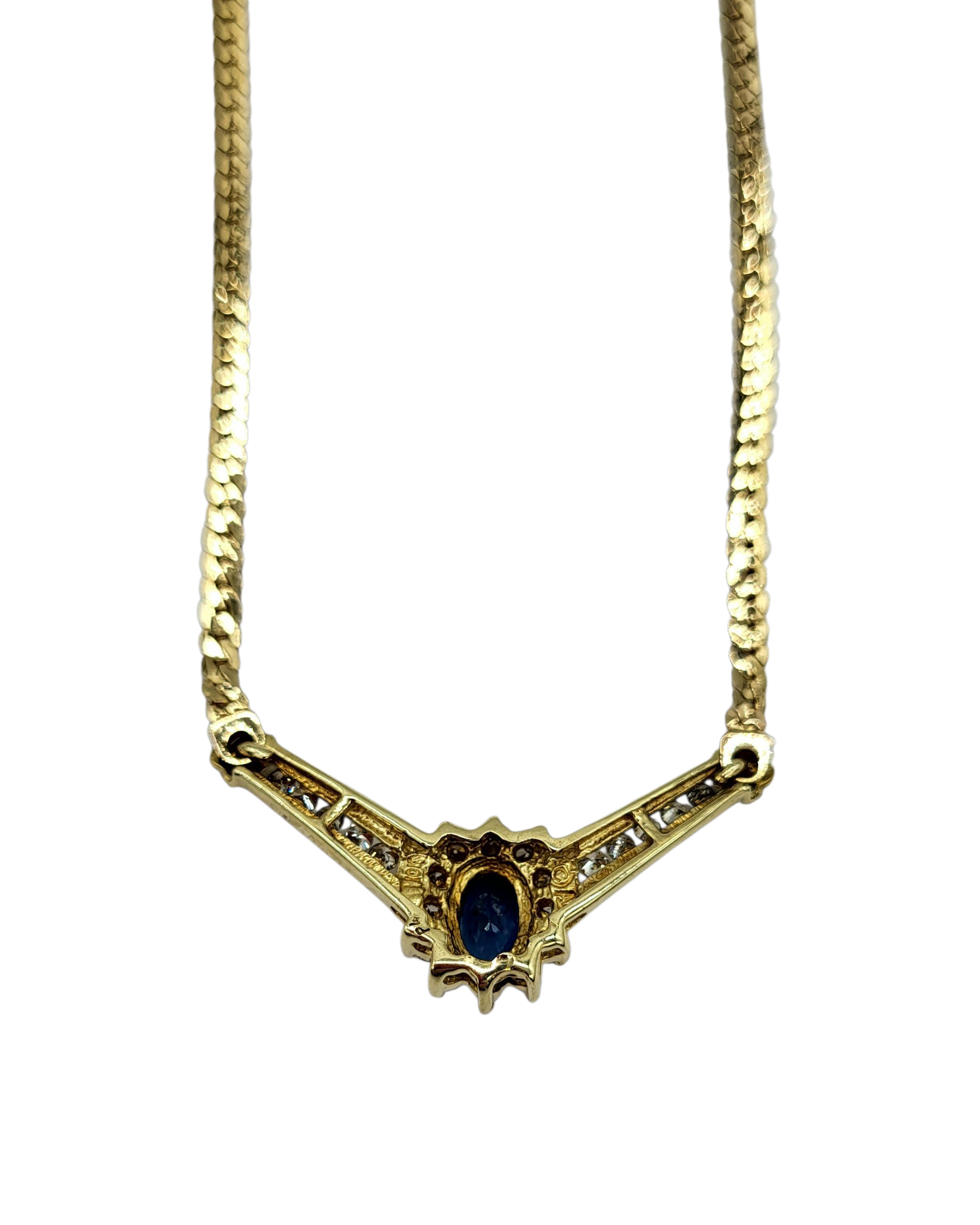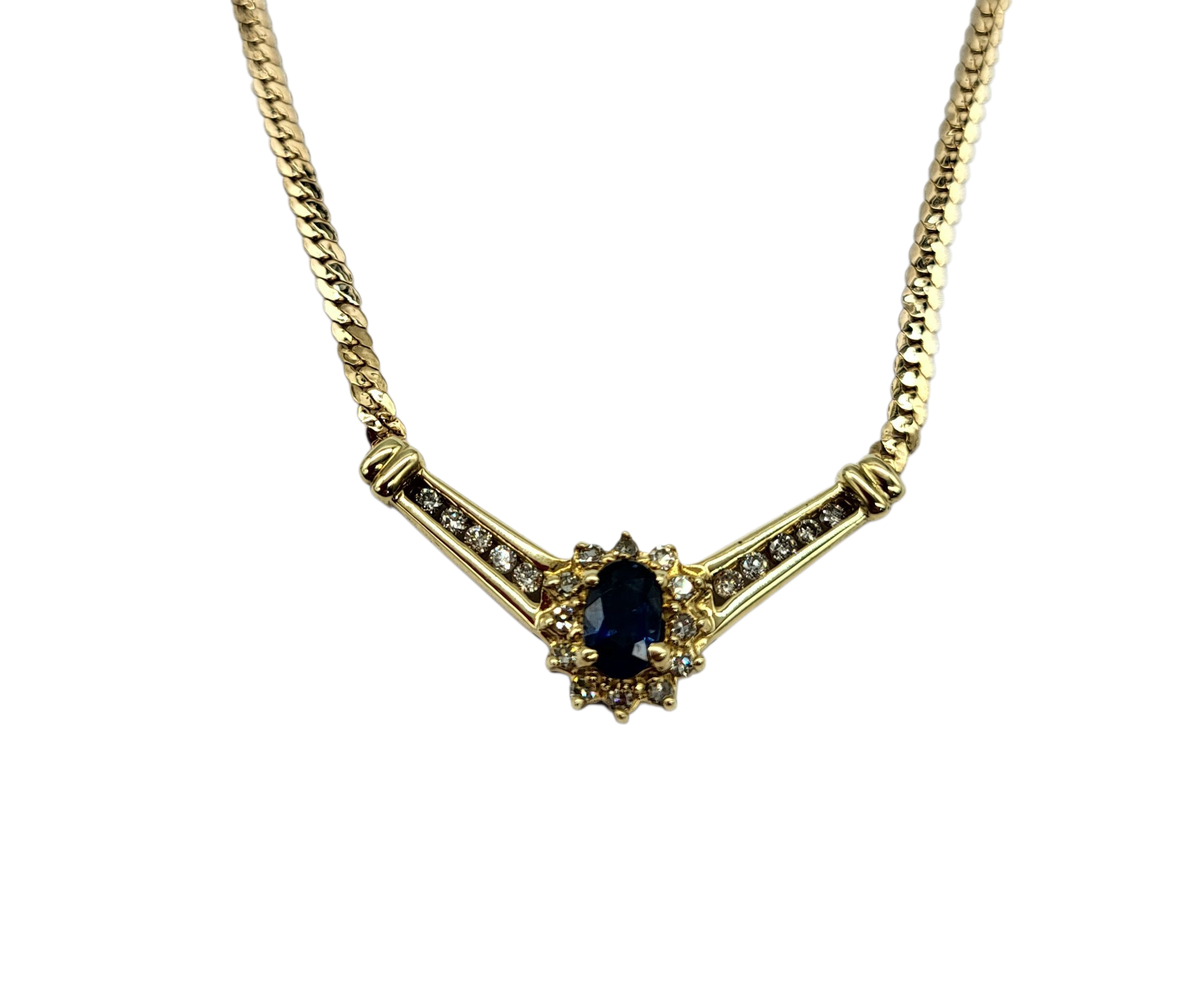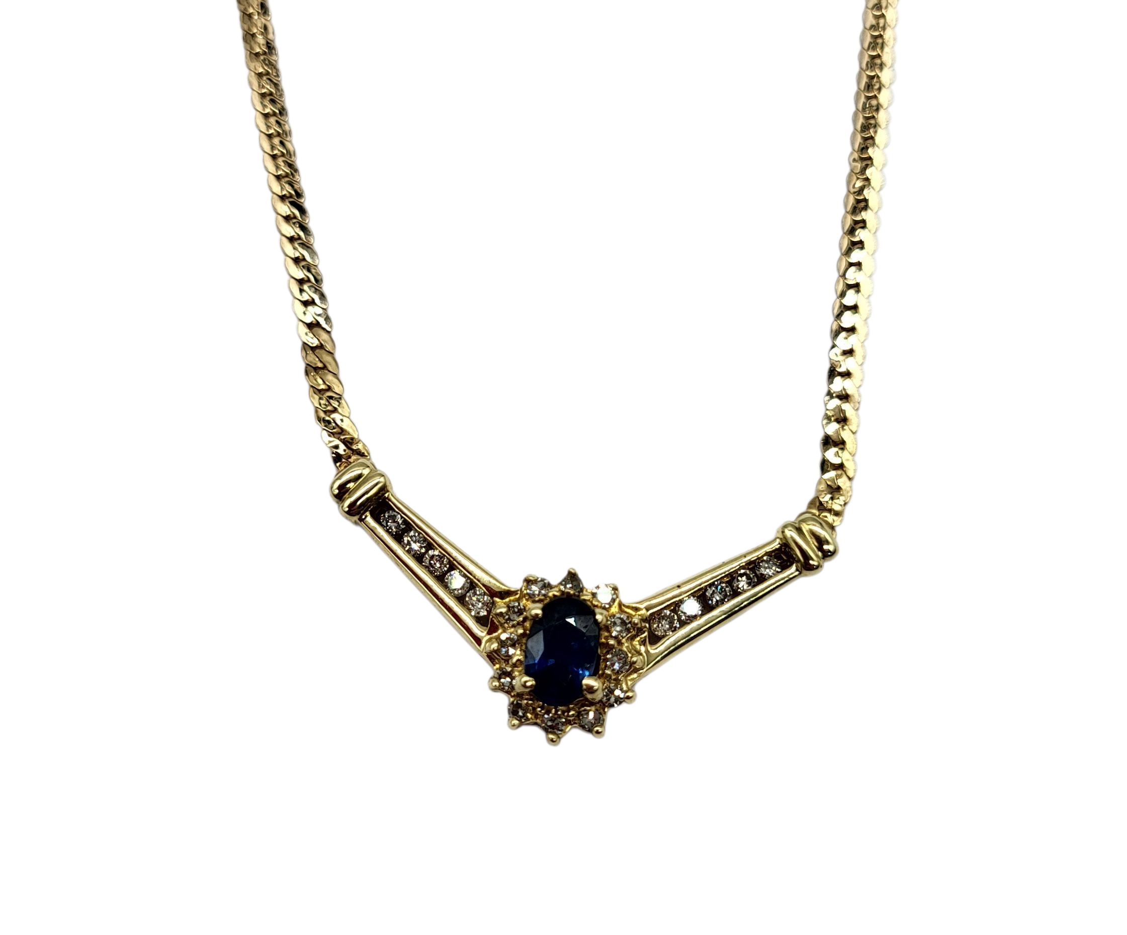 10K Yellow Gold Sapphire and Diamond Stationary Necklace
