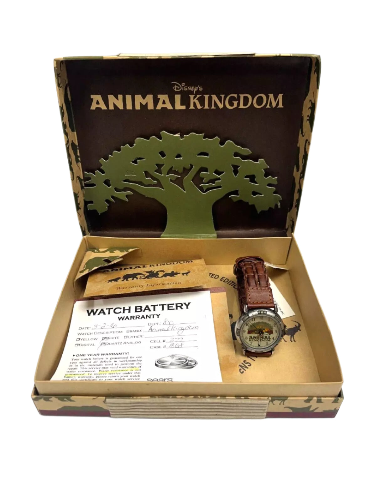 The Disney Animal Kingdom Pre-Opening Watch is a rare collector’s timepiece released in celebration of Walt Disney World's Animal Kingdom before its official grand opening in 1998. Featuring exclusive artwork and limited-edition design, it’s a must-have for Disney enthusiasts and memorabilia collectors alike.