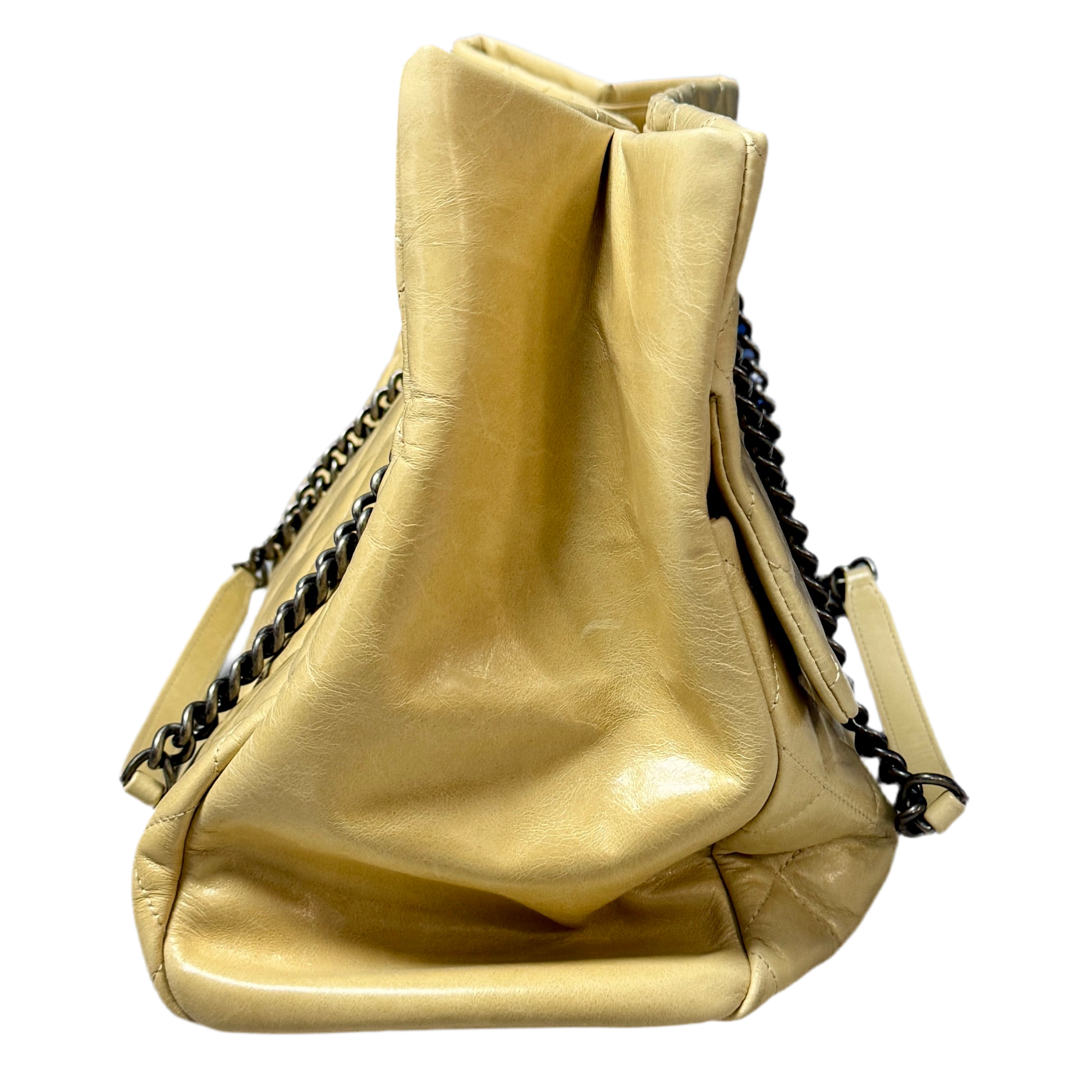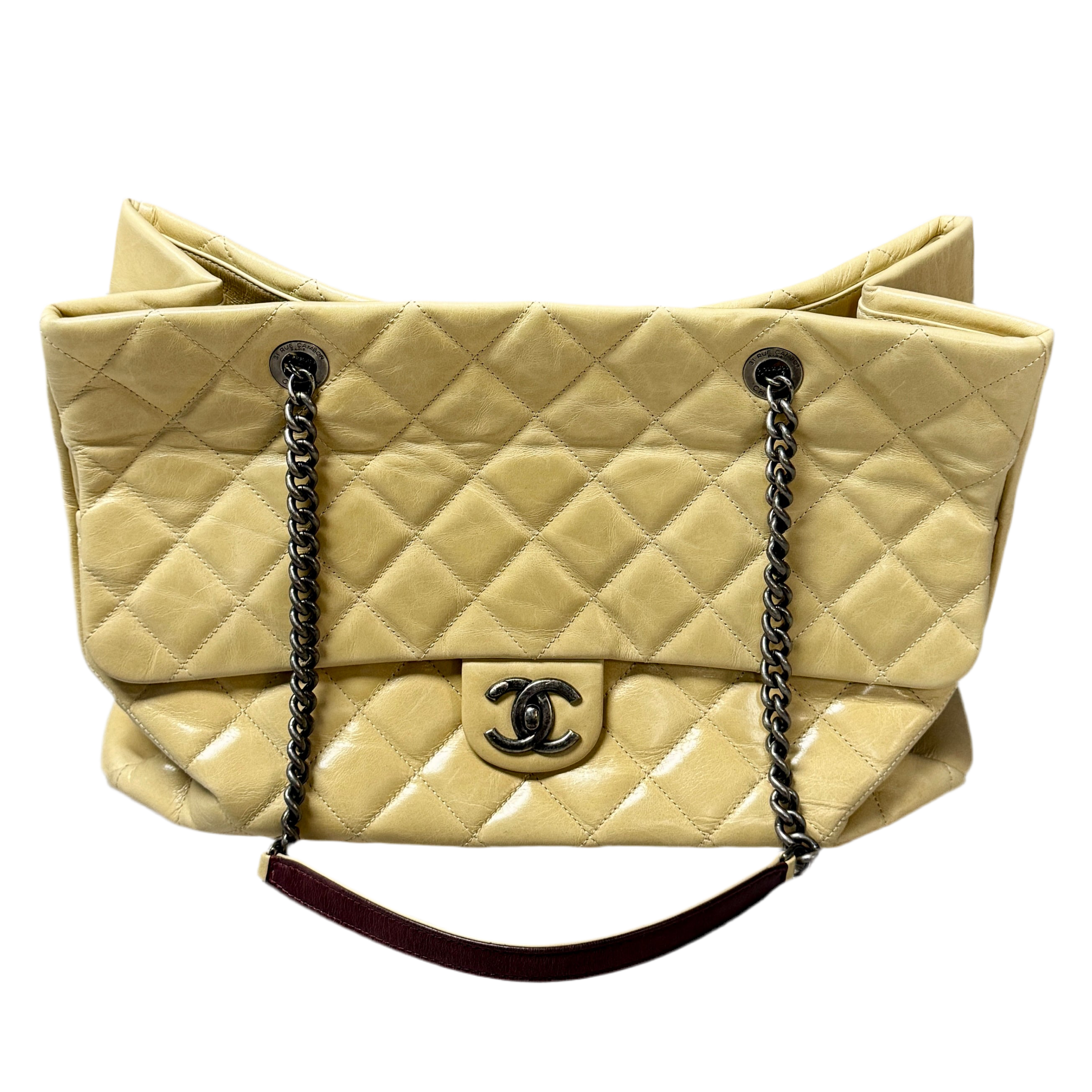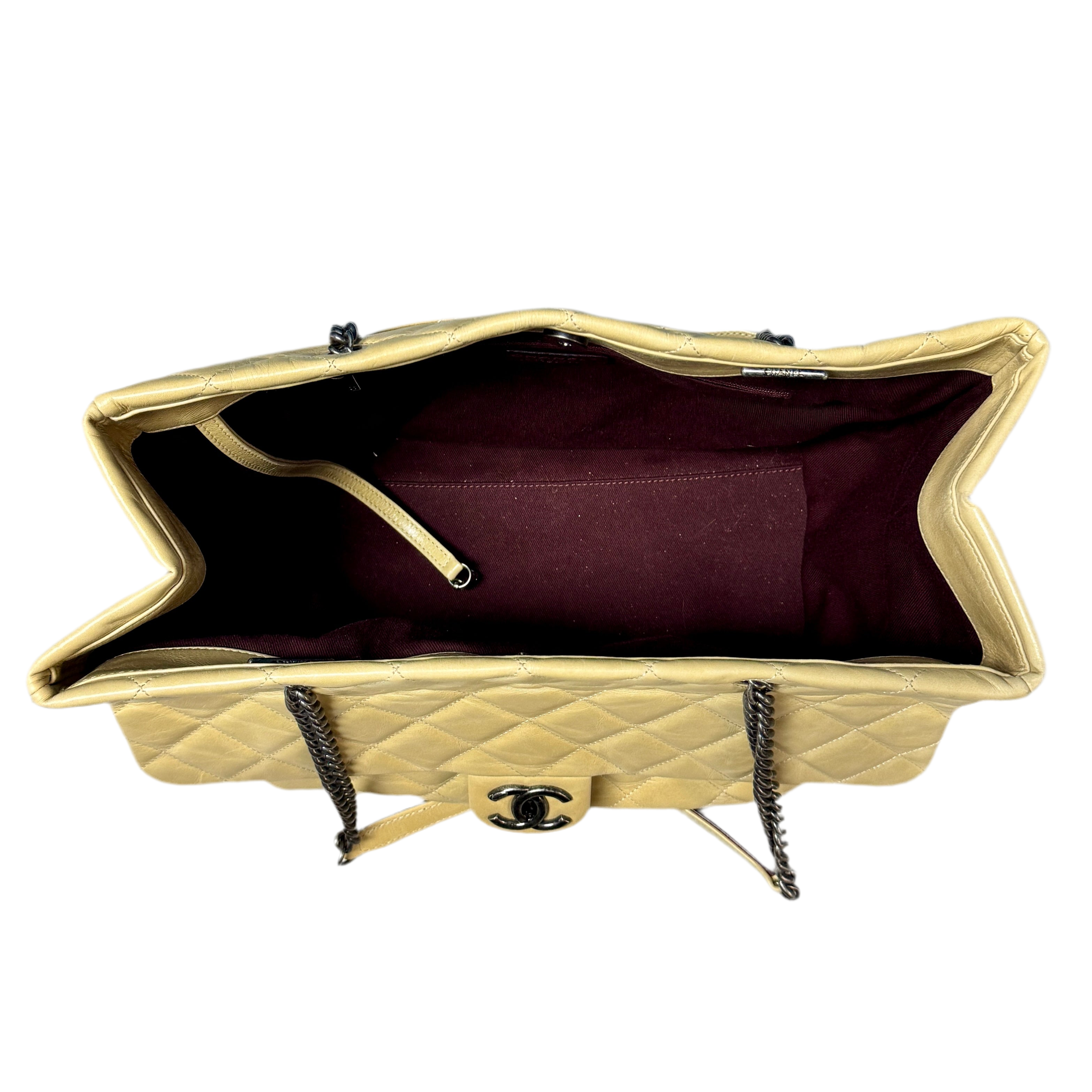 CHANEL Glazed Calfskin Leather Quilted Small Duo Color Tote Bag - Beige