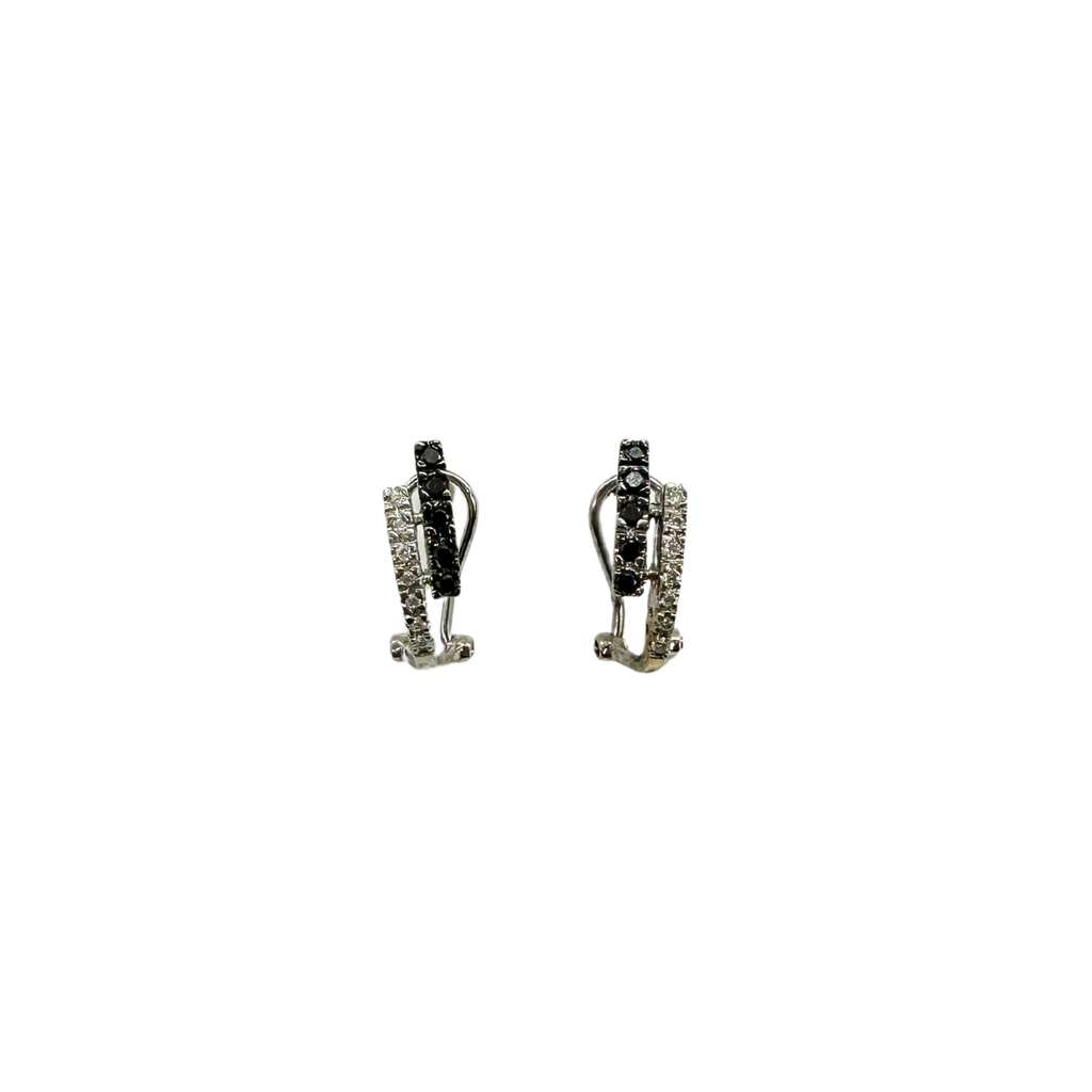 18K White Gold 1/3 CTW Black & White Diamond Two-Row Earrings