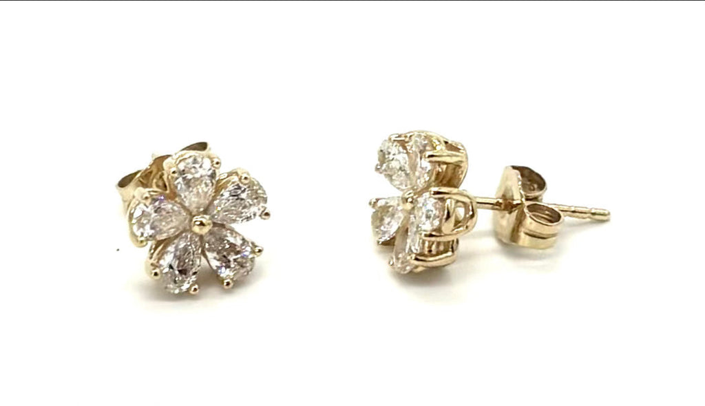 1CTW Diamond Clover Stud Earrings- 14K Yellow & White Gold