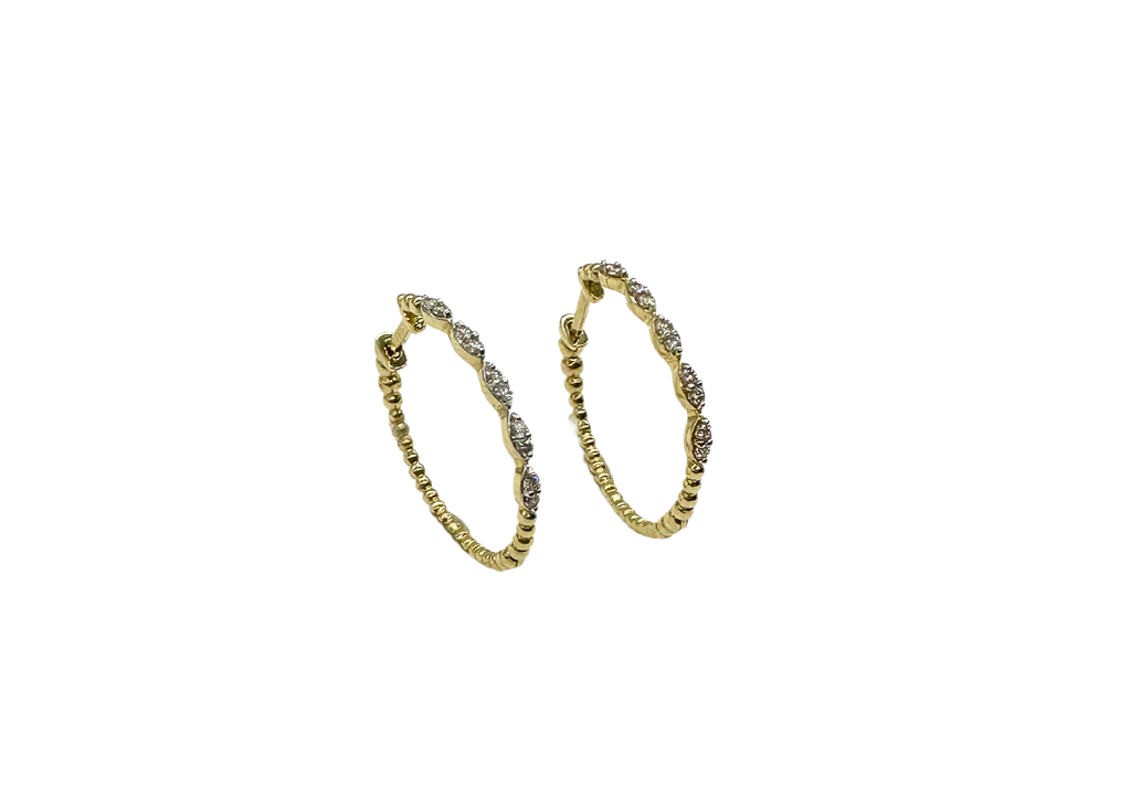 14k Yellow Gold 1/4 CTW Marquise Cluster Hoop Earrings