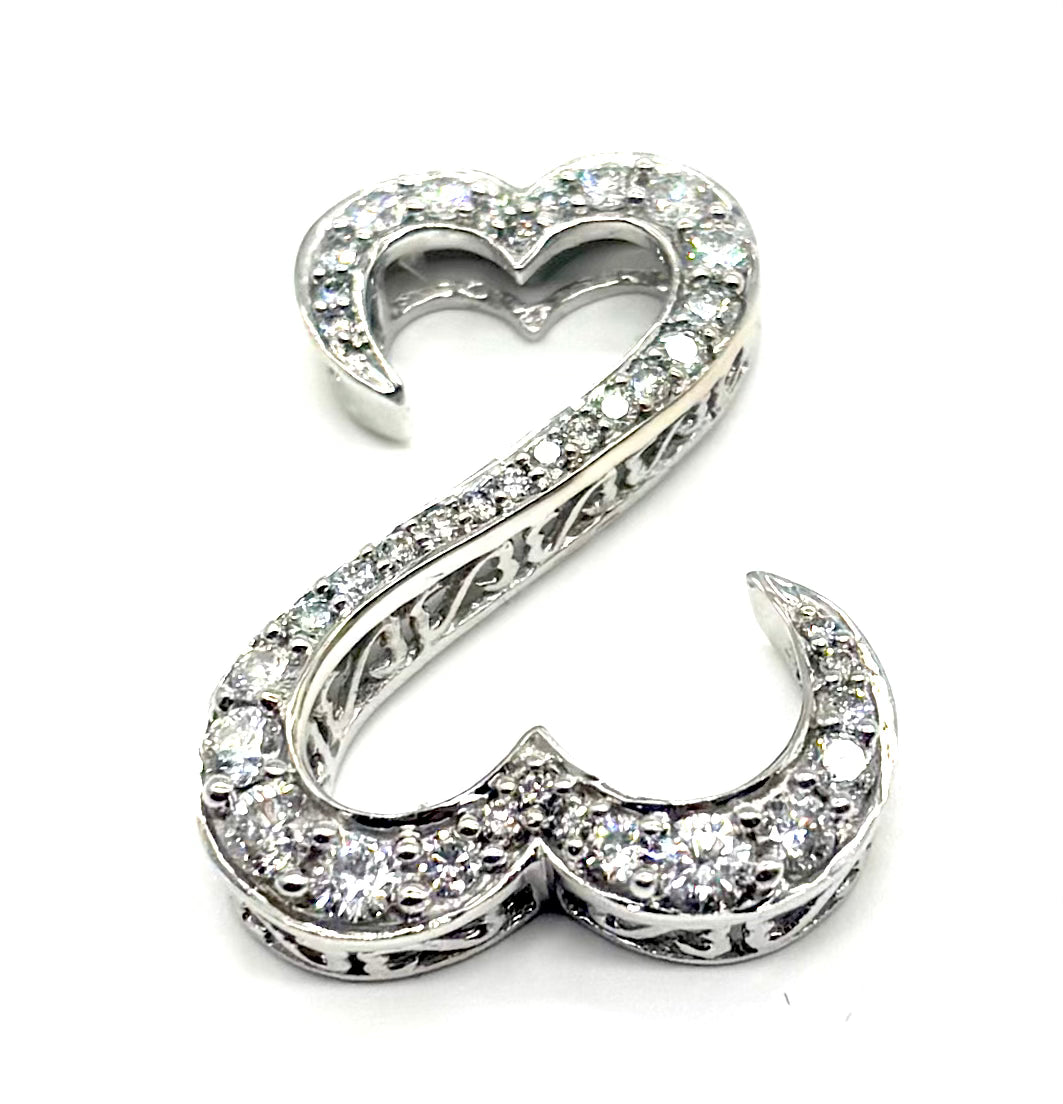 14K White Gold Open Heart Diamond Pendant – 1.25 CTW Diamonds