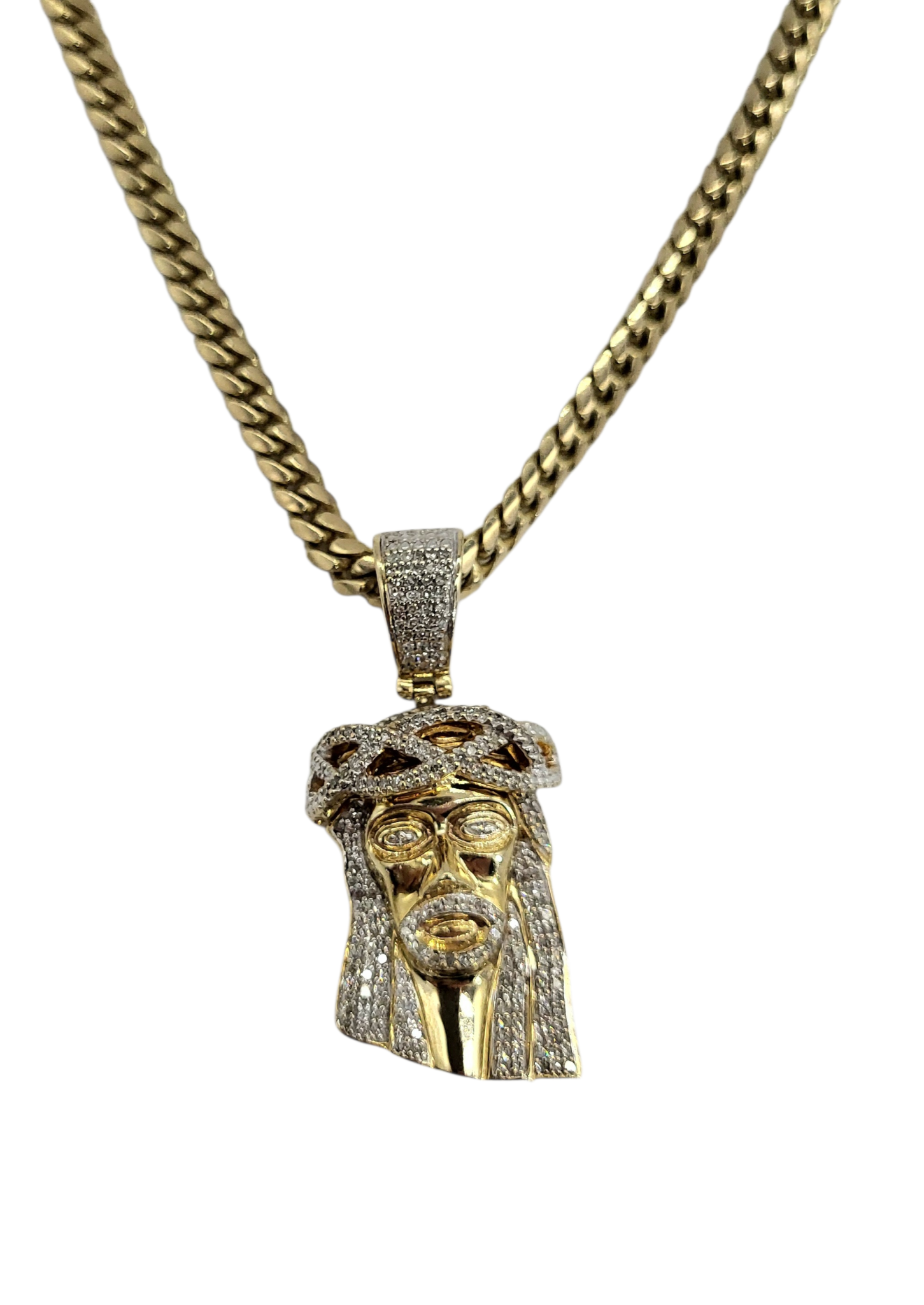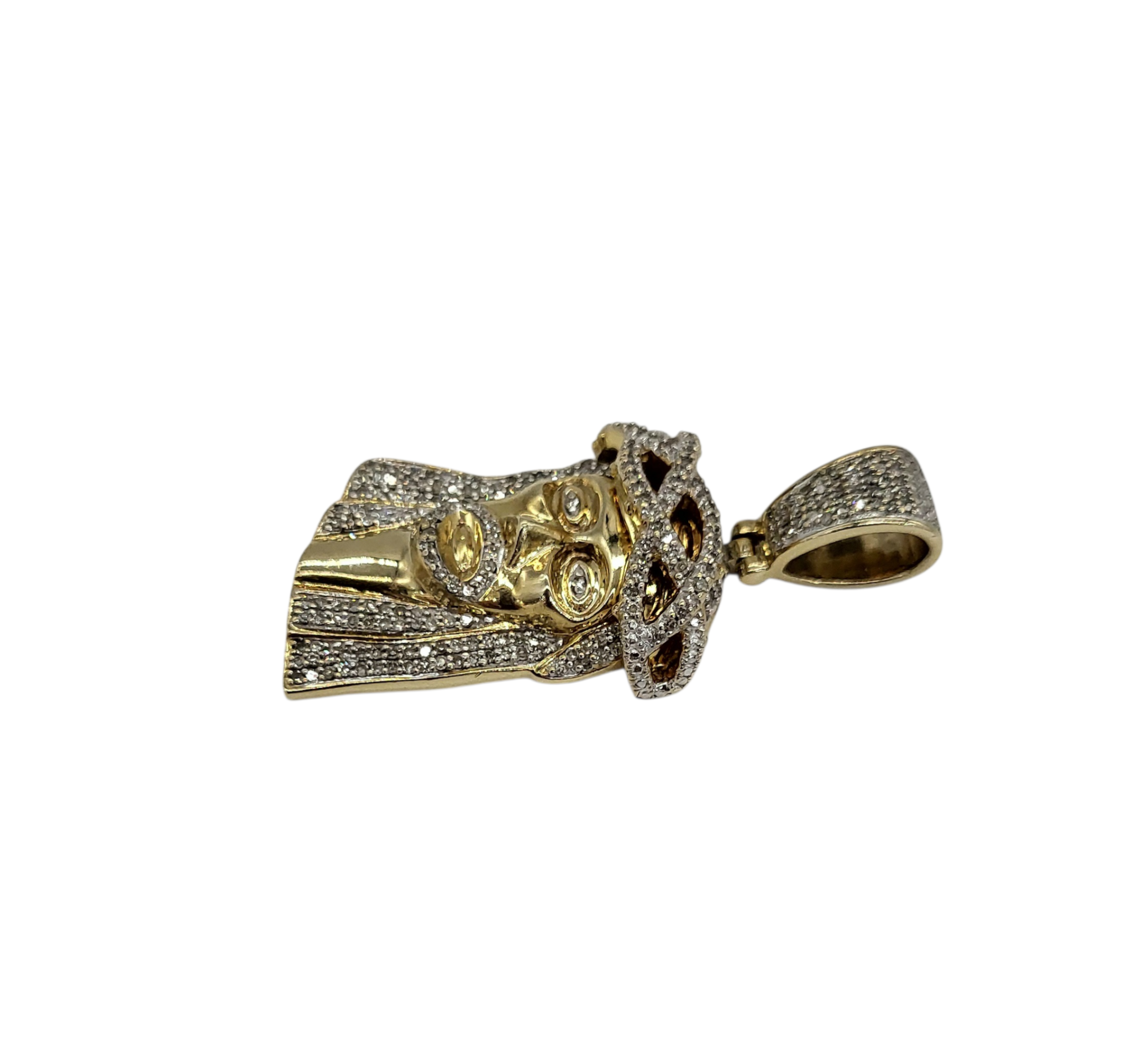 10K Yellow Gold 1 Carat Total Weight Diamond Jesus Head Pendant