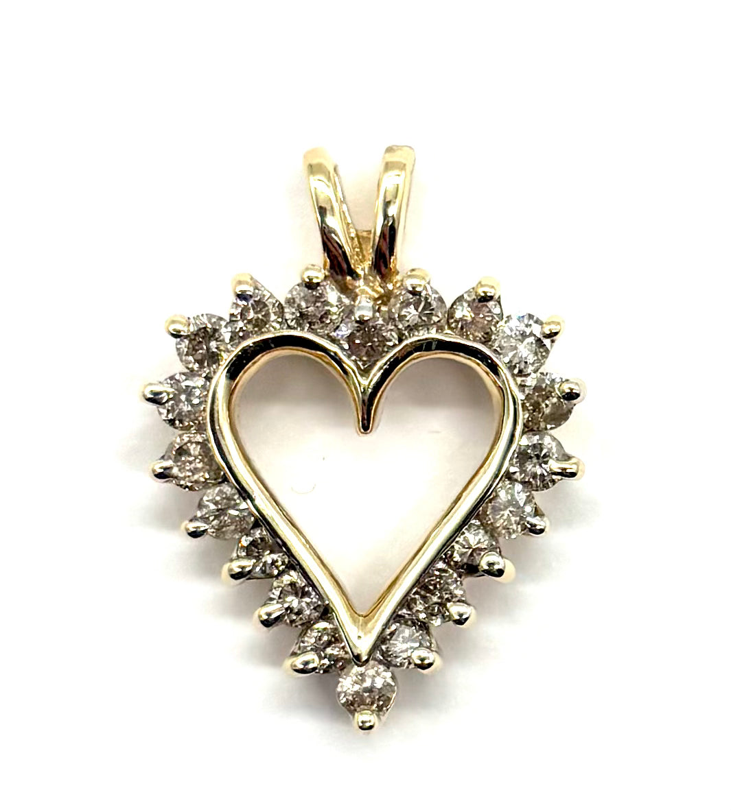 Elegant 10K Yellow Gold Heart Pendant | 1CTW Natural Diamonds | Pre-Owned