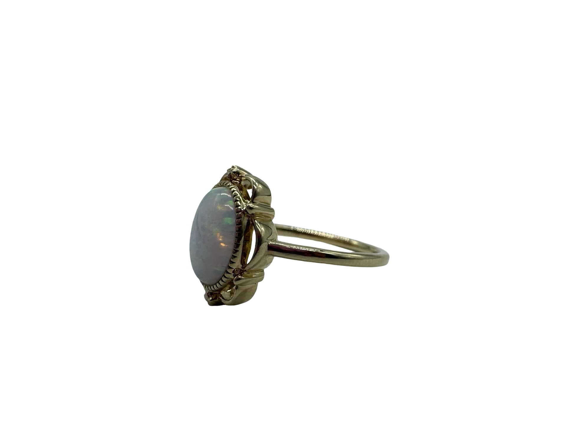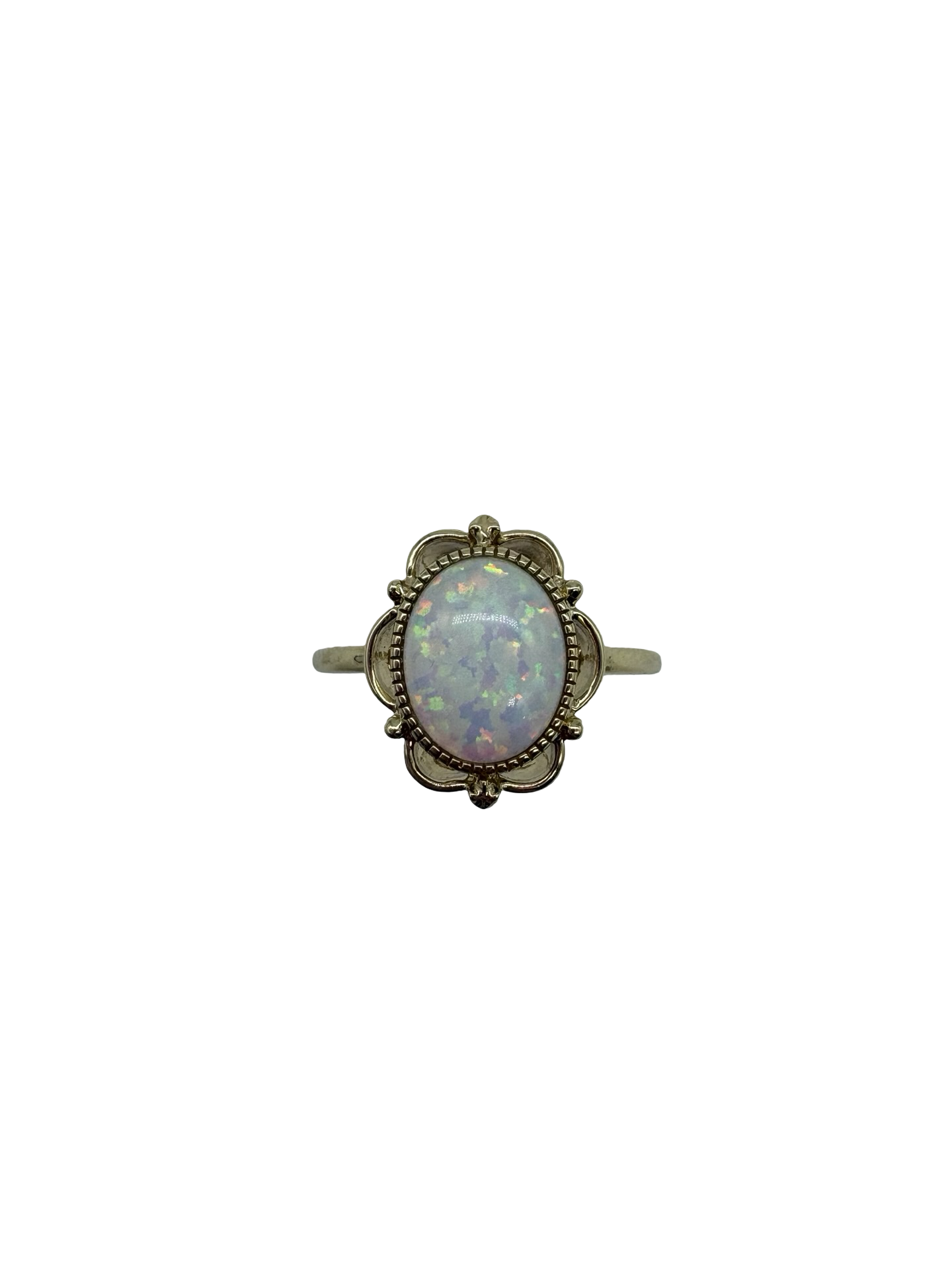 10K Yellow Gold Opal Squiggle Framed Ring