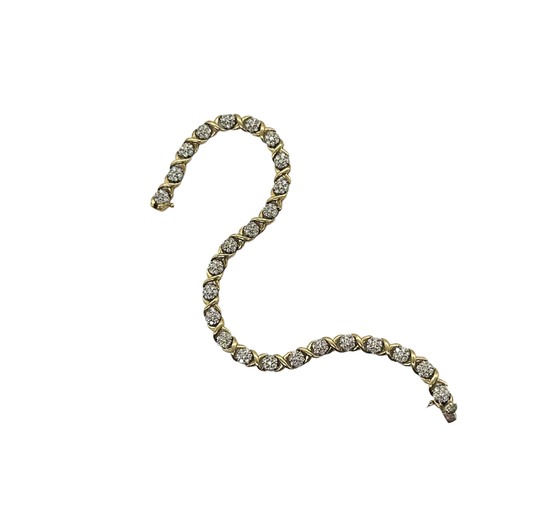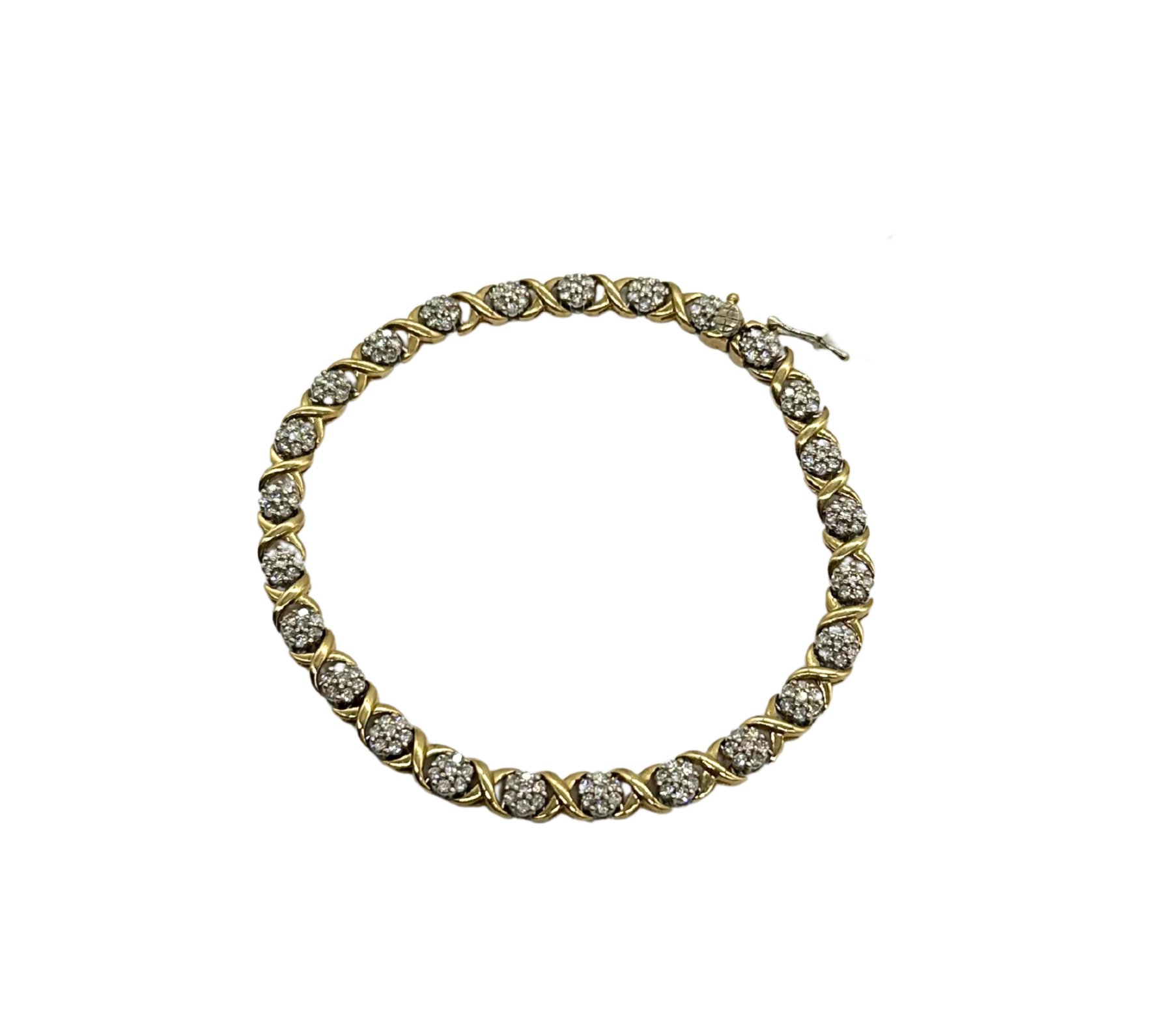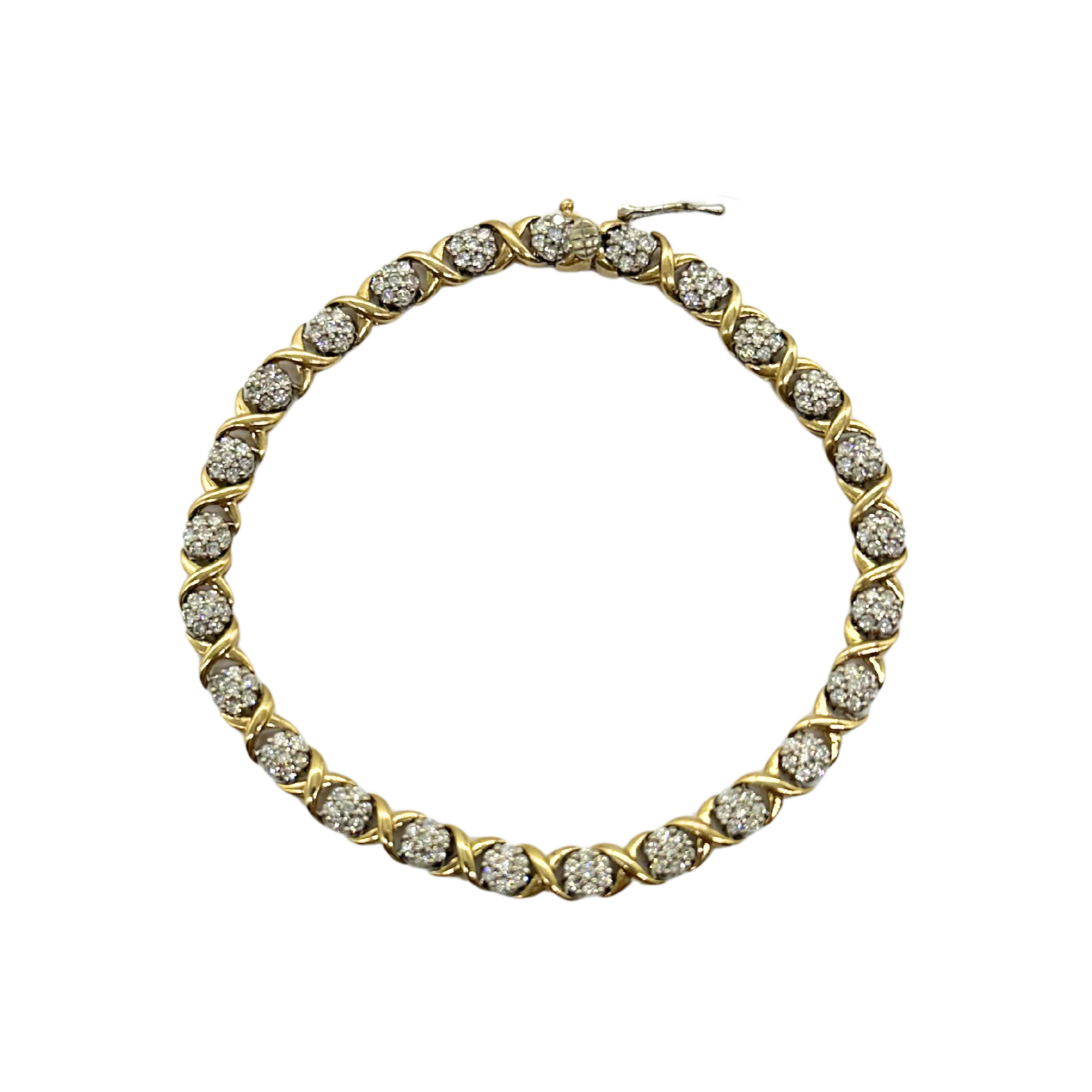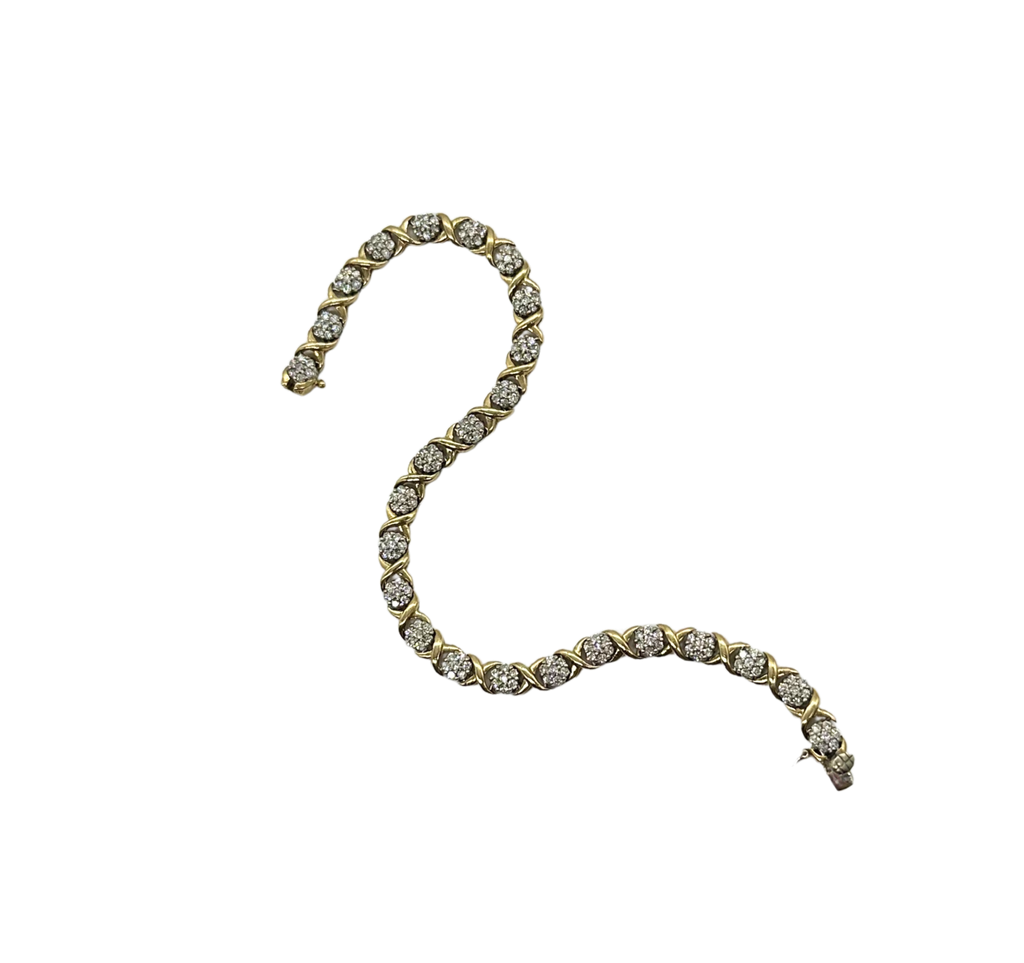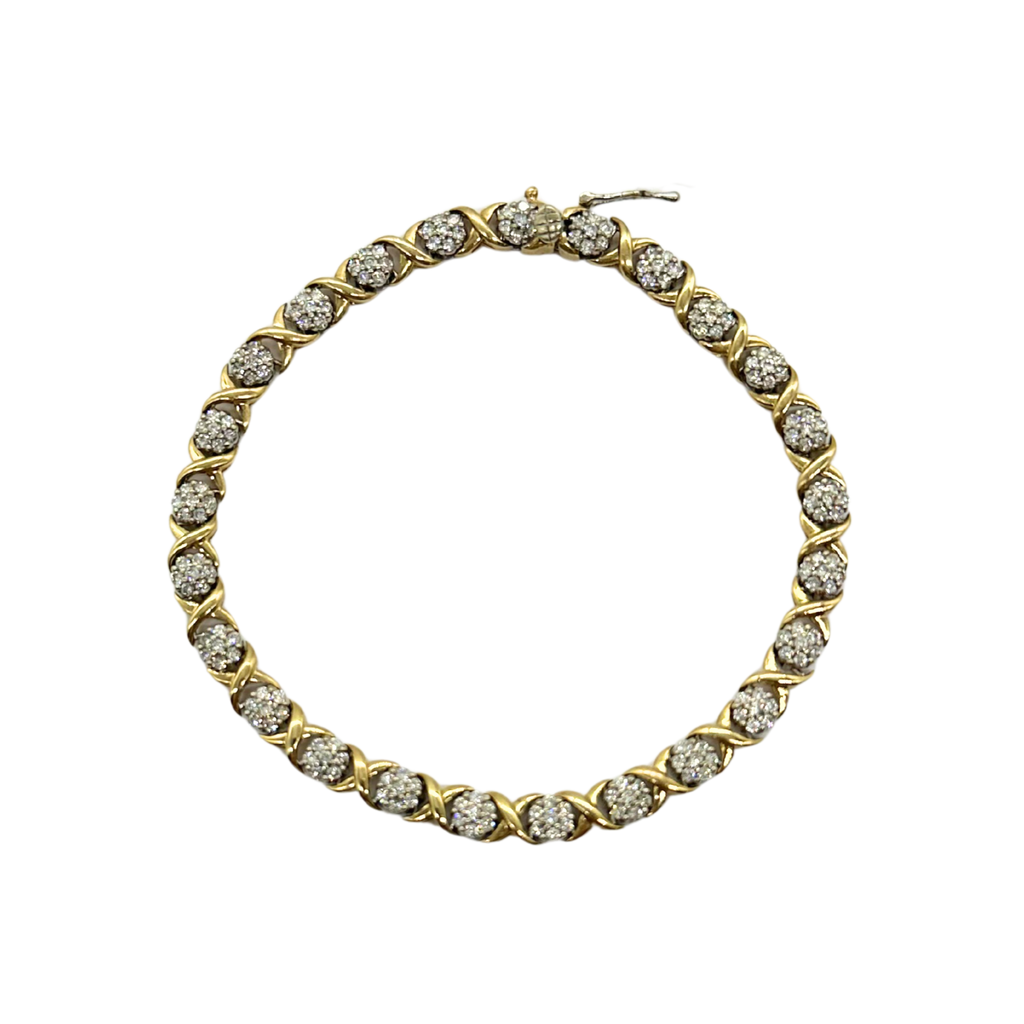 10k Yellow and White Gold 3.5 ctw Diamond Cluster X Link Bracelet