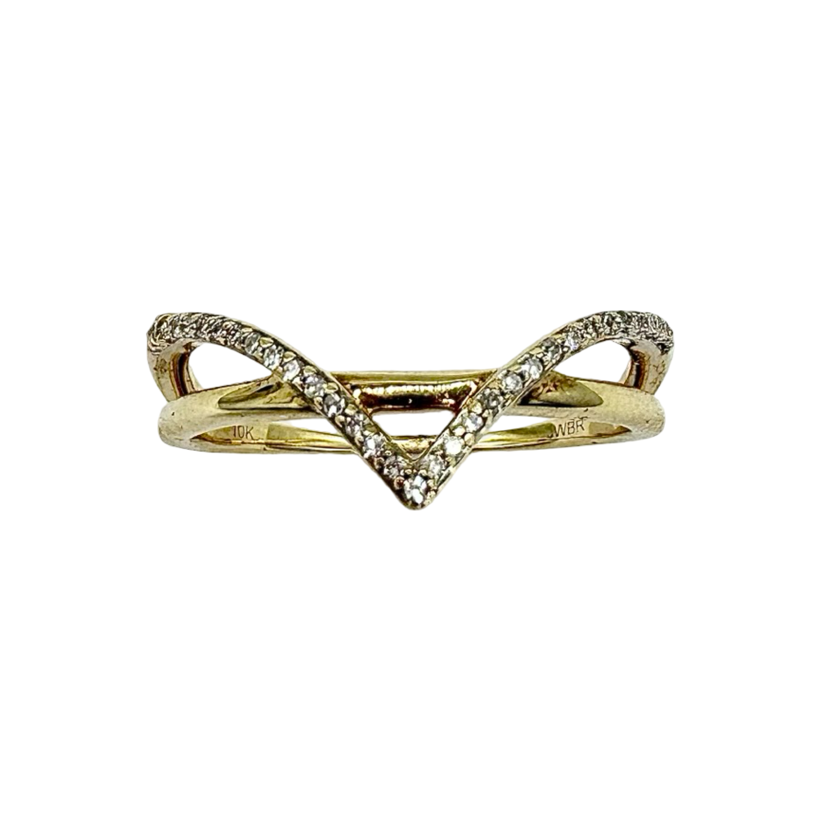 10K Yellow Gold 1/4CTW Diamond Chevron Crossover Ring