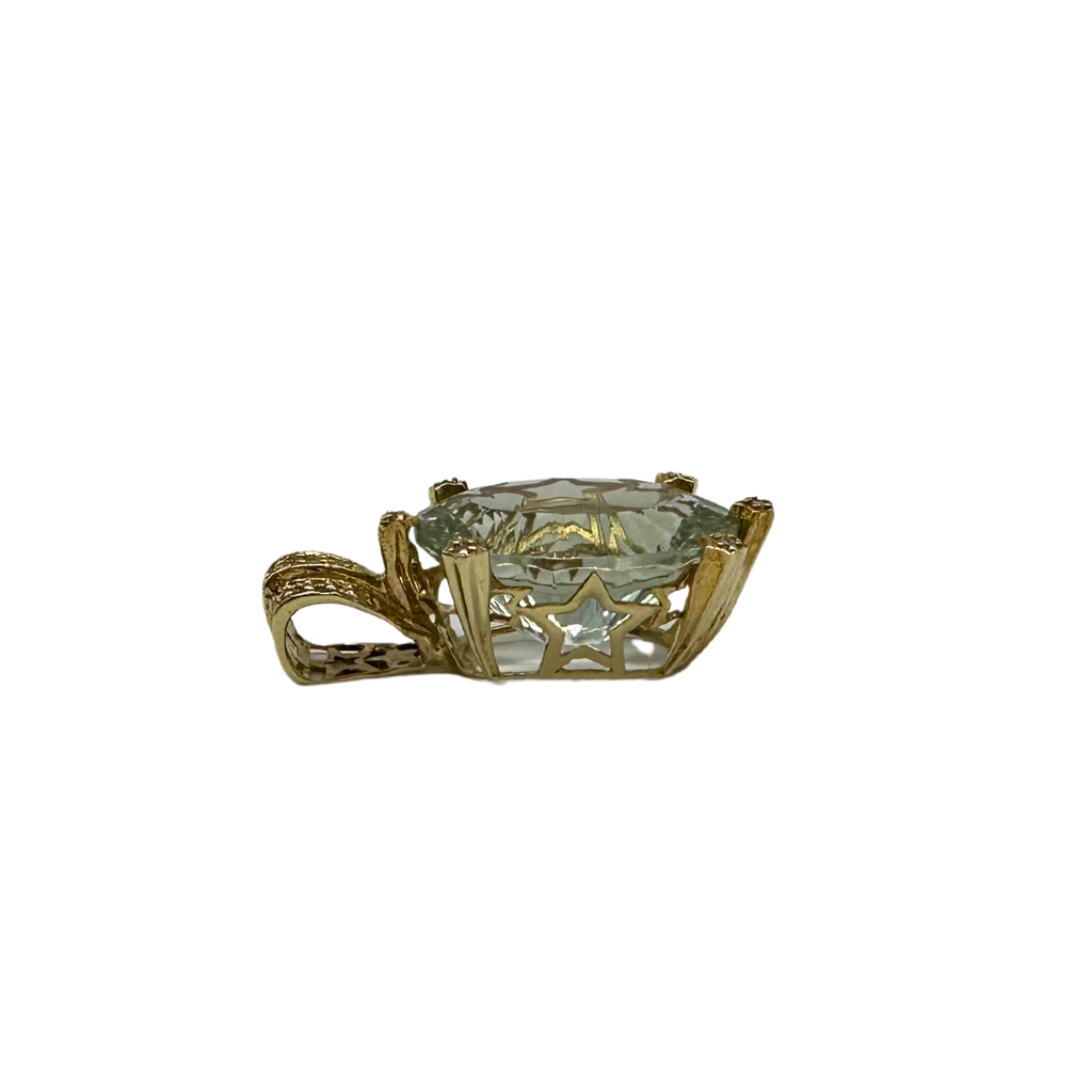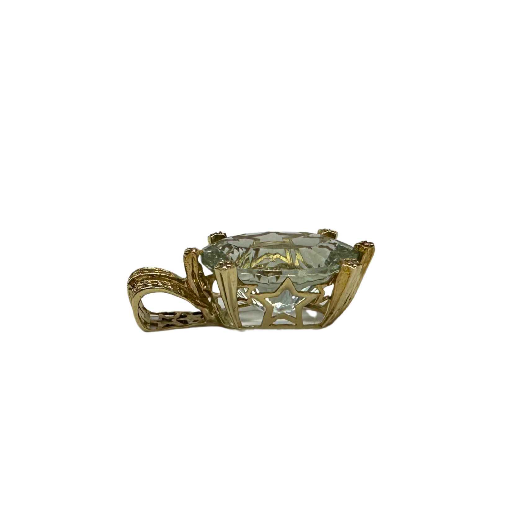 10k Yellow Gold Mint Quartz Oval Pendant – 6.3 Grams