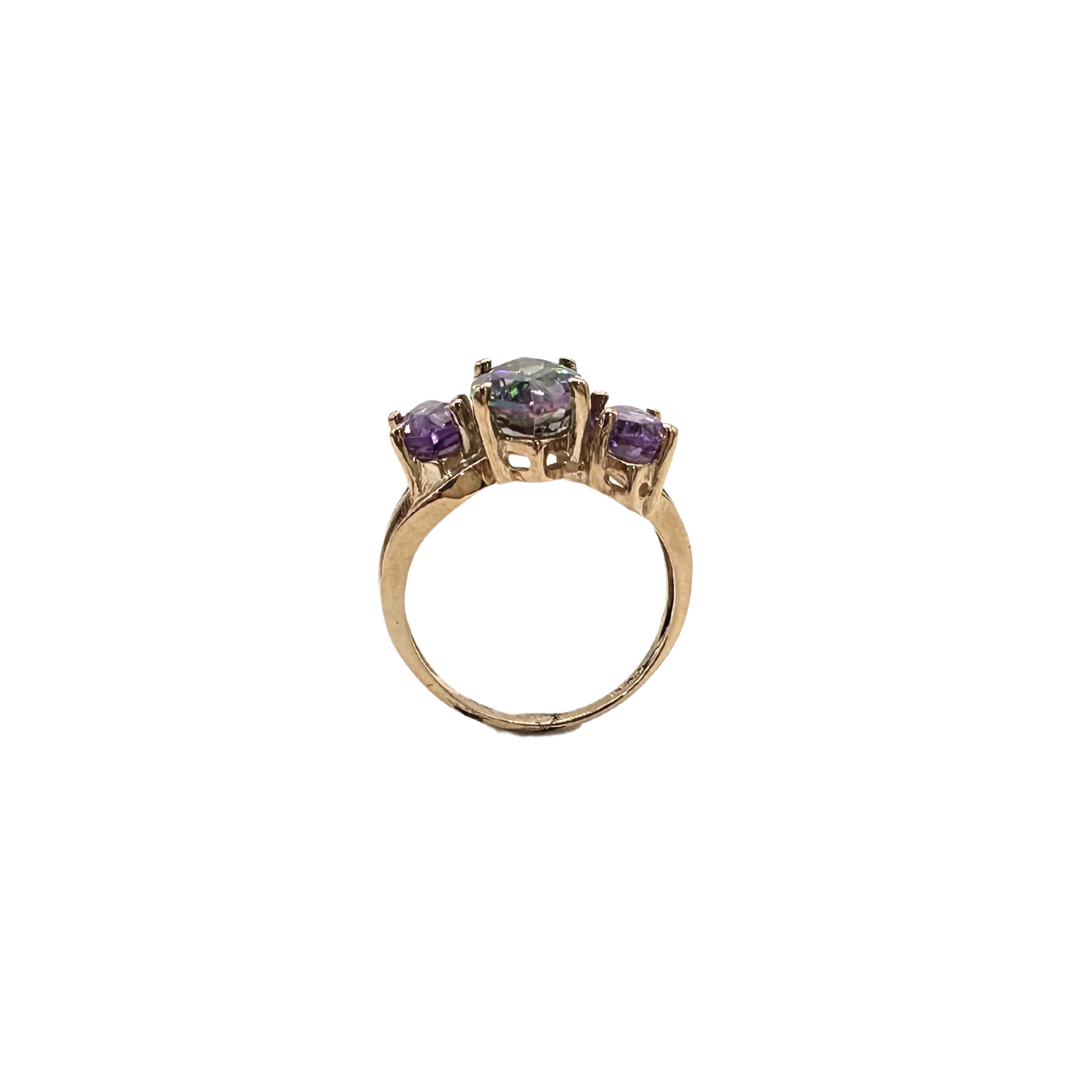 10k Yellow Gold Mystic Topaz and Amethyst Diagonal Set Split Shank Ring