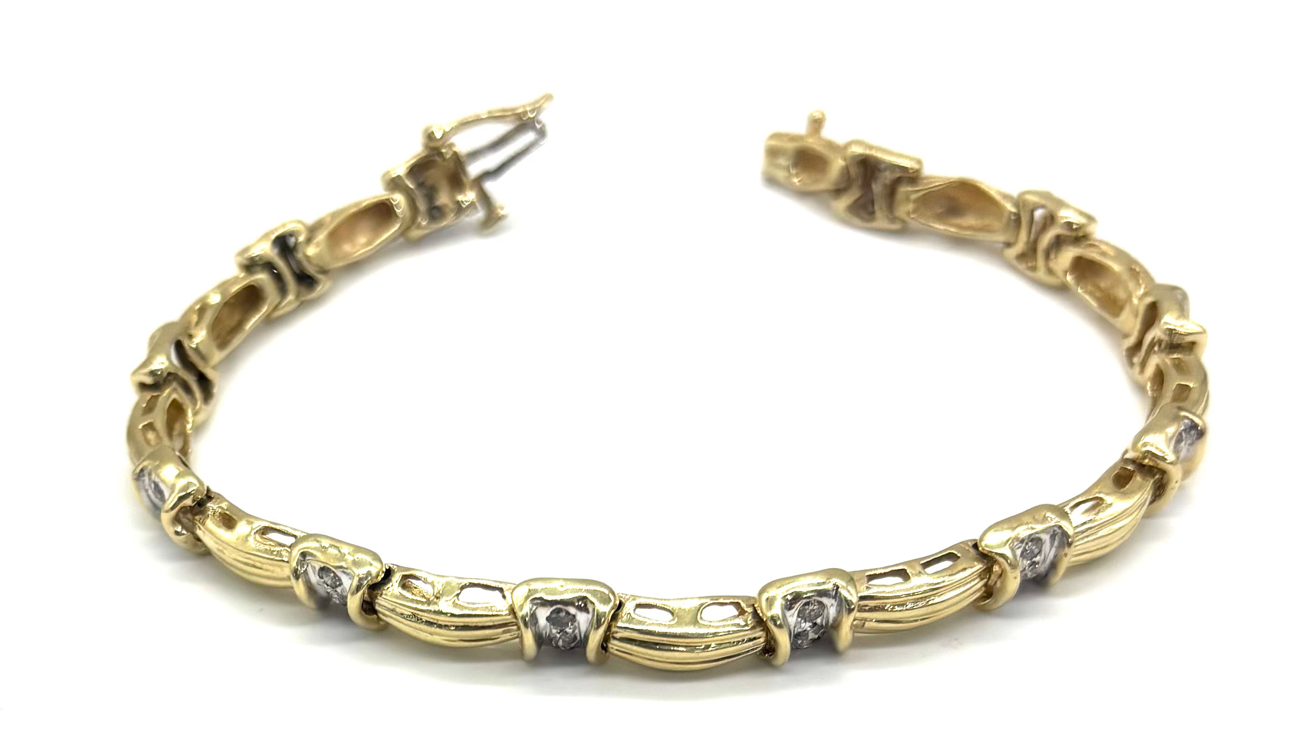 This bracelet features genuine natural diamonds set in warm 10K yellow gold, creating a beautiful balance of luxury and everyday wearability. With a solid 17.2 gram weight, it has a substantial feel while maintaining a refined and elegant look on the wrist.