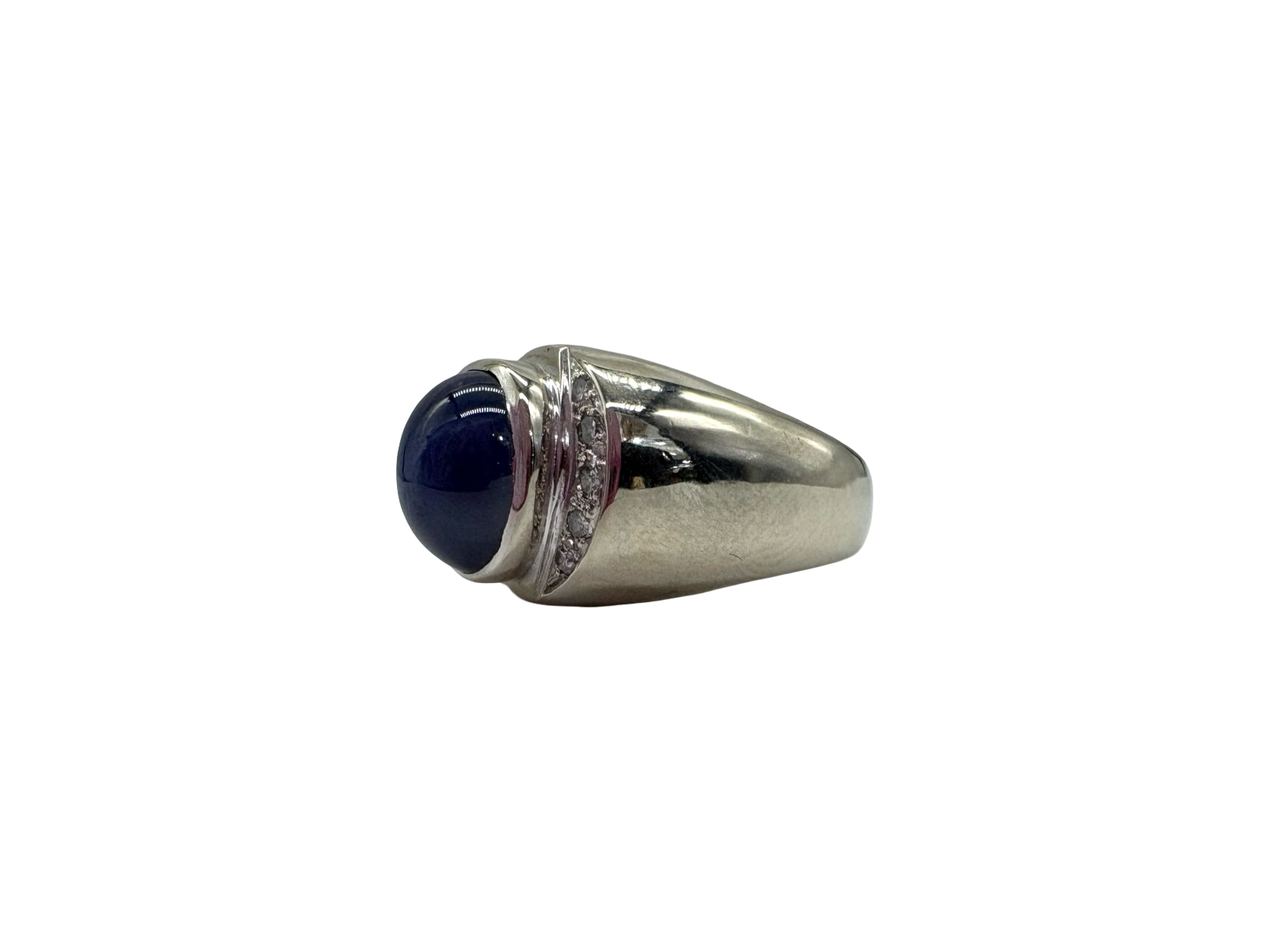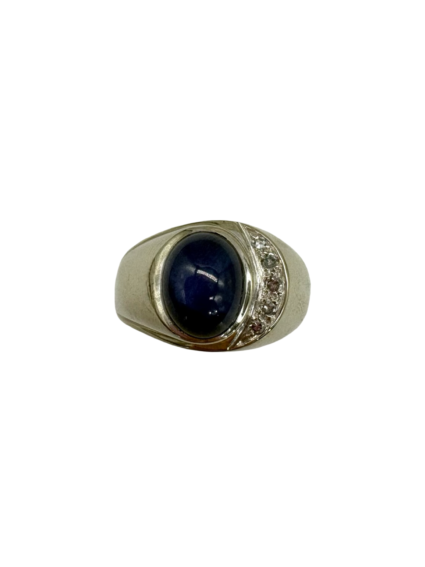 14K White Gold 1/10CTW Diamond Star Sapphire Swirl Ring