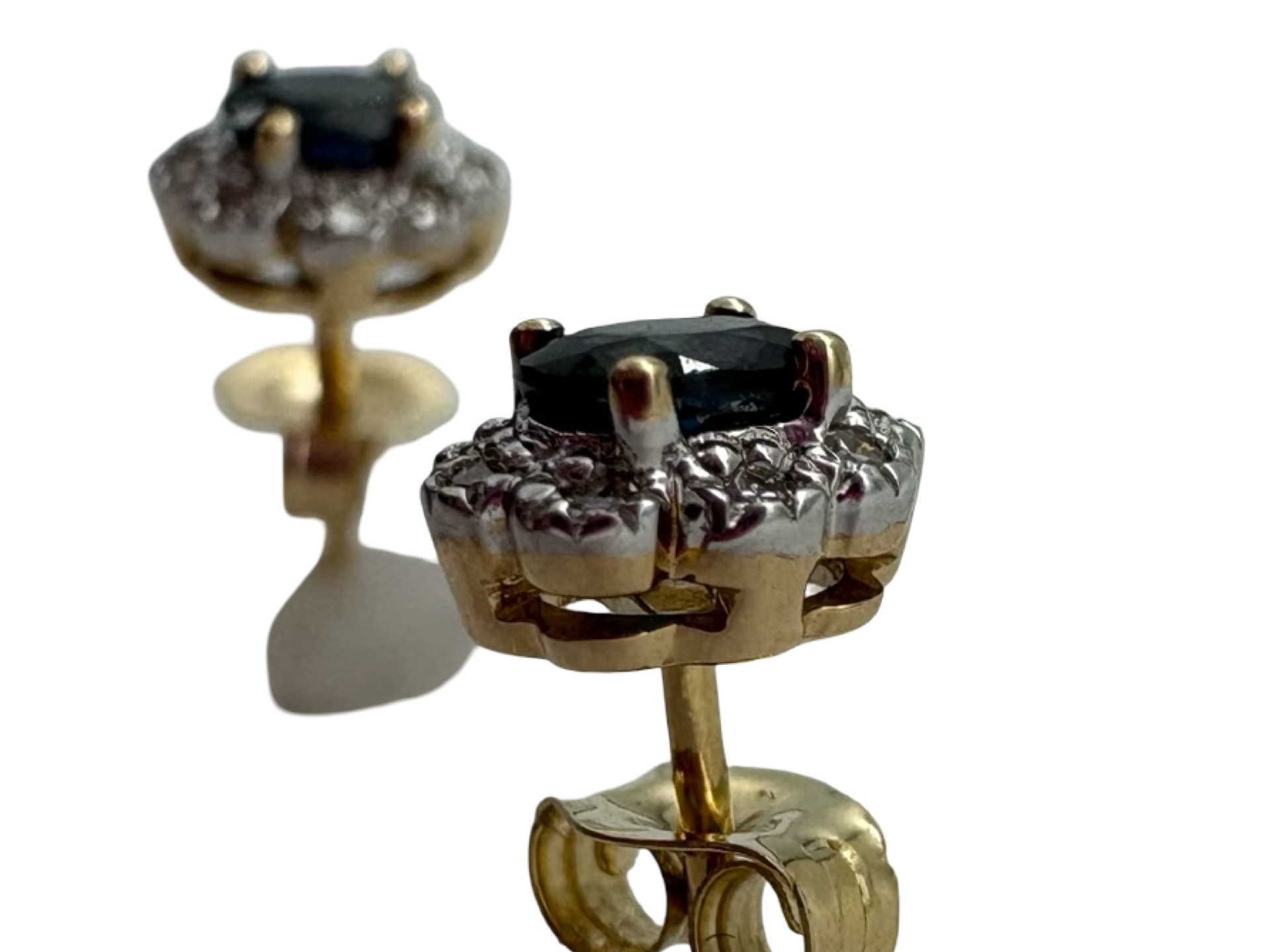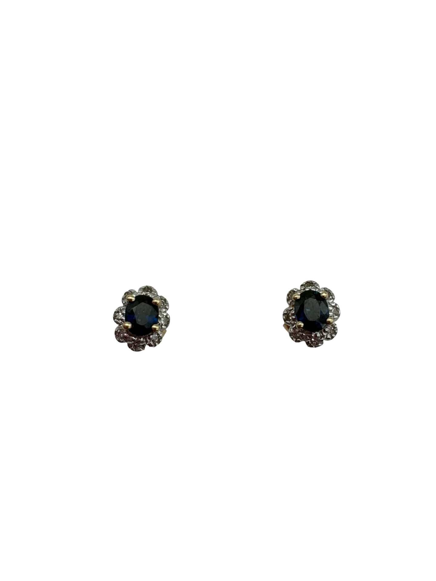 14K Yellow/White Gold .15CTW Diamond Sapphire Flower Stud Earrings