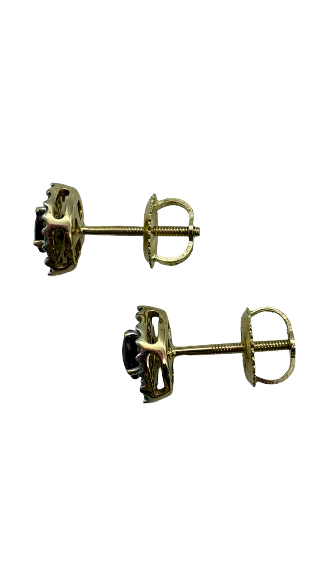 14K Yellow Gold .25CTW Diamond and Ruby Screwback Stud Earrings