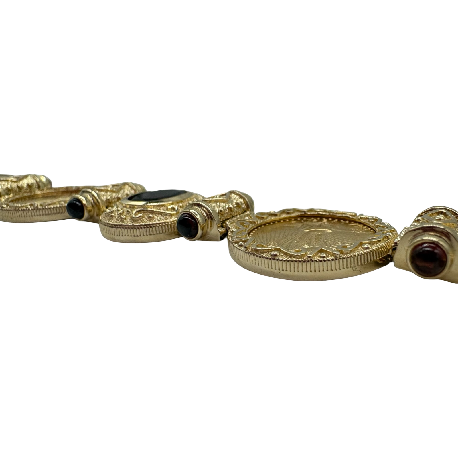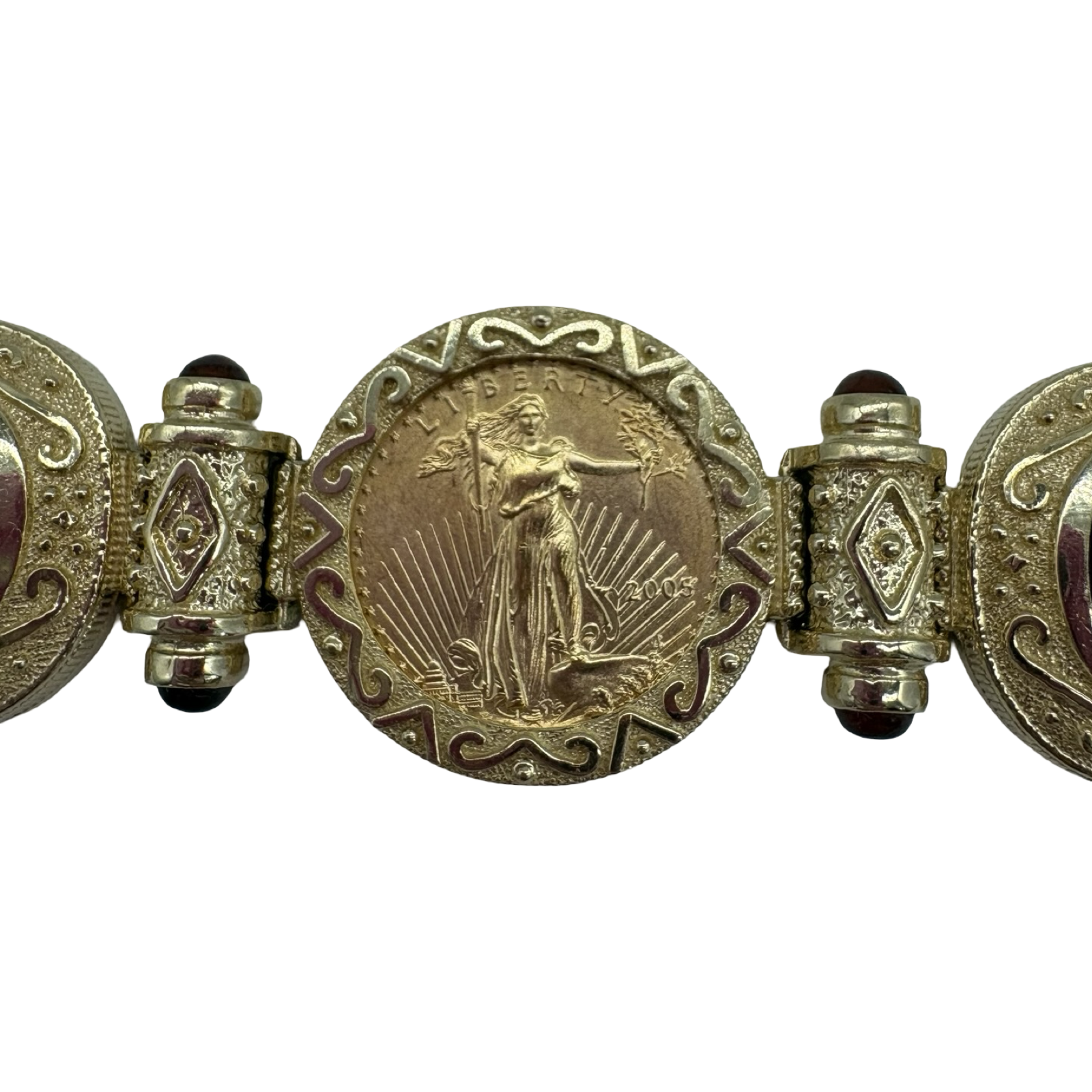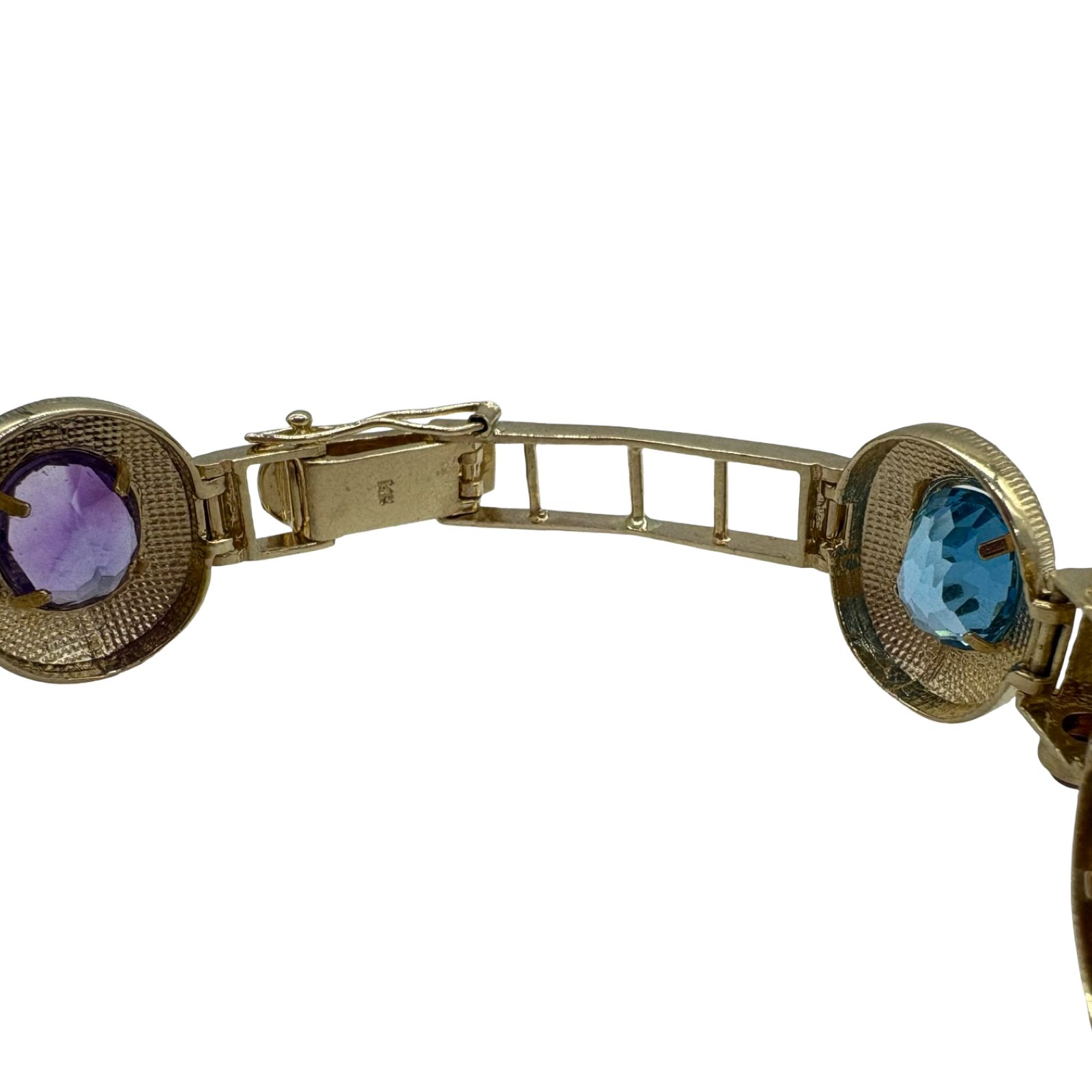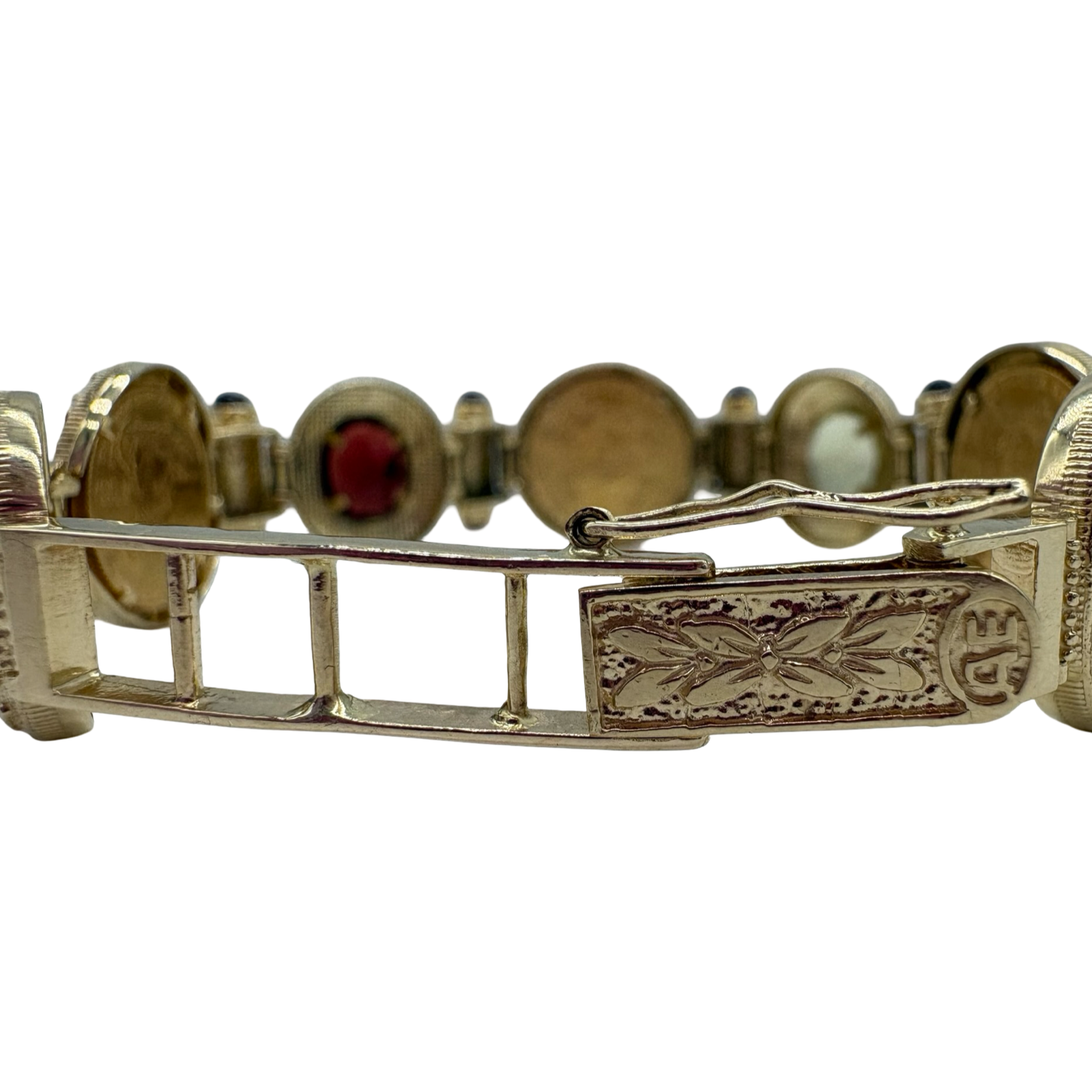 14K Yellow Gold Bezel Gold Coin Bracelet with Multi Color Stones