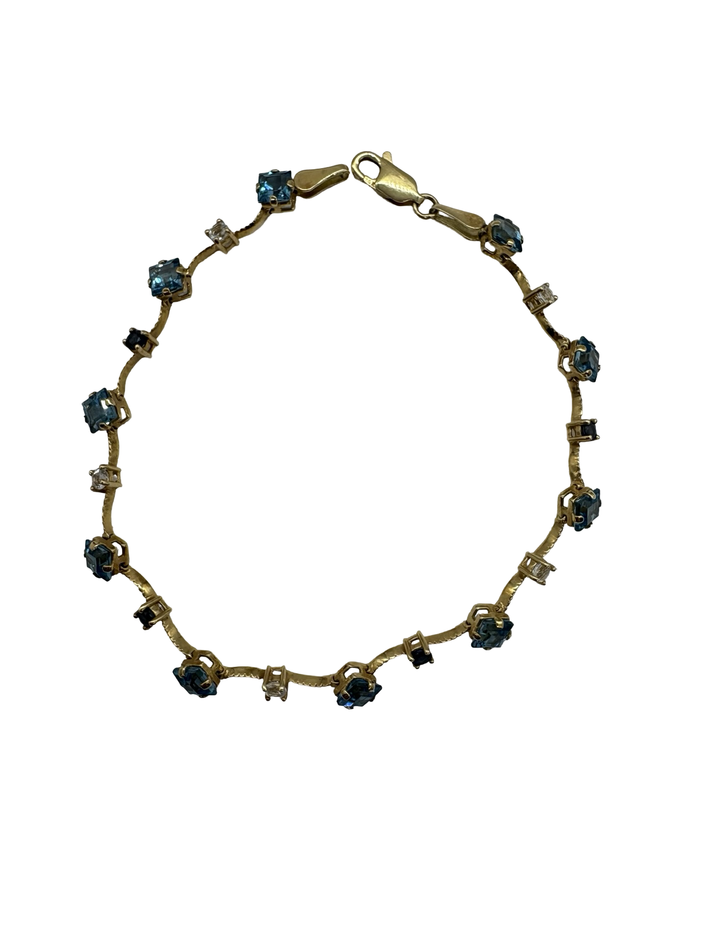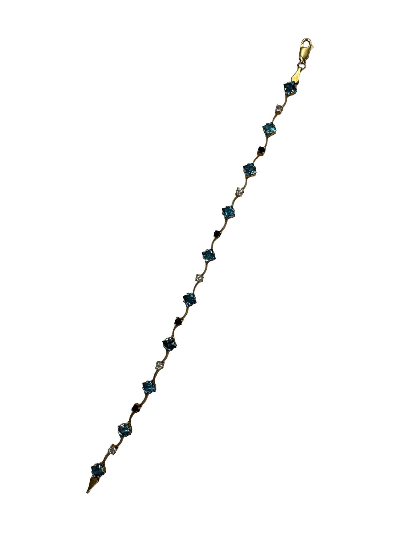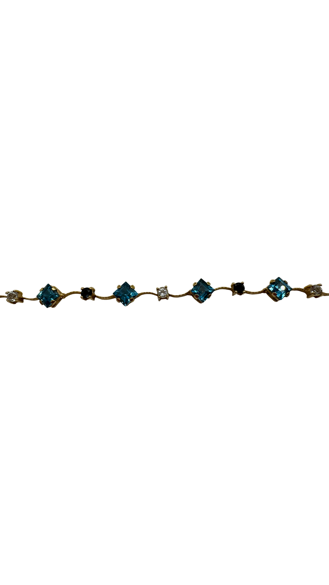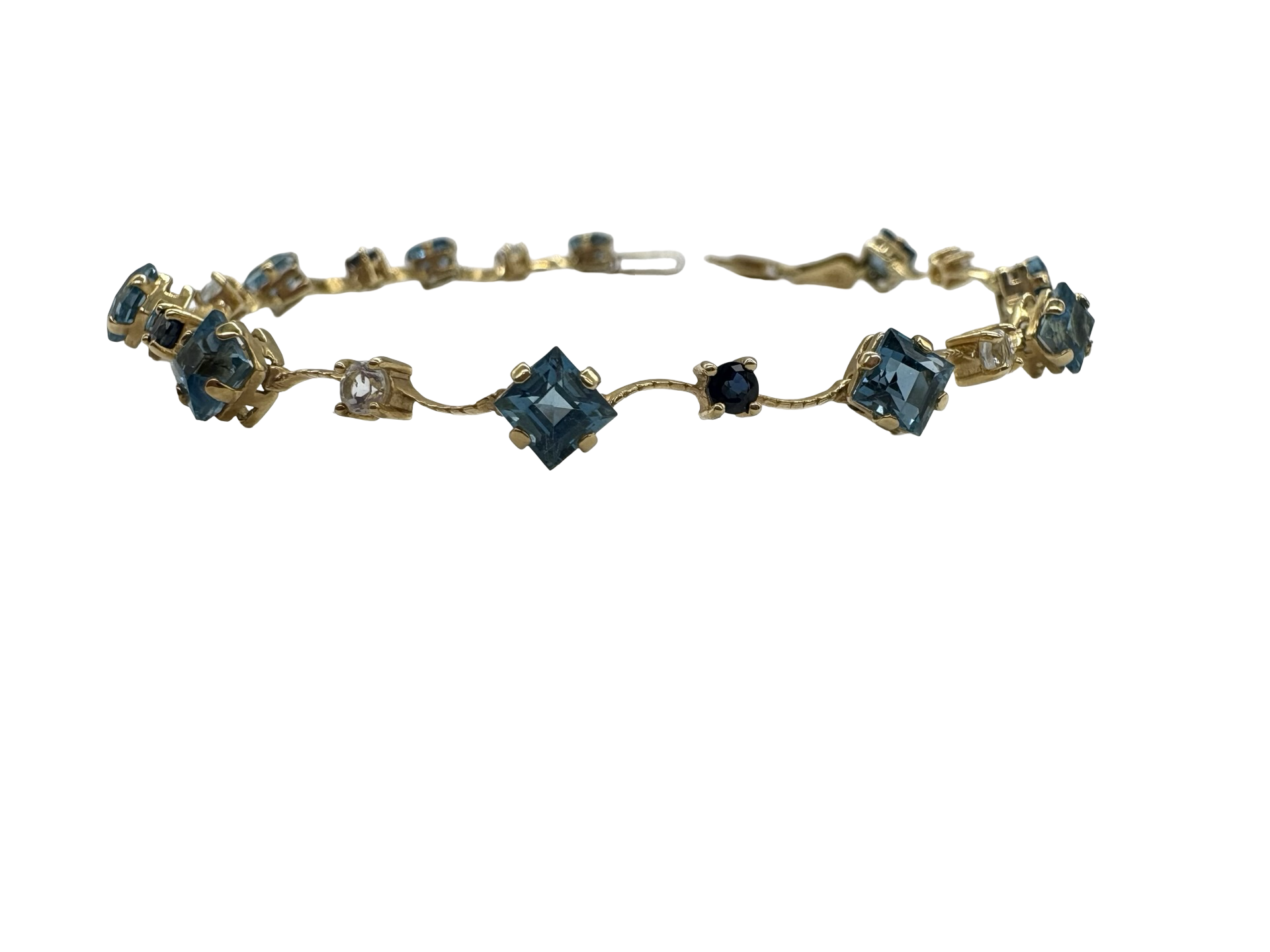 14K Blue Topaz Aquamarine Sapphire Fancy Bracelet