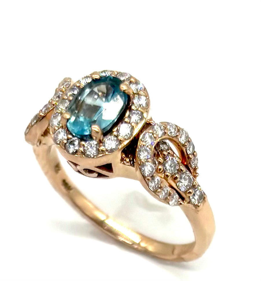 14k Rose Gold Blue Topaz & Diamond Ring