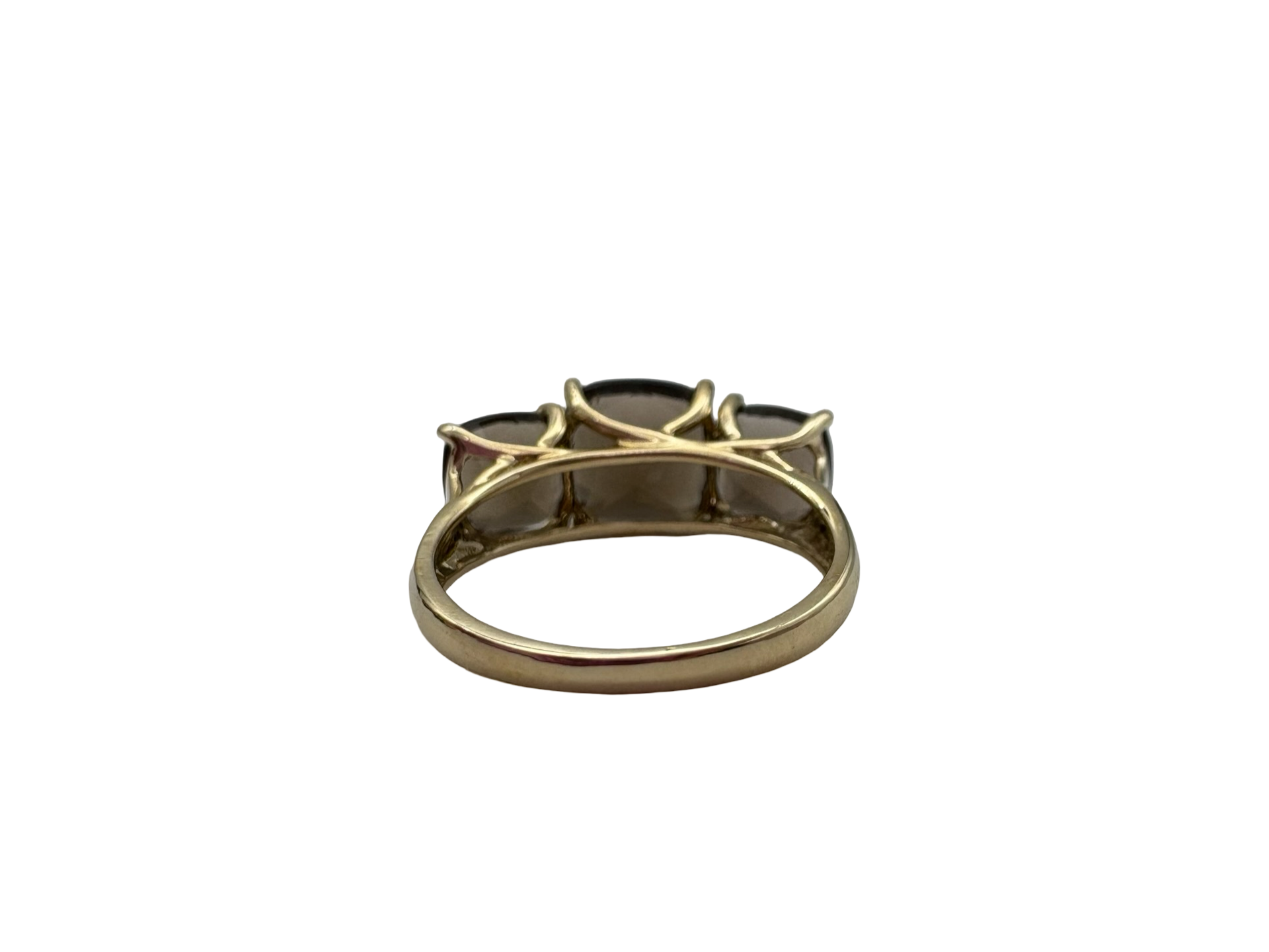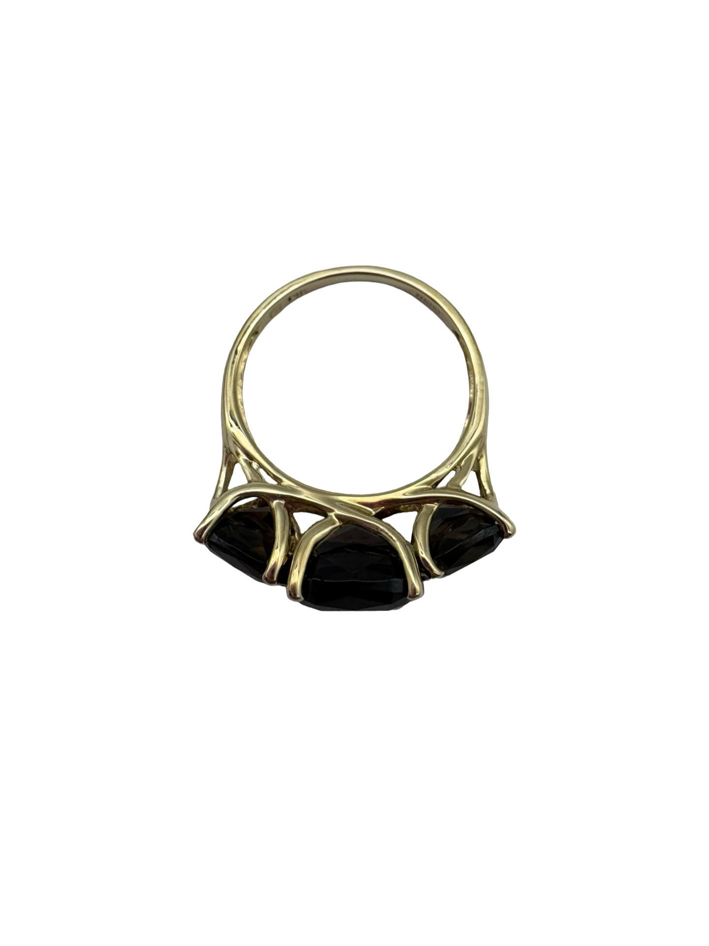 14K Yellow Gold Smokey Topaz 3 Inline Trellis Ring