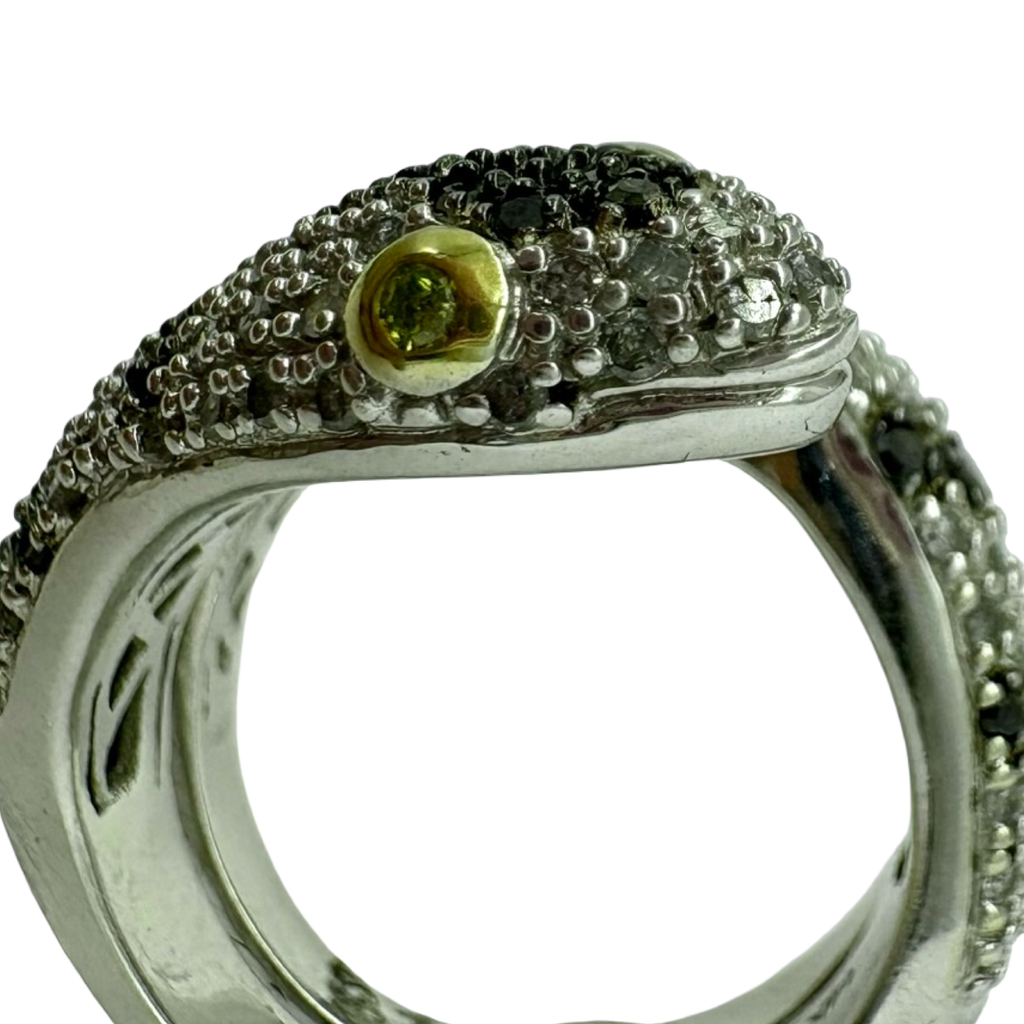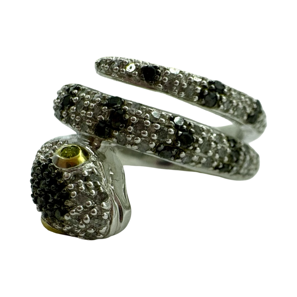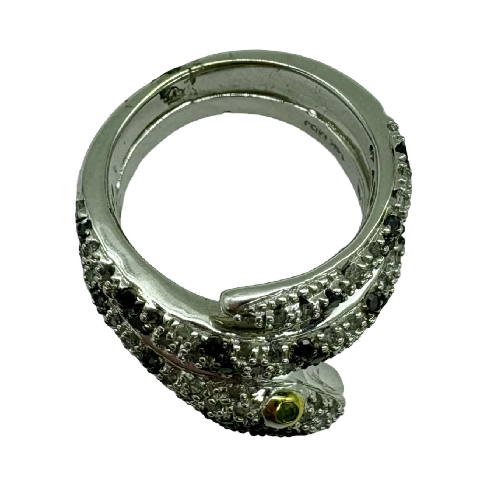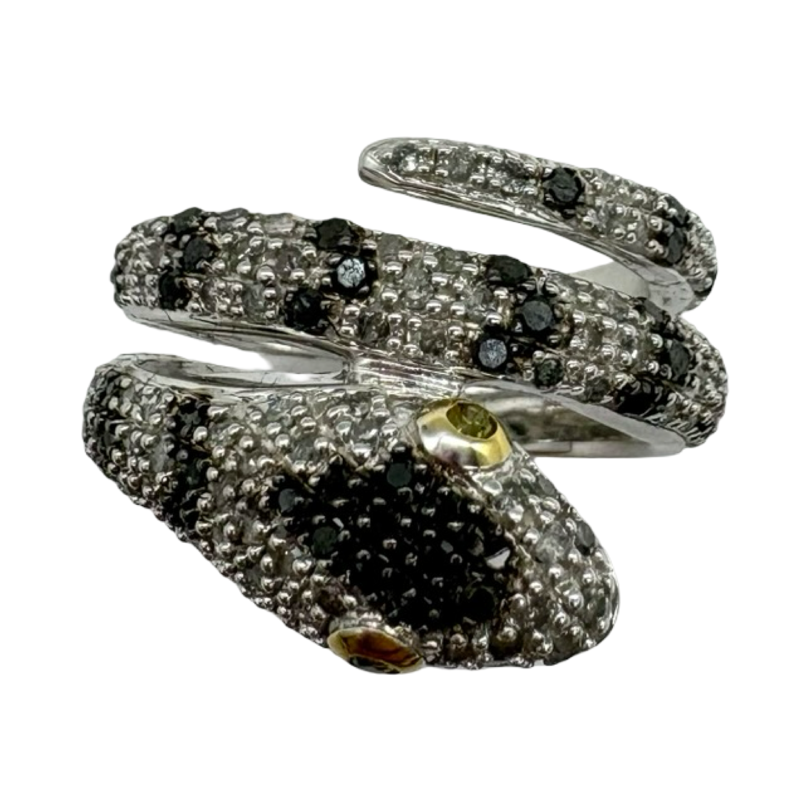 14K White Gold 1.25CTW Black and White Diamond Snake Ring