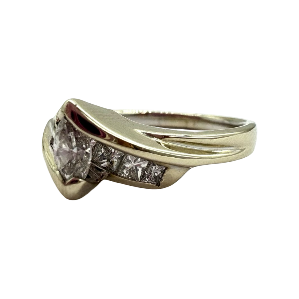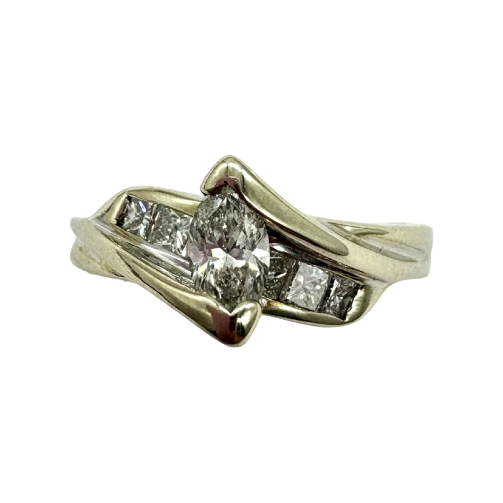 14K White Gold 1/2CTW Diamond Marquise Channel Bypass Ring