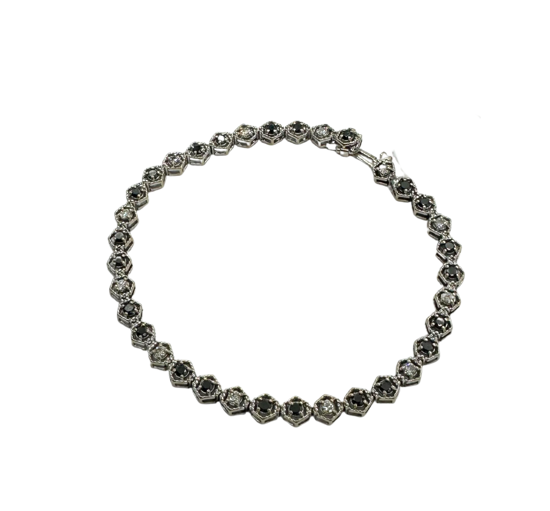 14k White Gold 2 ctw Black and White Diamond Bracelet
