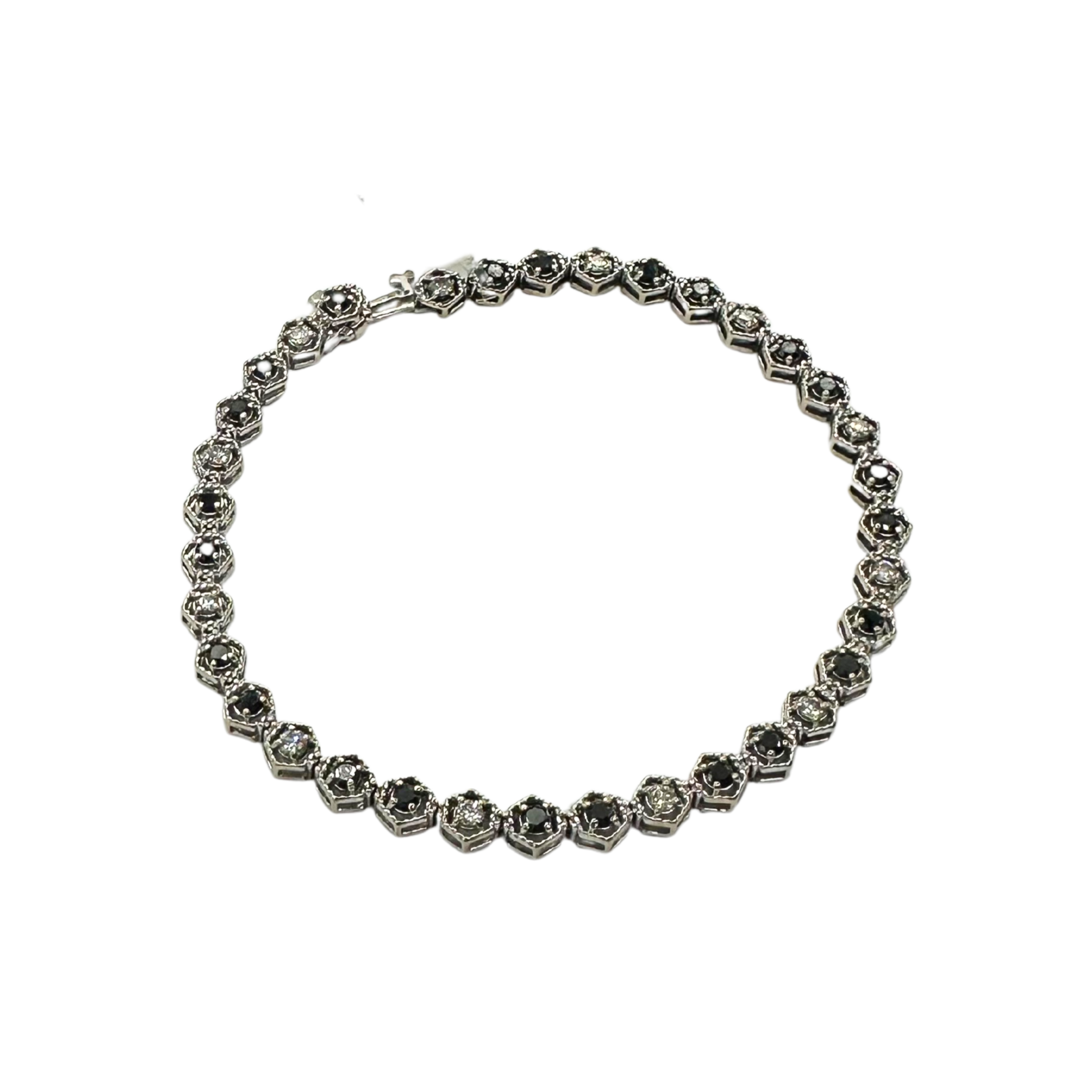 This striking 14k white gold bracelet features a stunning 2 ctw combination of black and white diamonds in a unique alternating design.