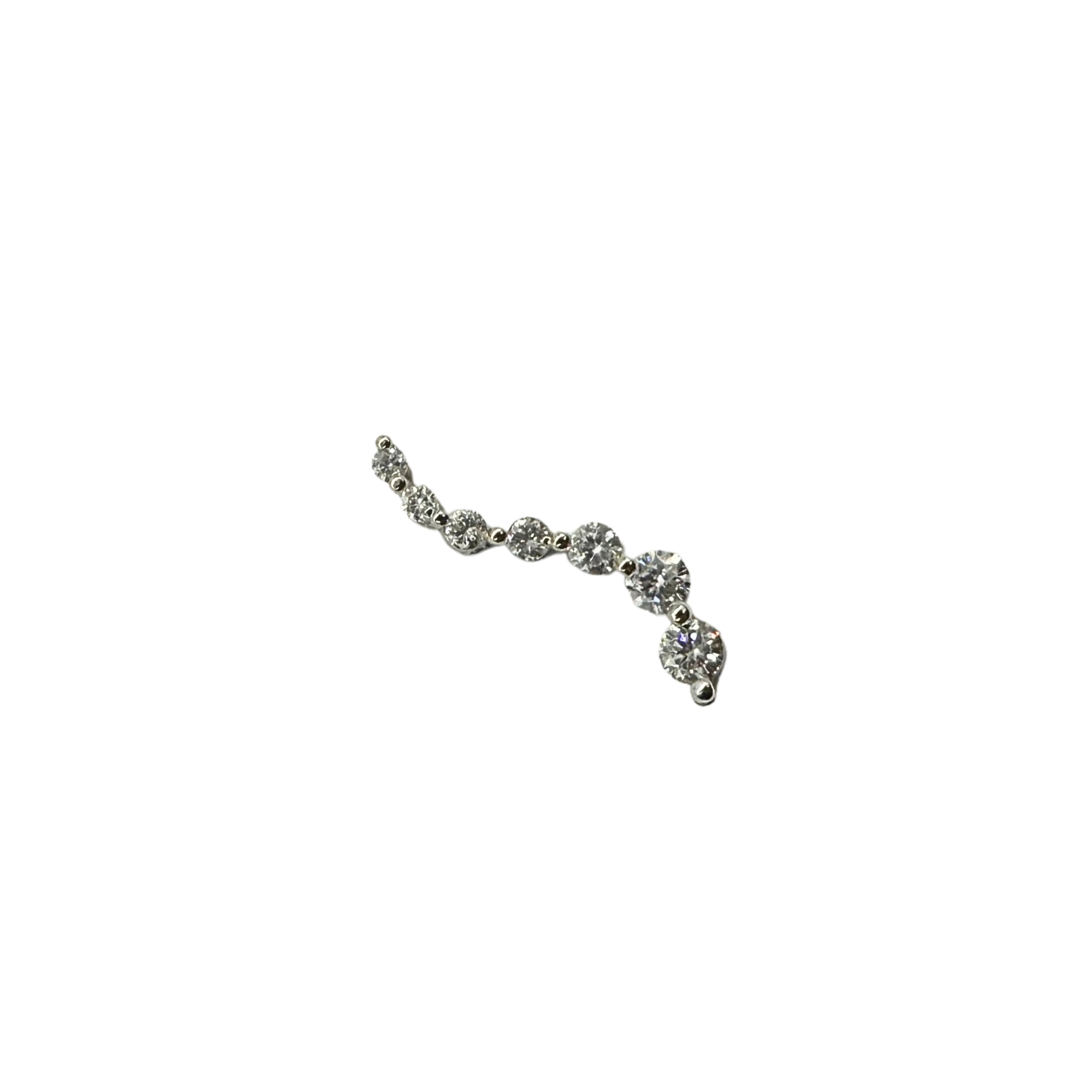 This elegant 14k white gold journey pendant captures the essence of life’s meaningful moments, symbolized through its beautiful cascade of graduated round-cut diamonds totaling approximately 3/4 carat. Each sparkling diamond gently increases in size, representing the milestones and growth in a journey of love or personal triumph. Weighing 1.7 grams, this pendant is delicately crafted yet substantial enough to wear alone or pair with your favorite chain.