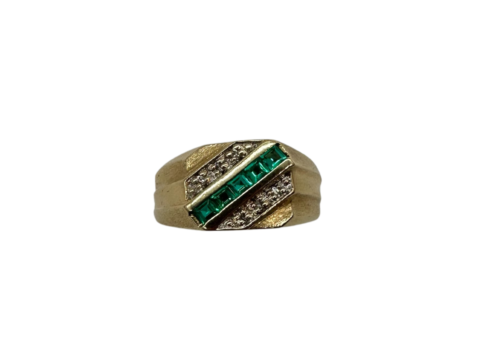 14k Yellow Gold Emerald & Diamond Channel Set Ring